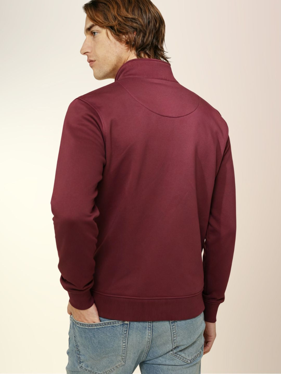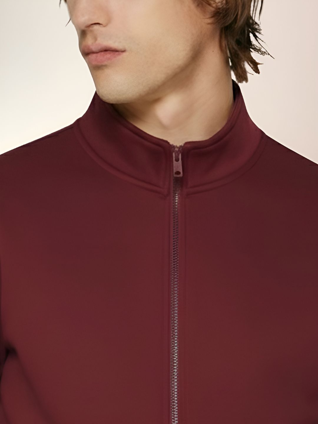 Wine Men's Soft Touch Scuba Spandex Regular Fit Full Sleeve Zipper Sweatshirt