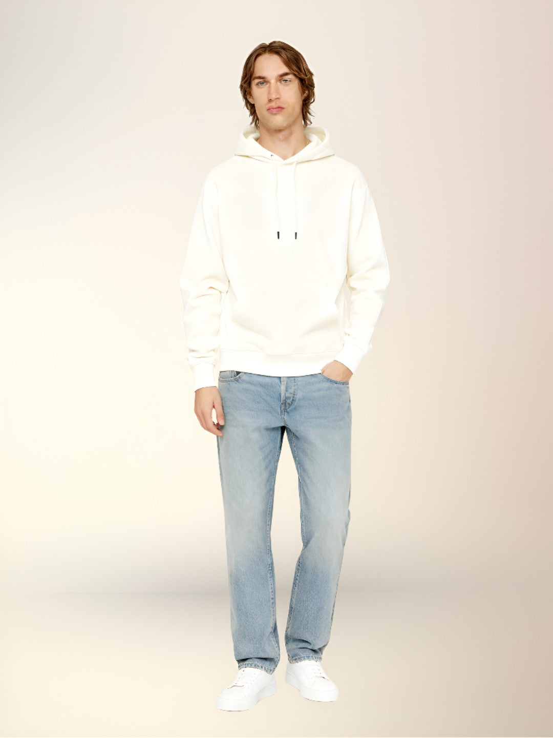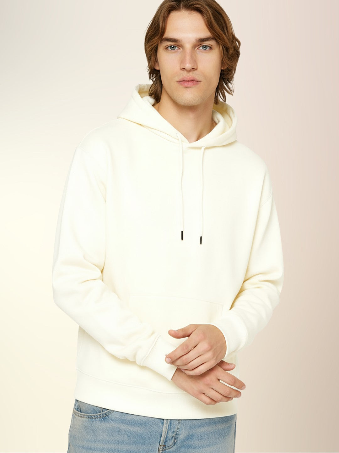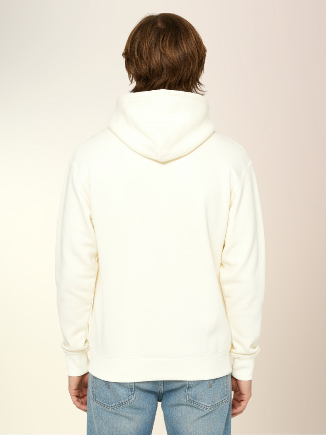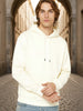 Off White Men's Solid Fleece Sweatshirt with Round Hoodie Neck and Full Sleeves