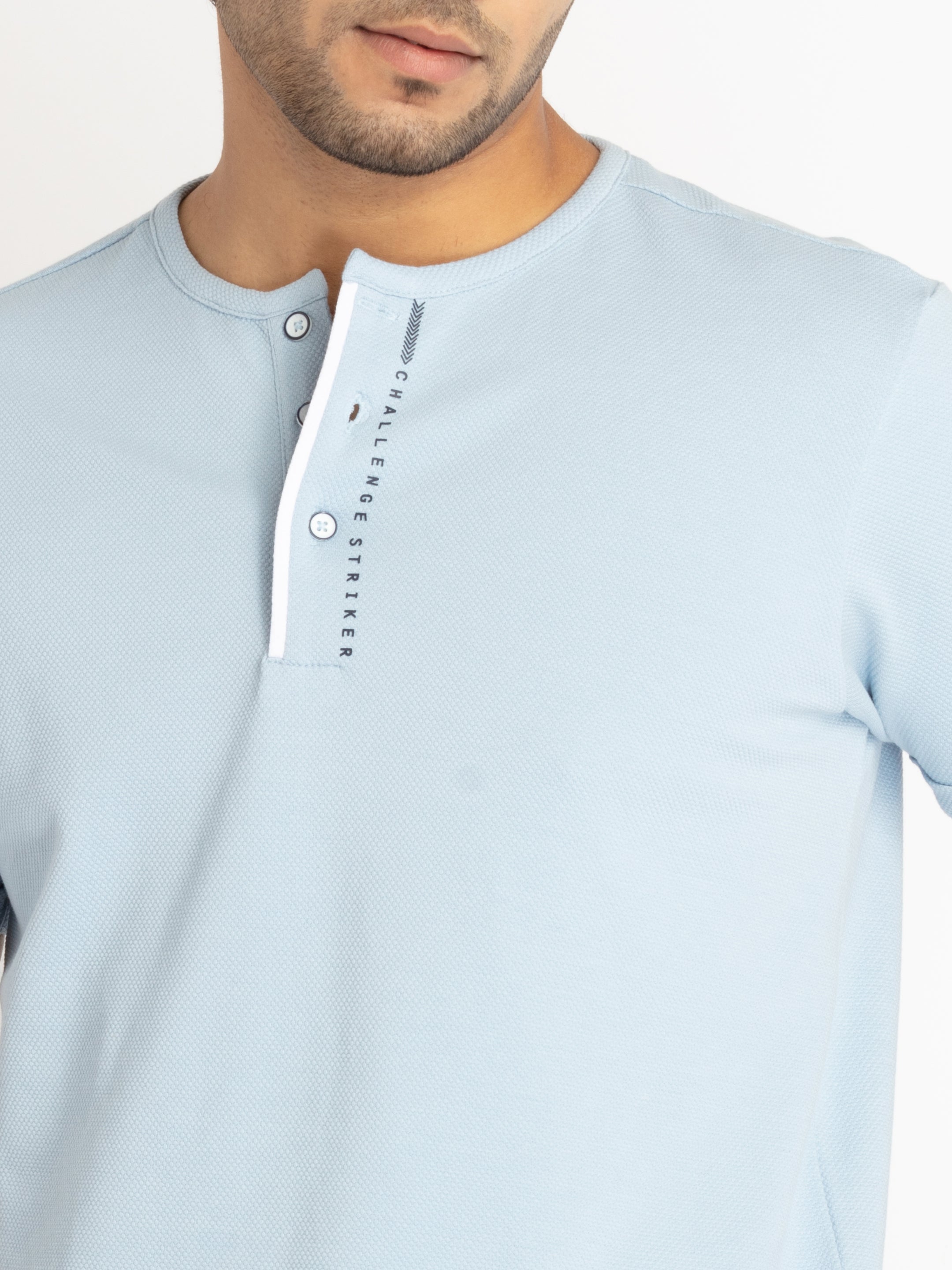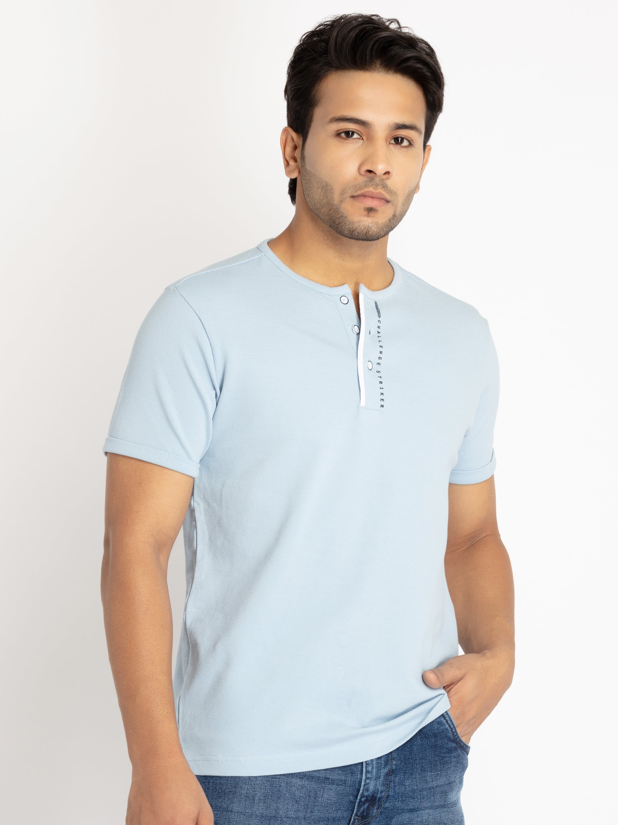SKY Henley Neck T-Shirt has Placket Print, Half Sleeves, Regular Fit
