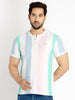 OATMEL/SKY MEL. Polo Neck T-Shirt has Striped, Half Sleeves, Regular Fit