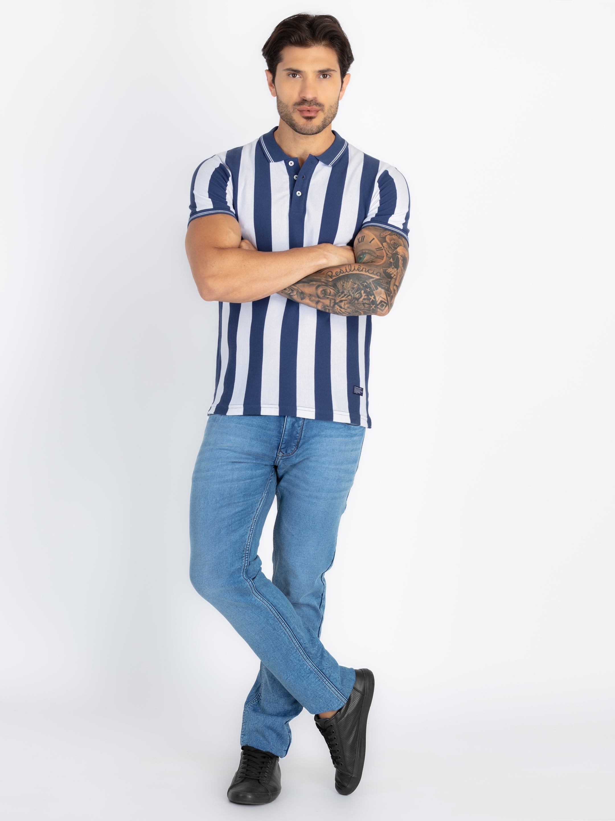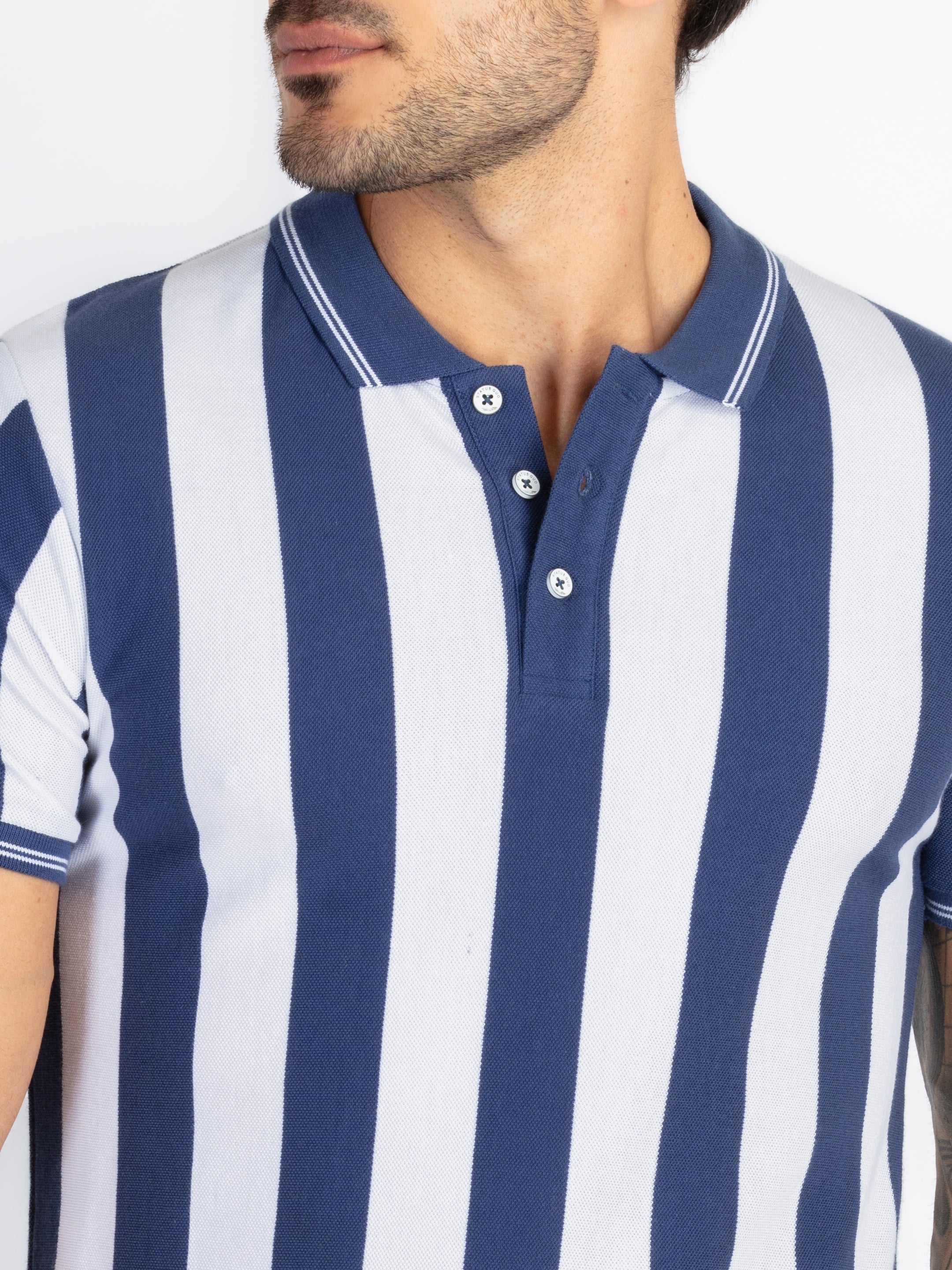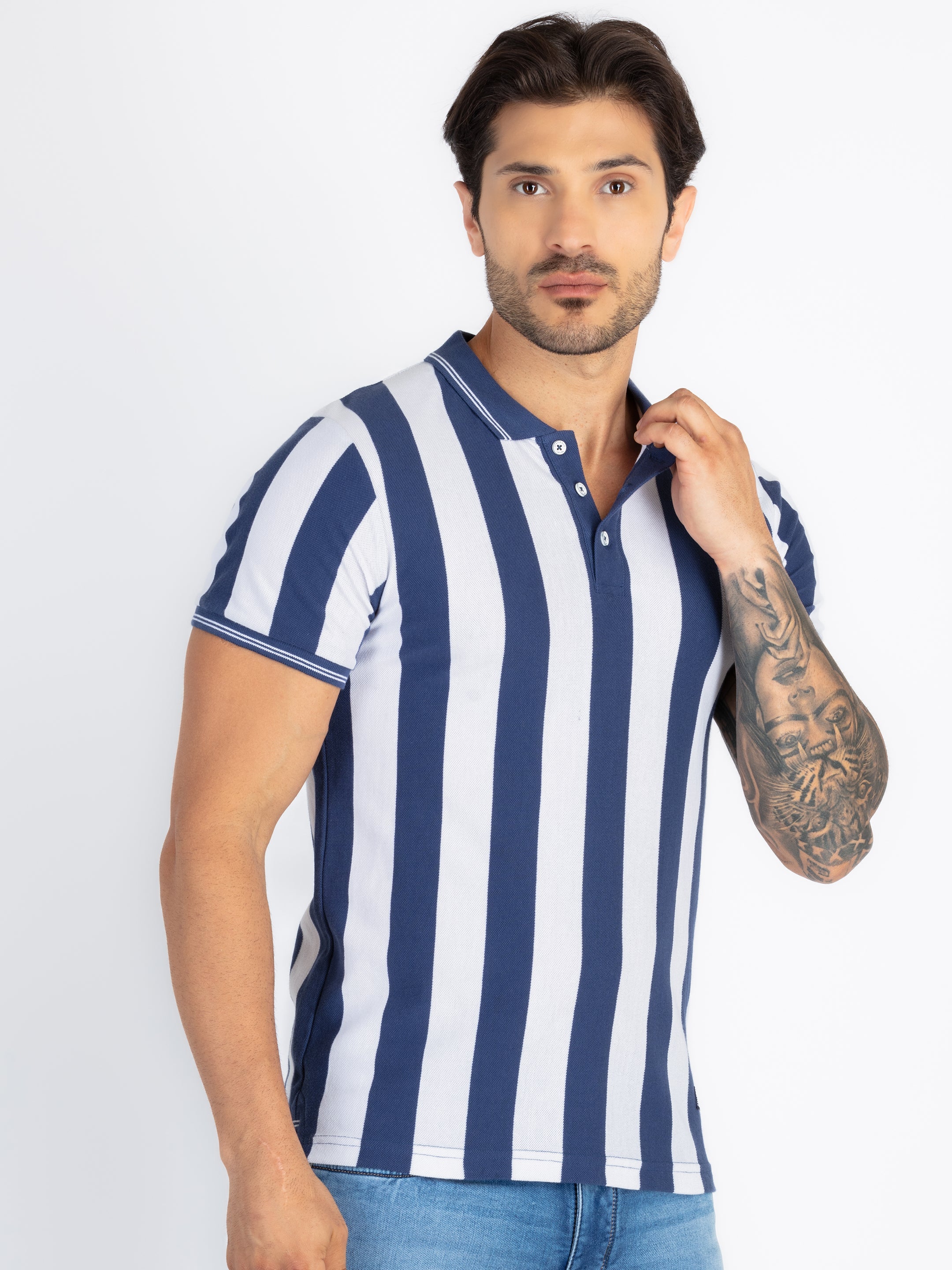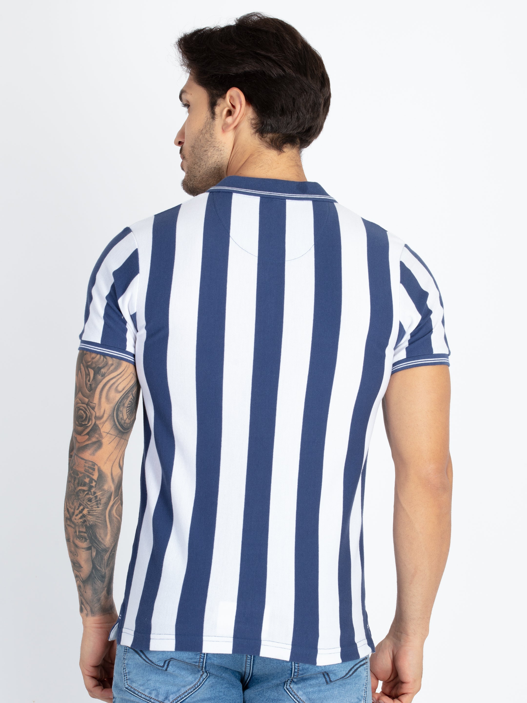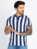TRUE BLUE/WHITE Striped Polo T-Shirt Has Half Sleeves