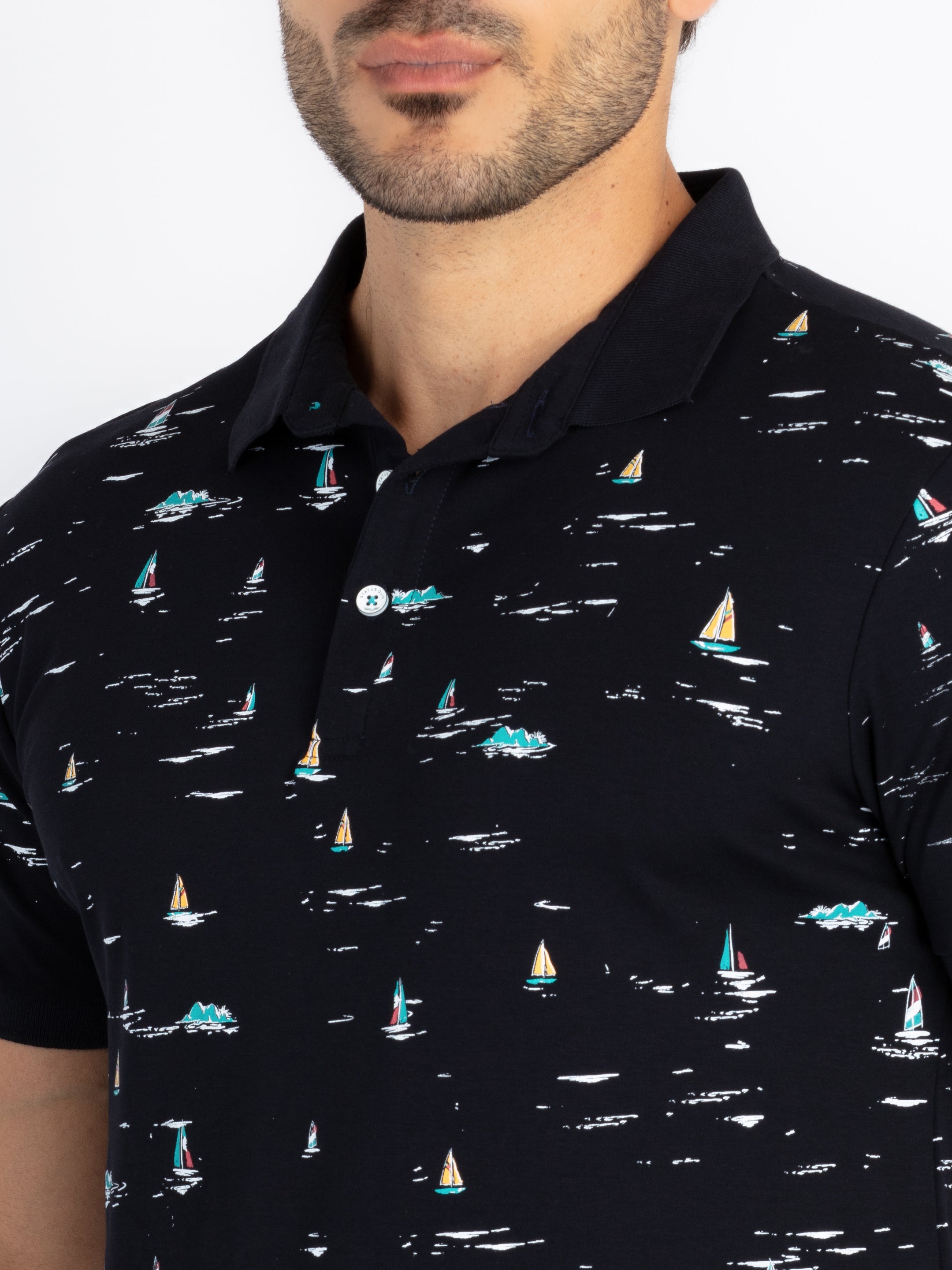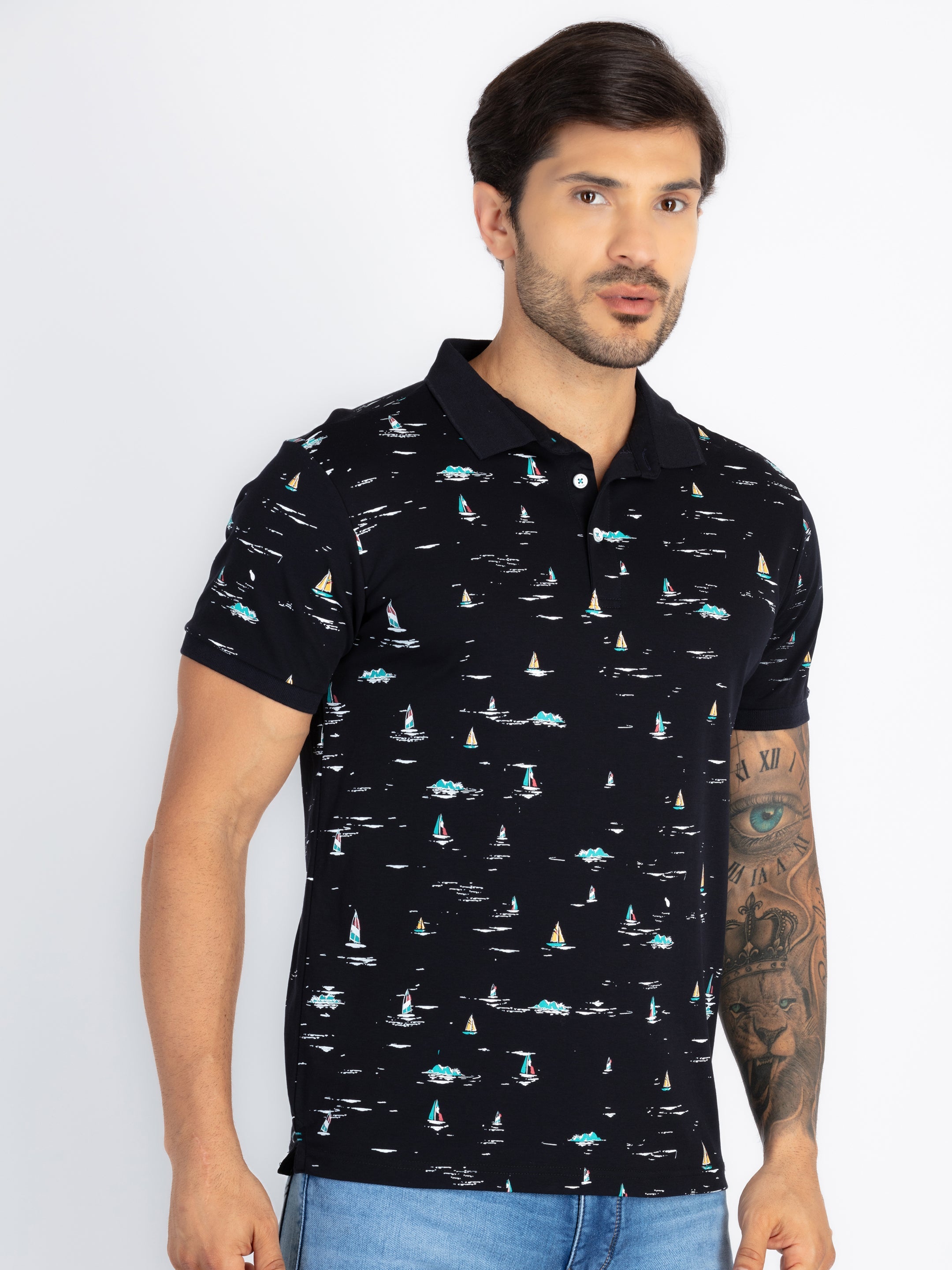 NAVY Printed Polo T-Shirt Has Half Sleeves
