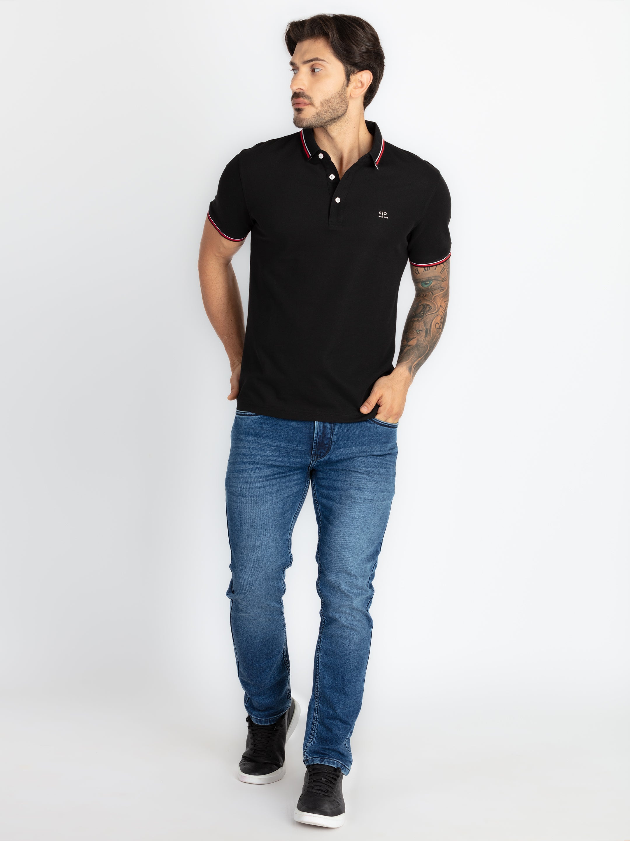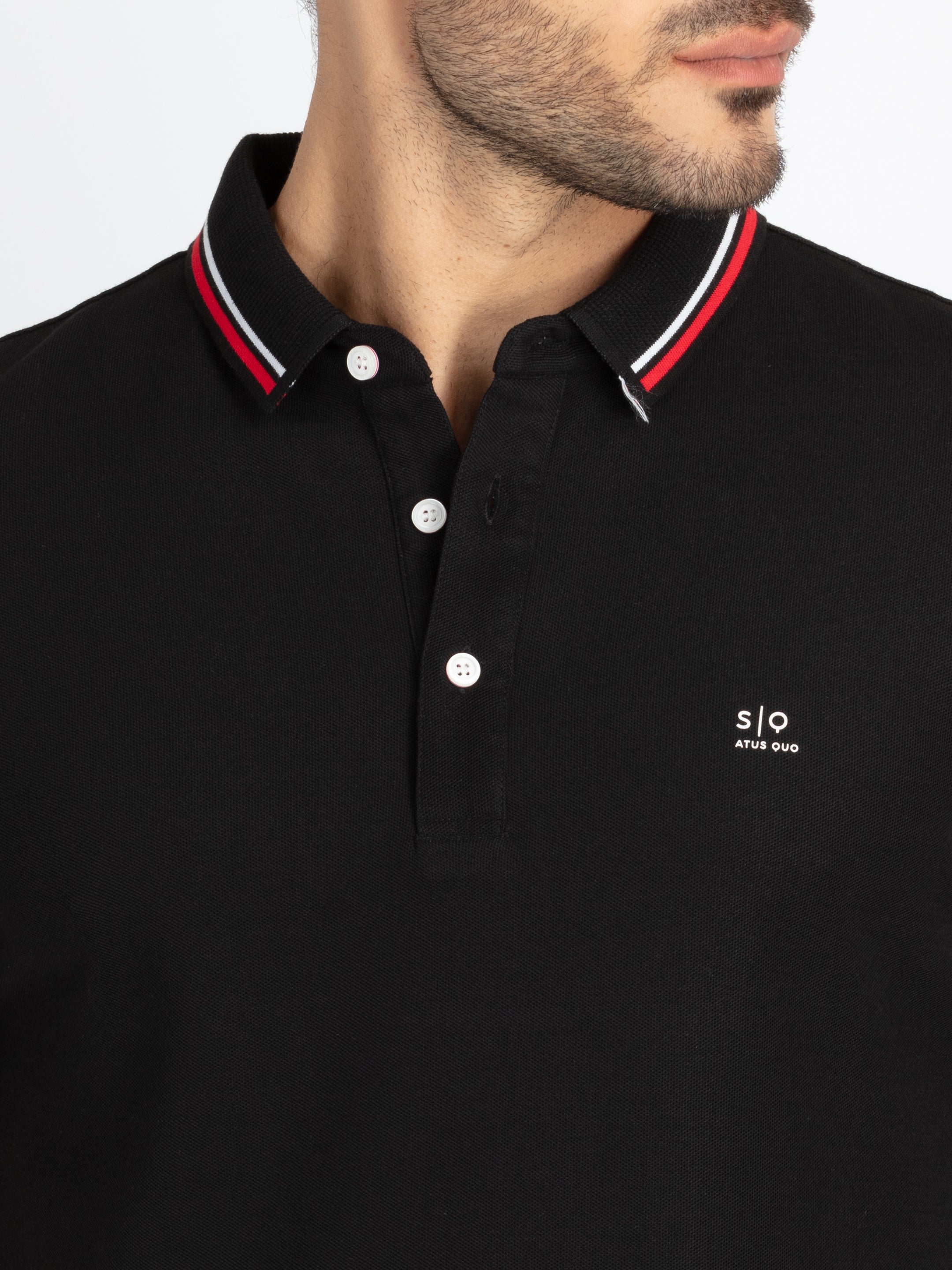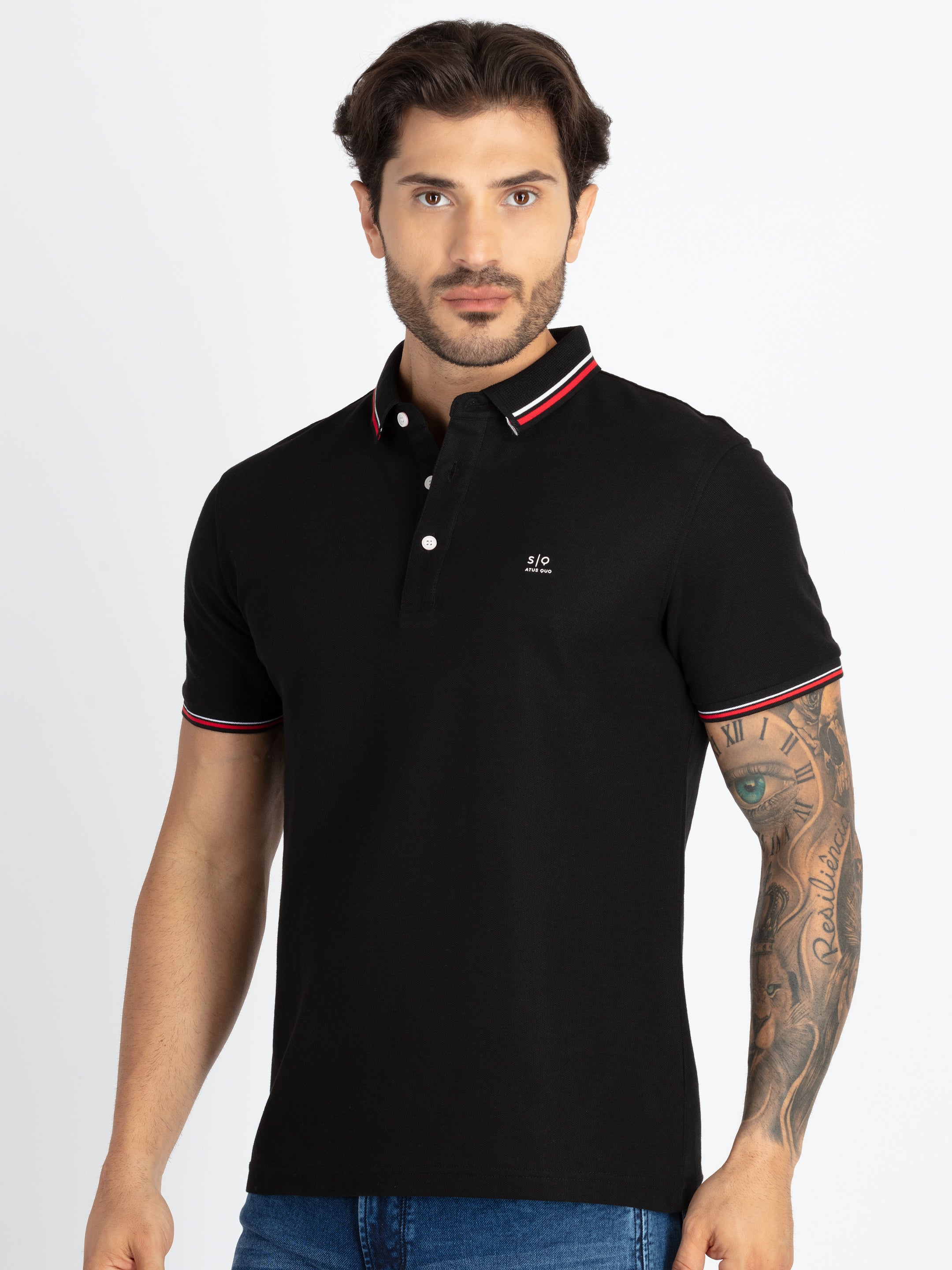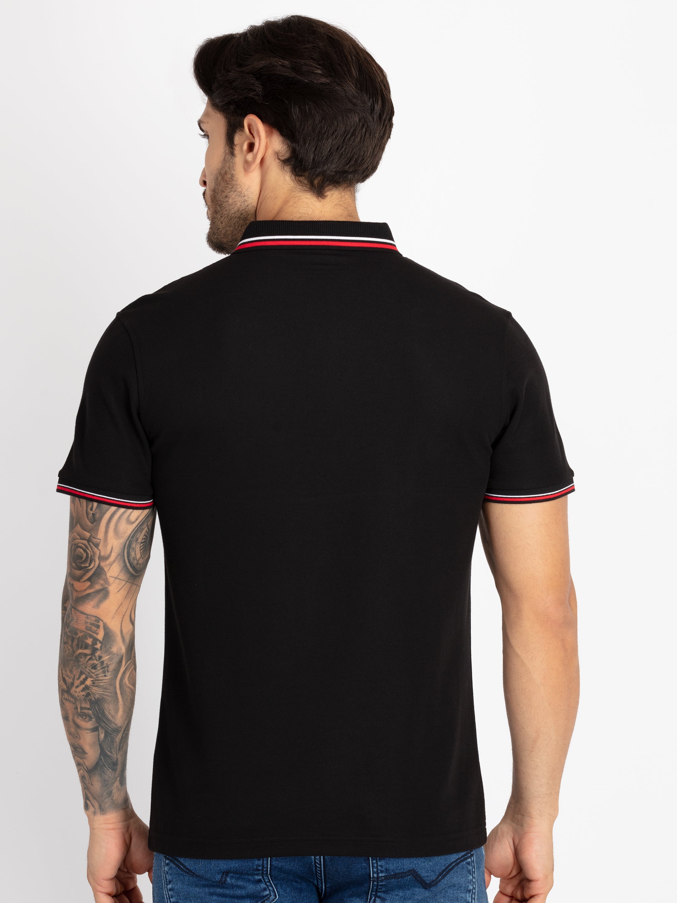 BLACK Solid Polo T-Shirt Has Half Sleeves