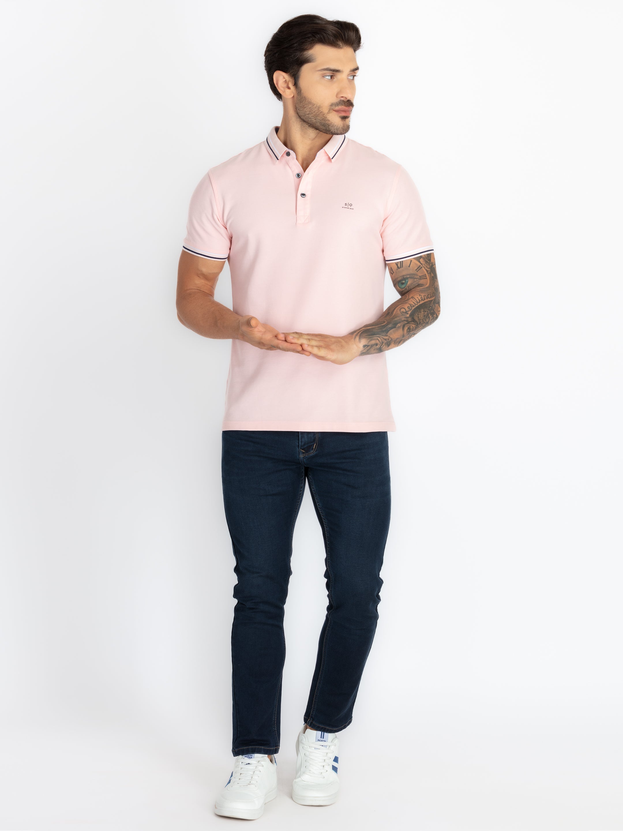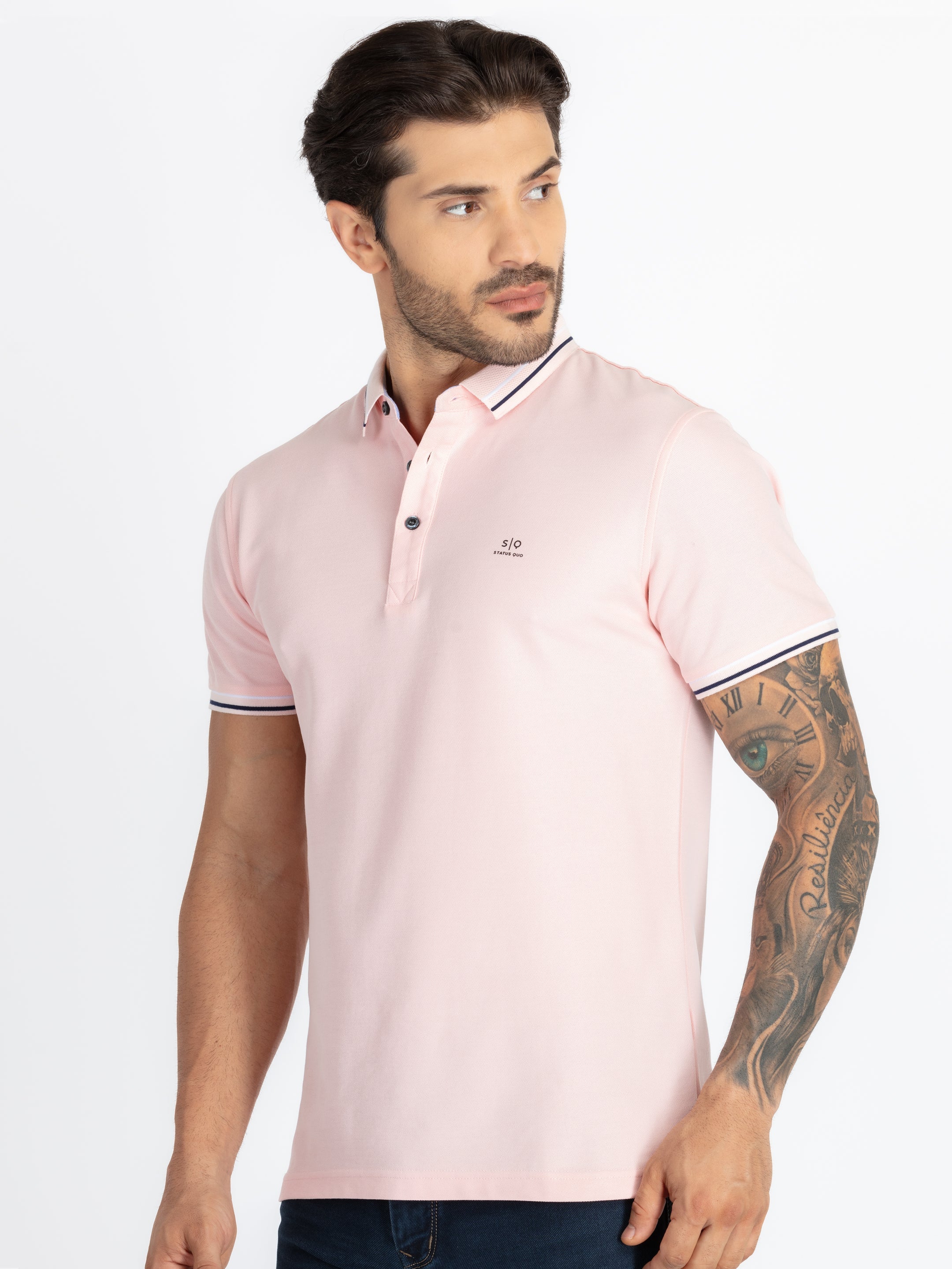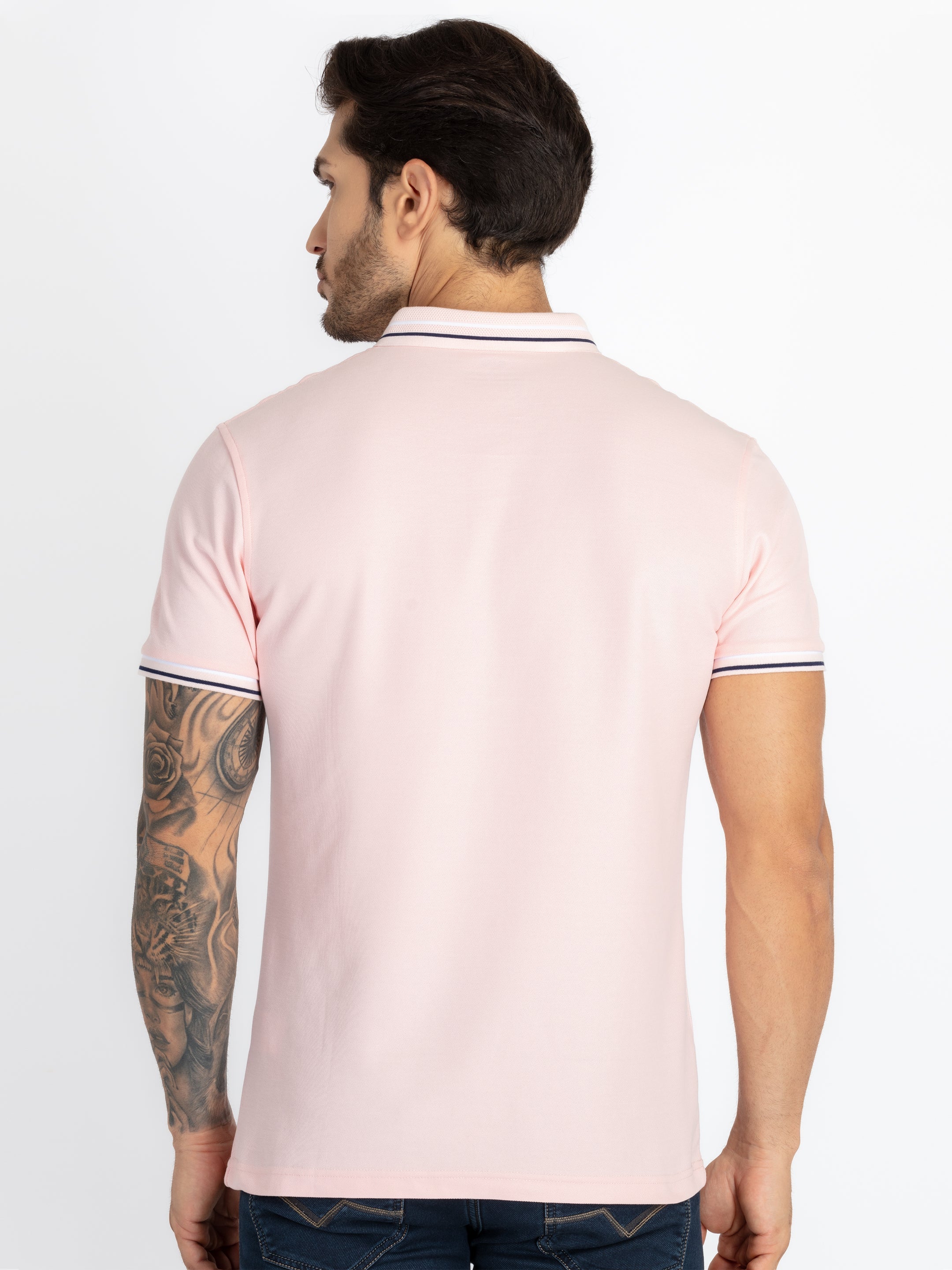 PINK Solid Polo T-Shirt Has Half Sleeves