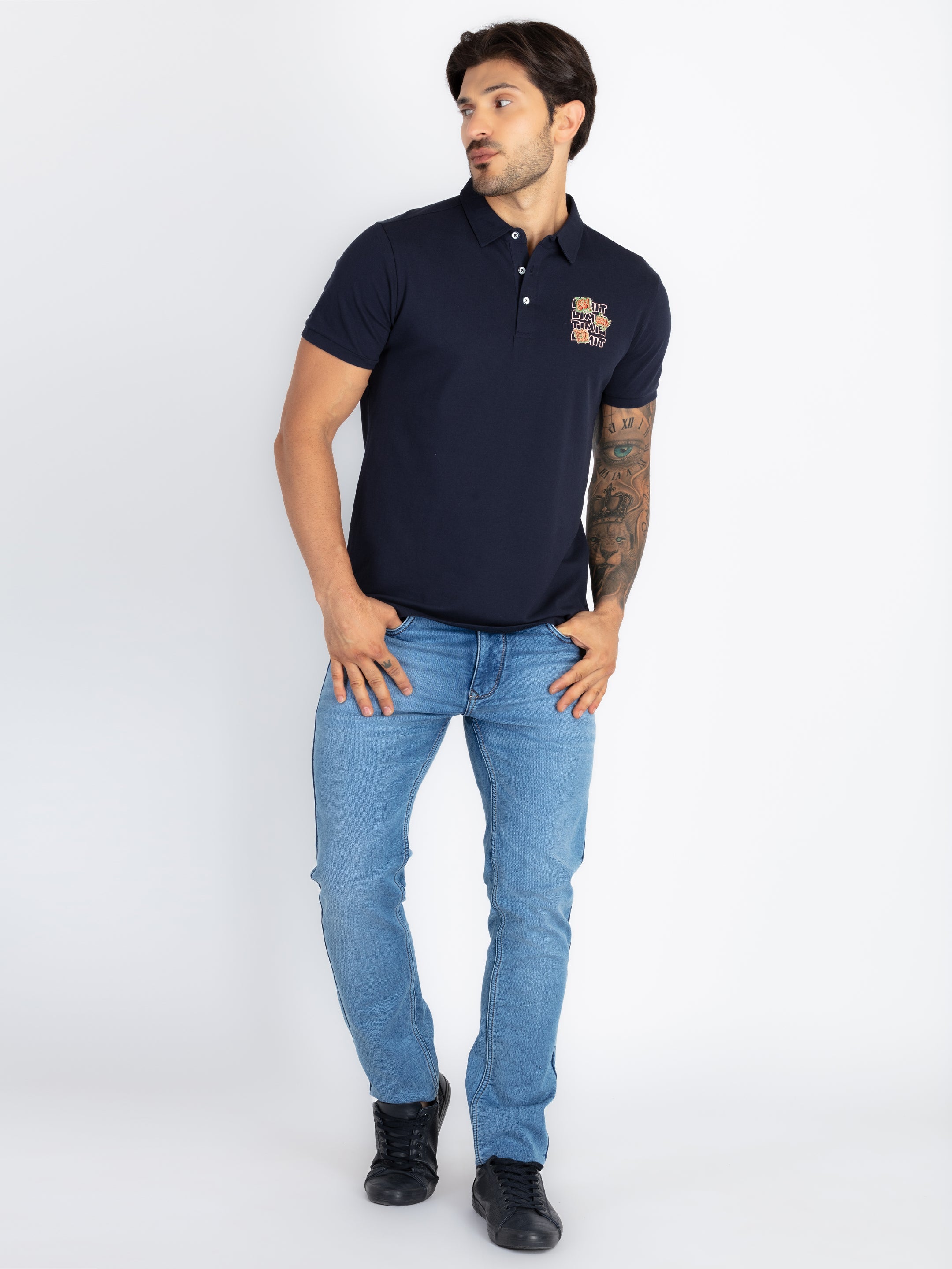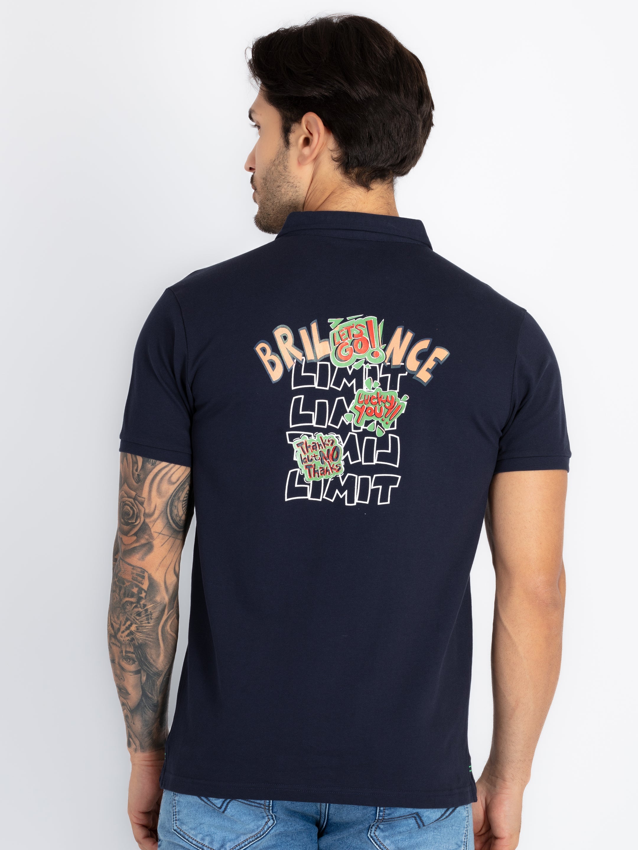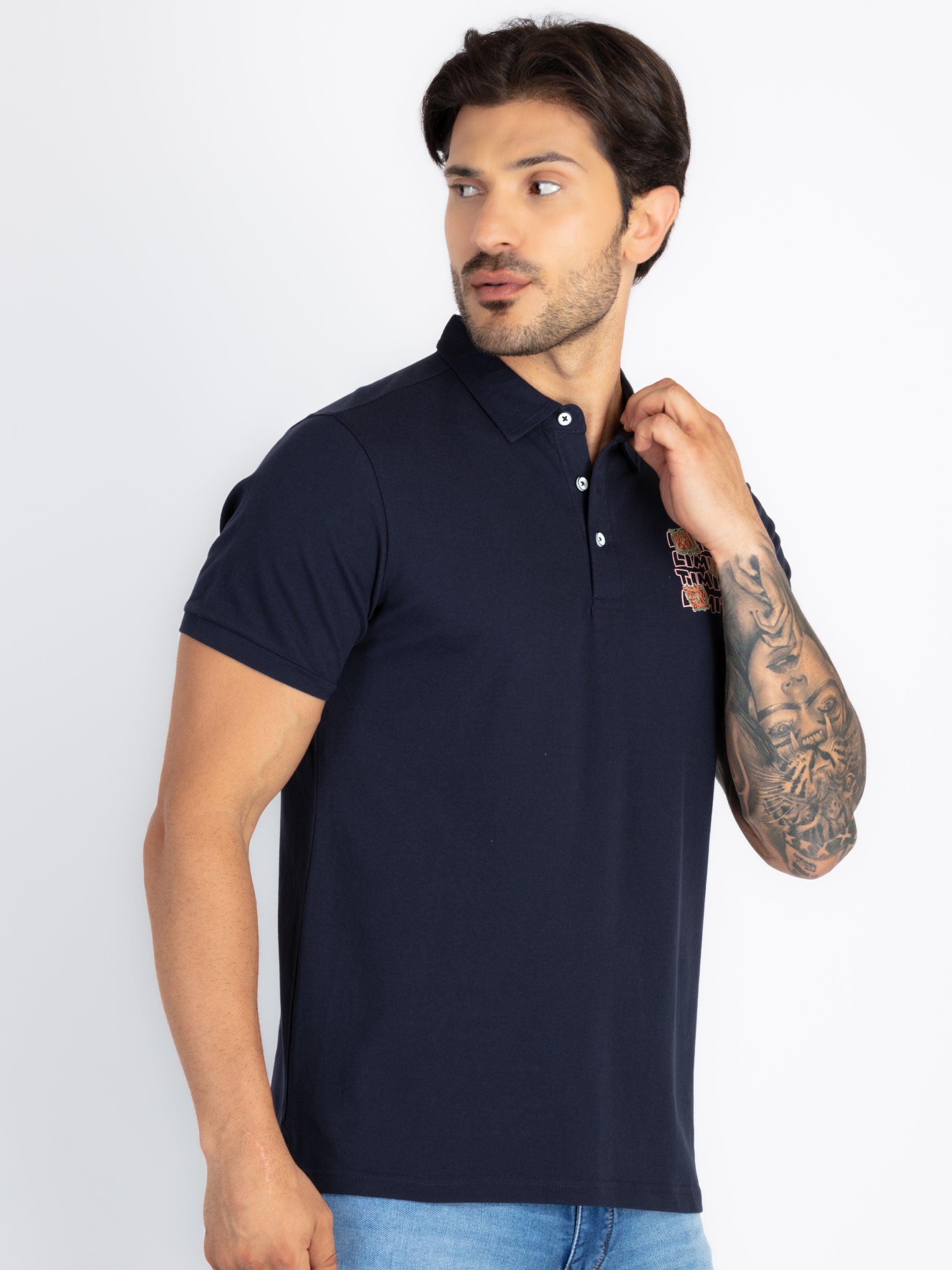 NAVY Solid Polo T-Shirt Has Half Sleeves