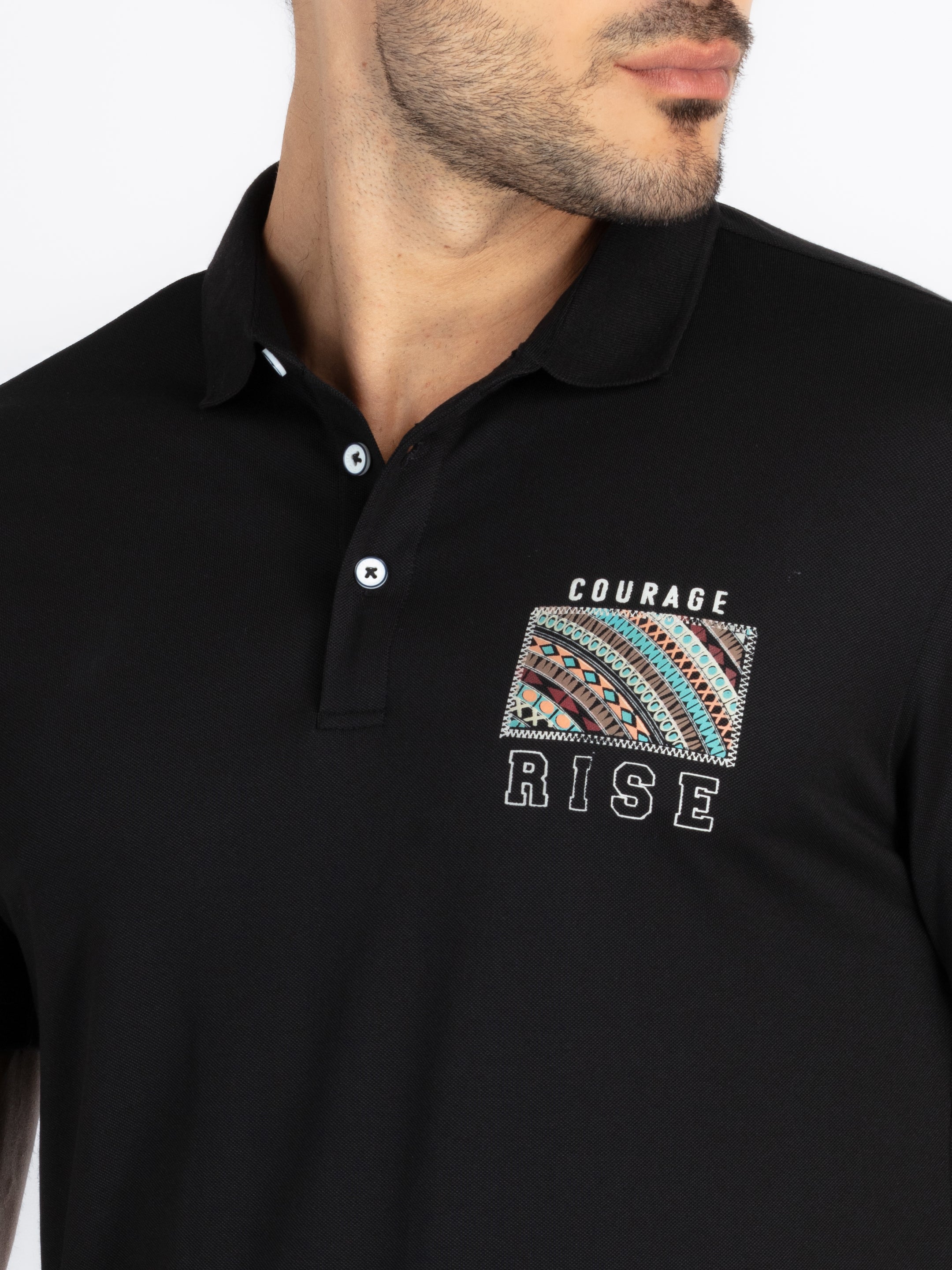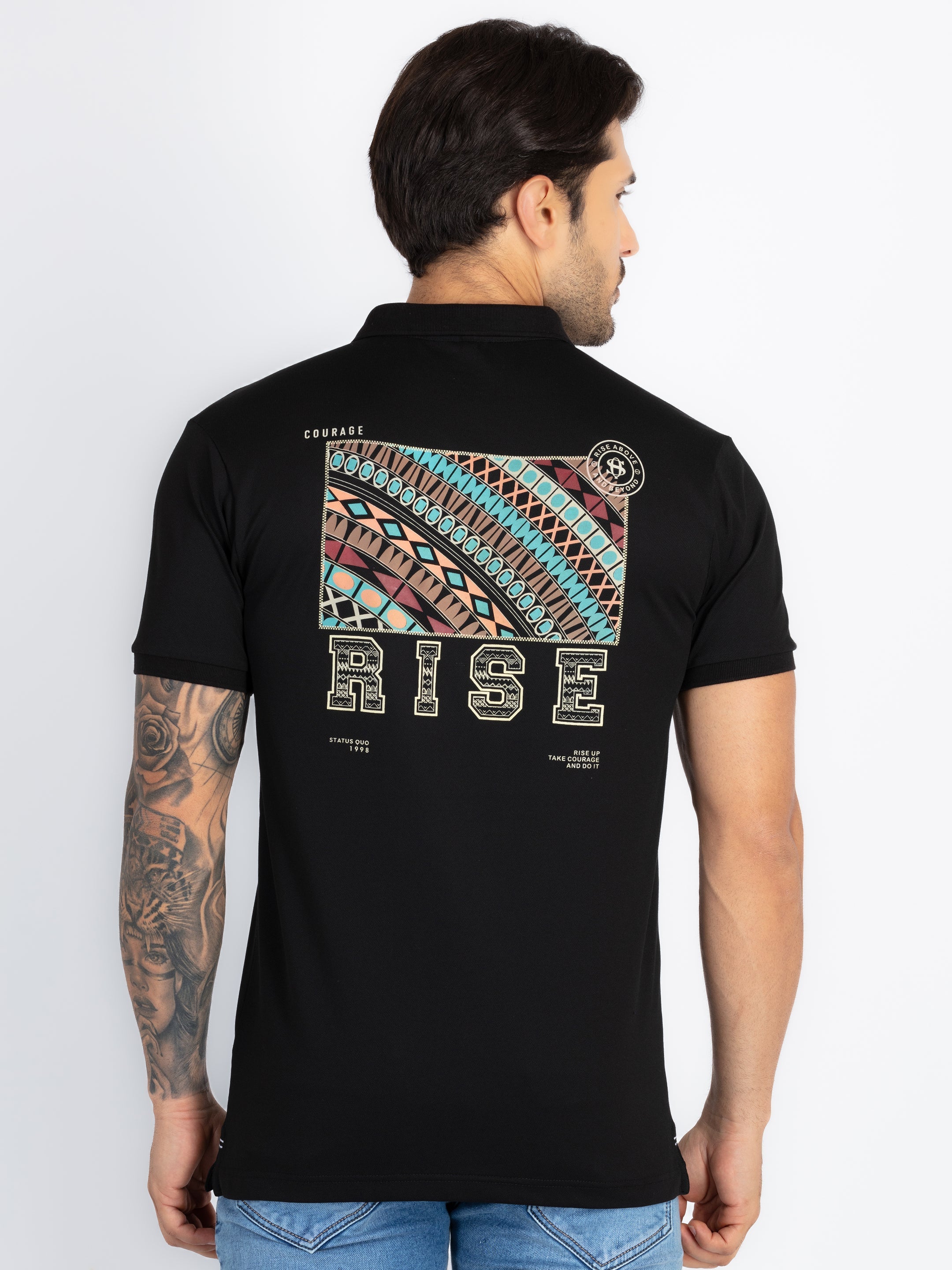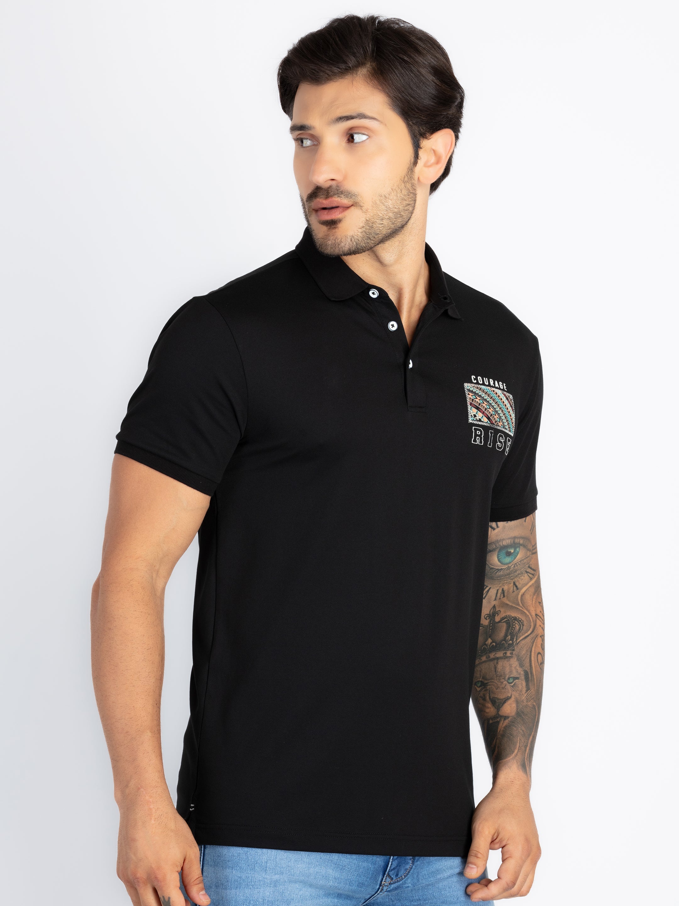 BLACK Solid Polo T-Shirt Has Half Sleeves