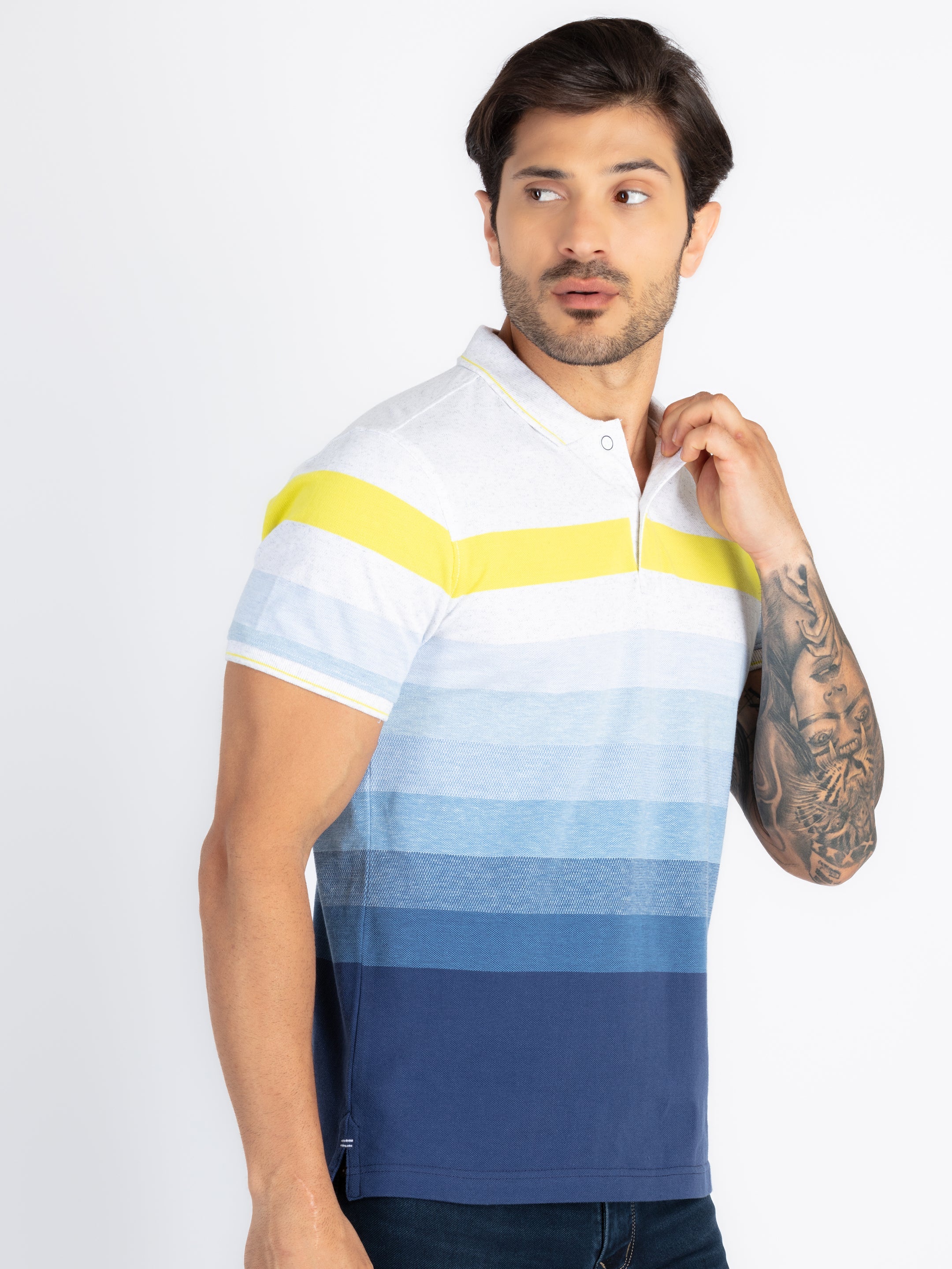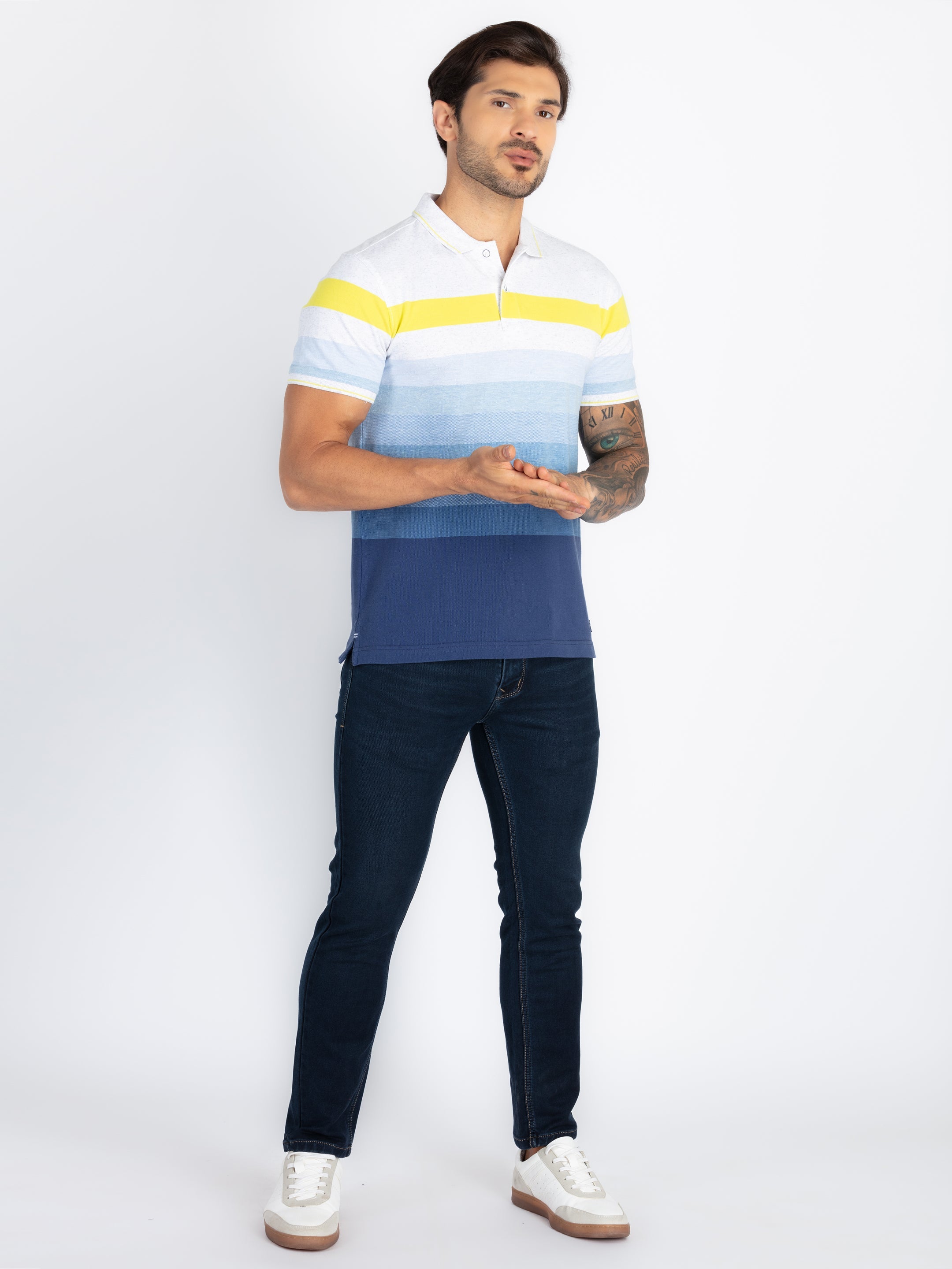 DENIM Striped Polo T-Shirt Has Half Sleeves