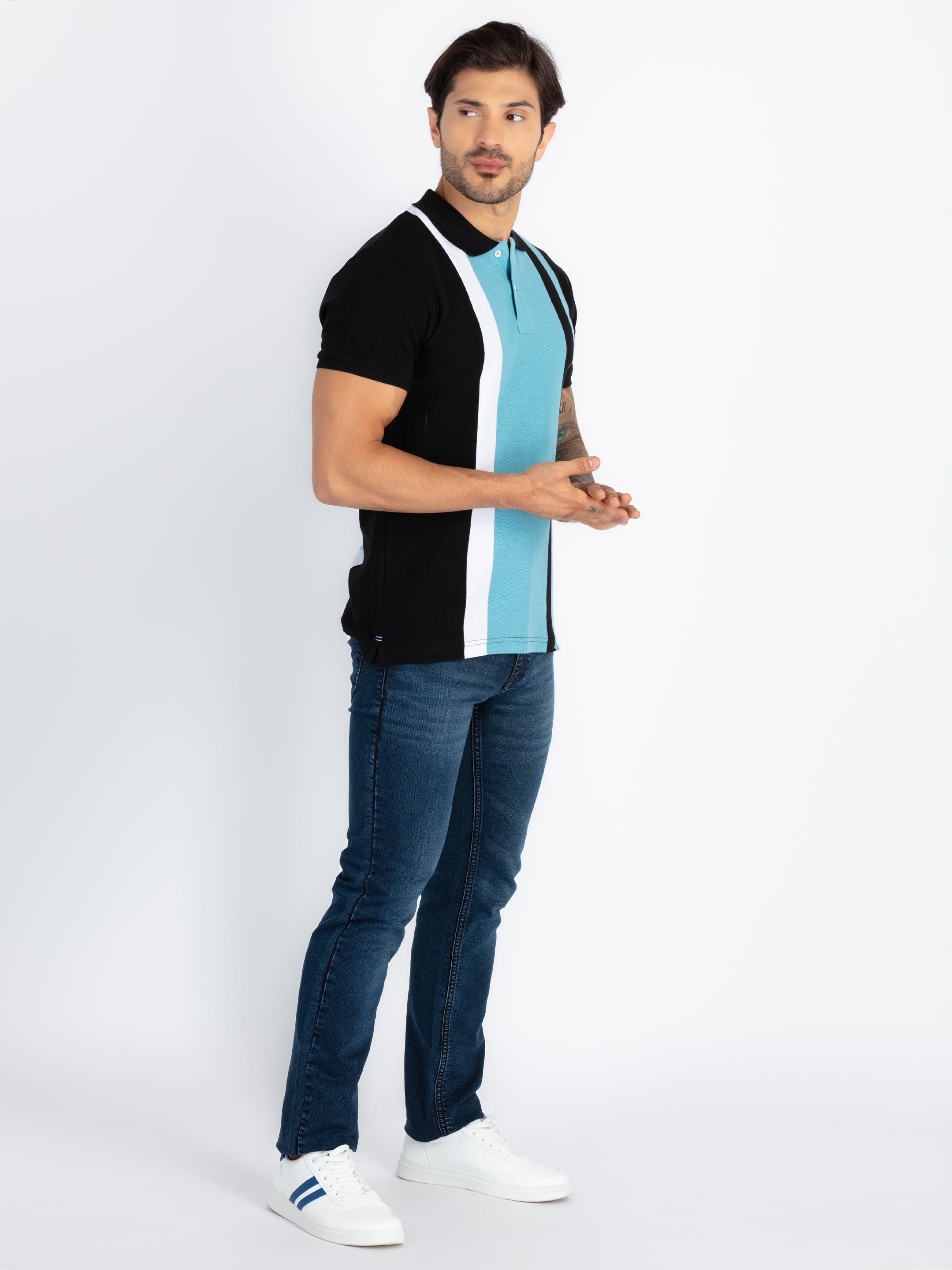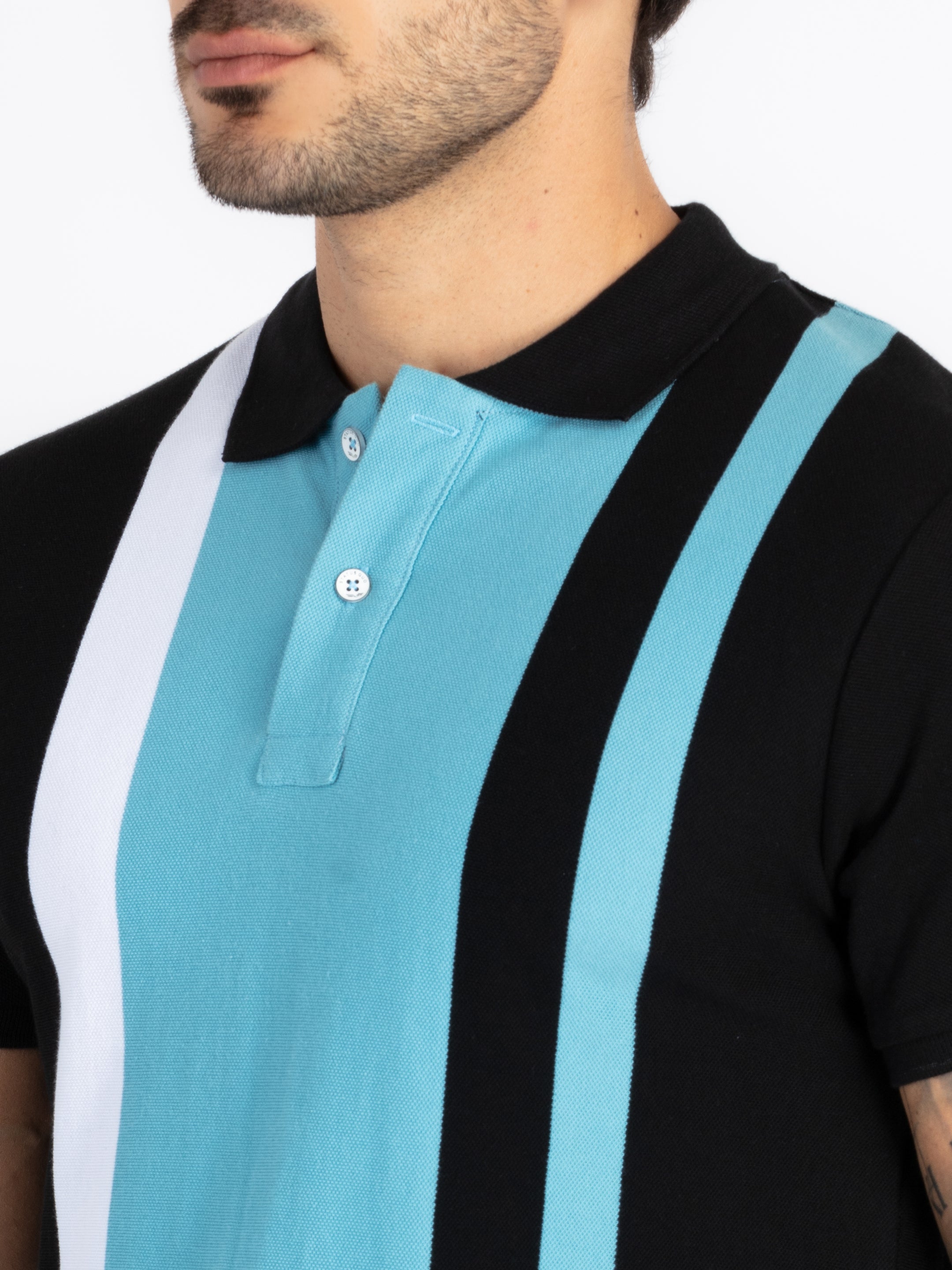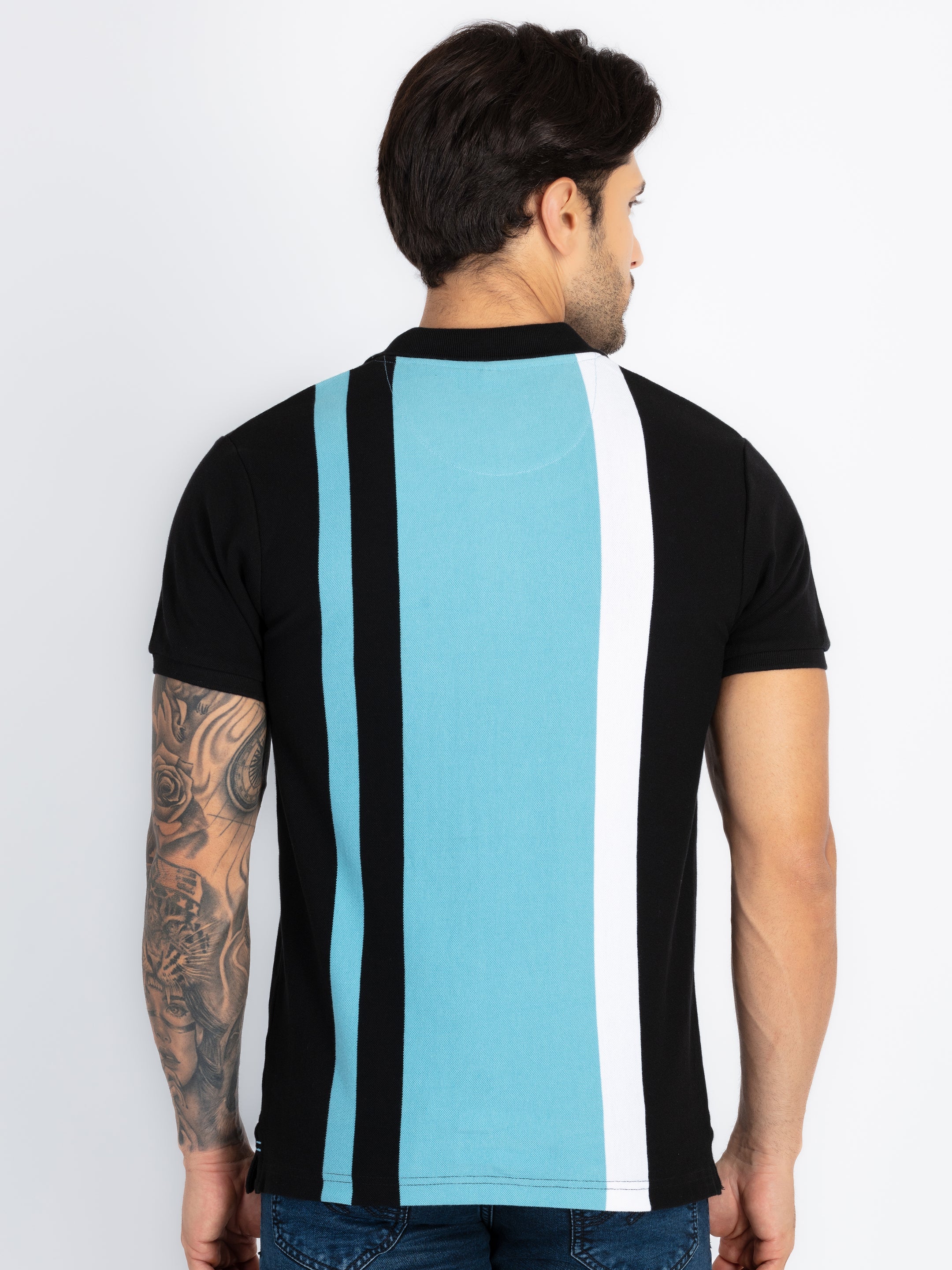 AQUA/BLACK Striped Polo T-Shirt Has Half Sleeves