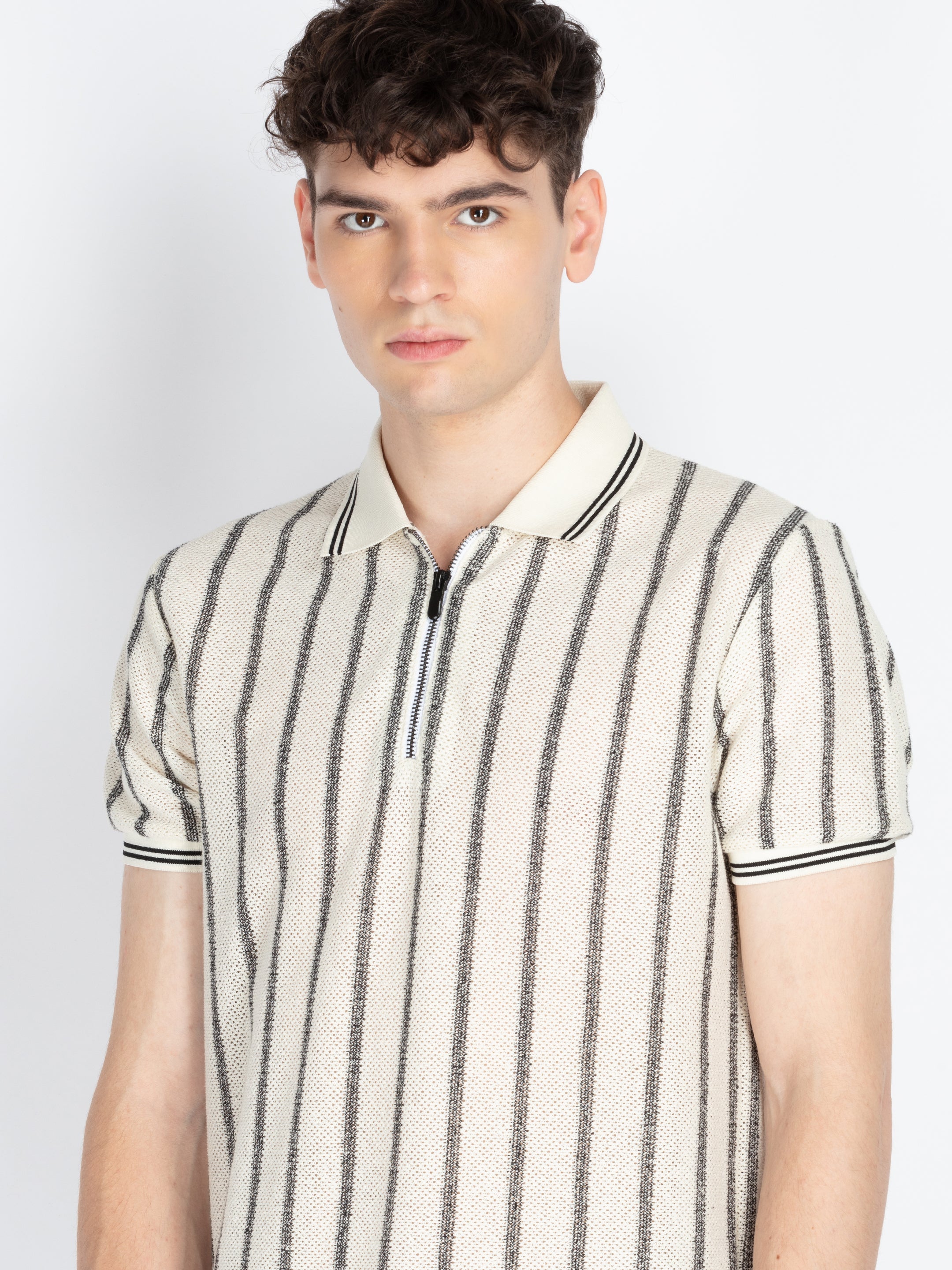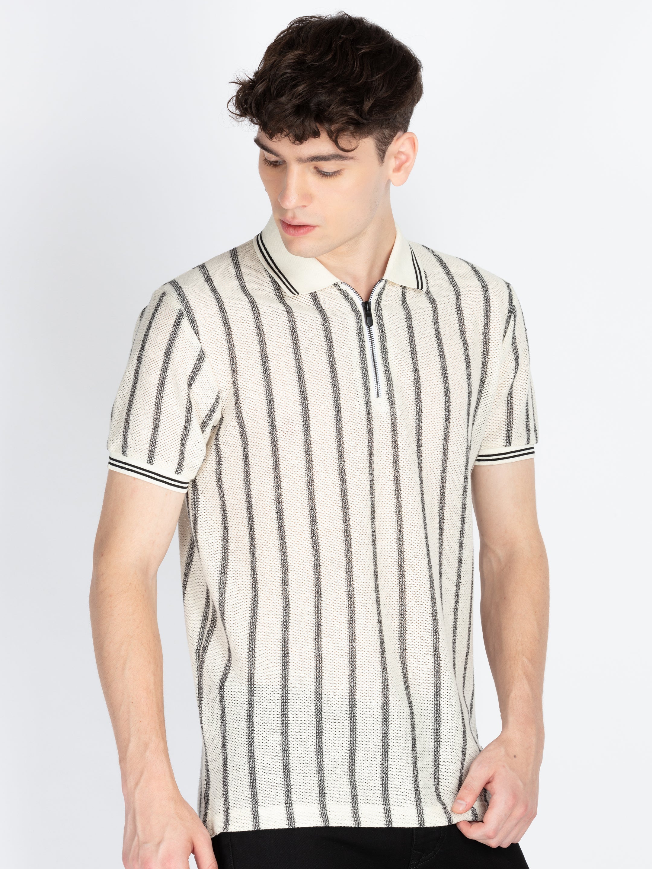 Off White Mens Striped Polo Collar T-Shirt With Half Sleeves