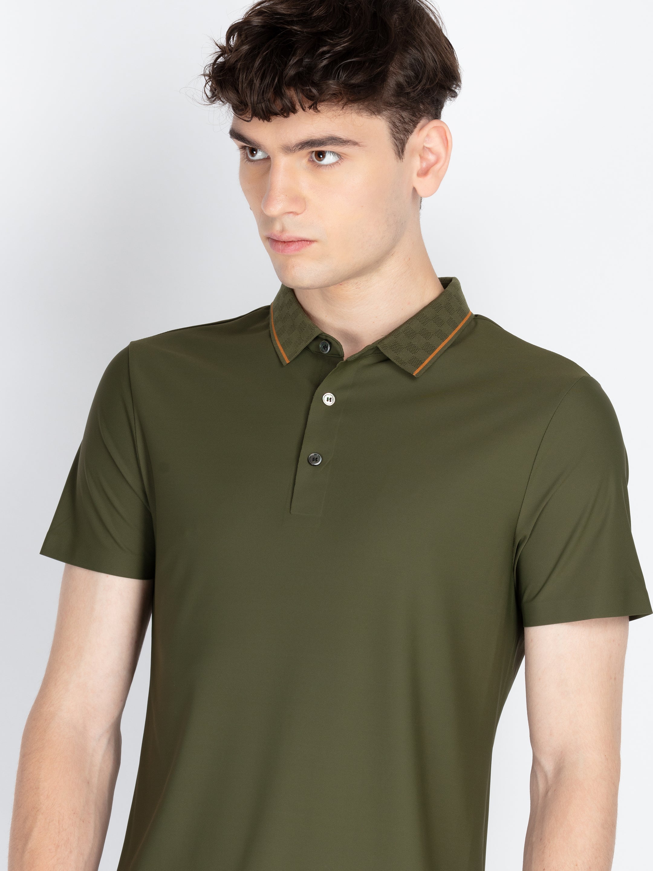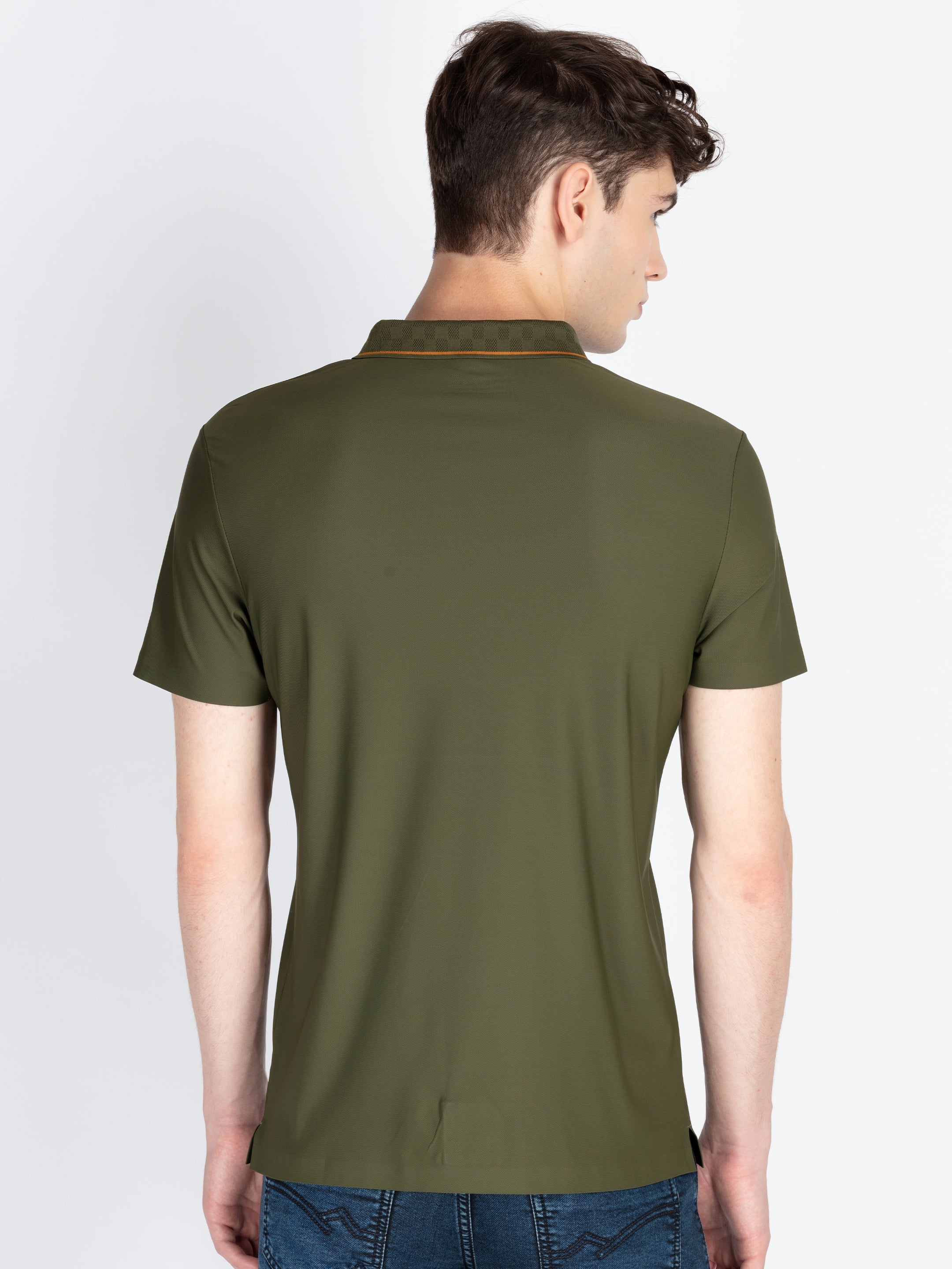 Olive Mens Solid Polo Collar T-Shirt With Half Sleeves