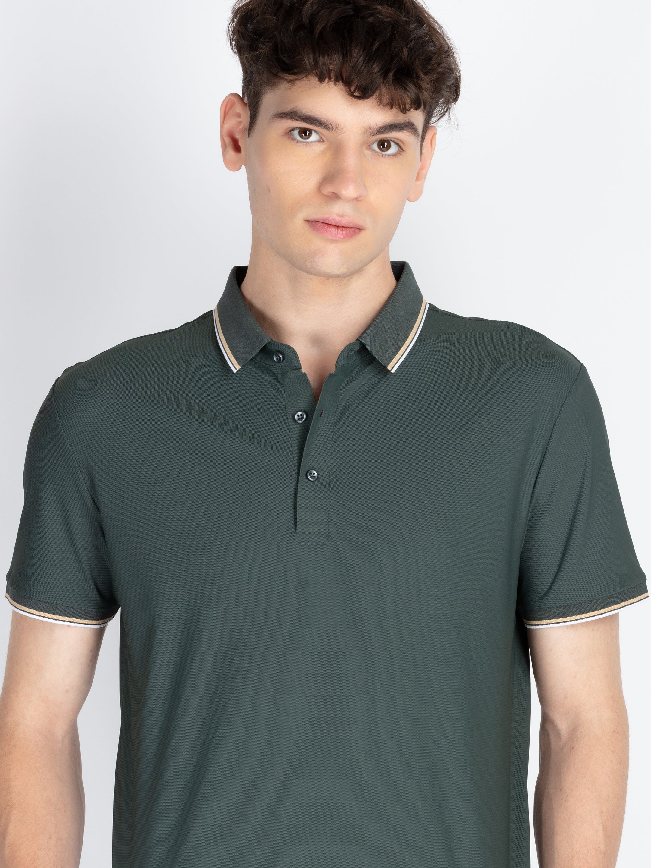 B.Green Mens Solid Polo Collar T-Shirt With Half Sleeves