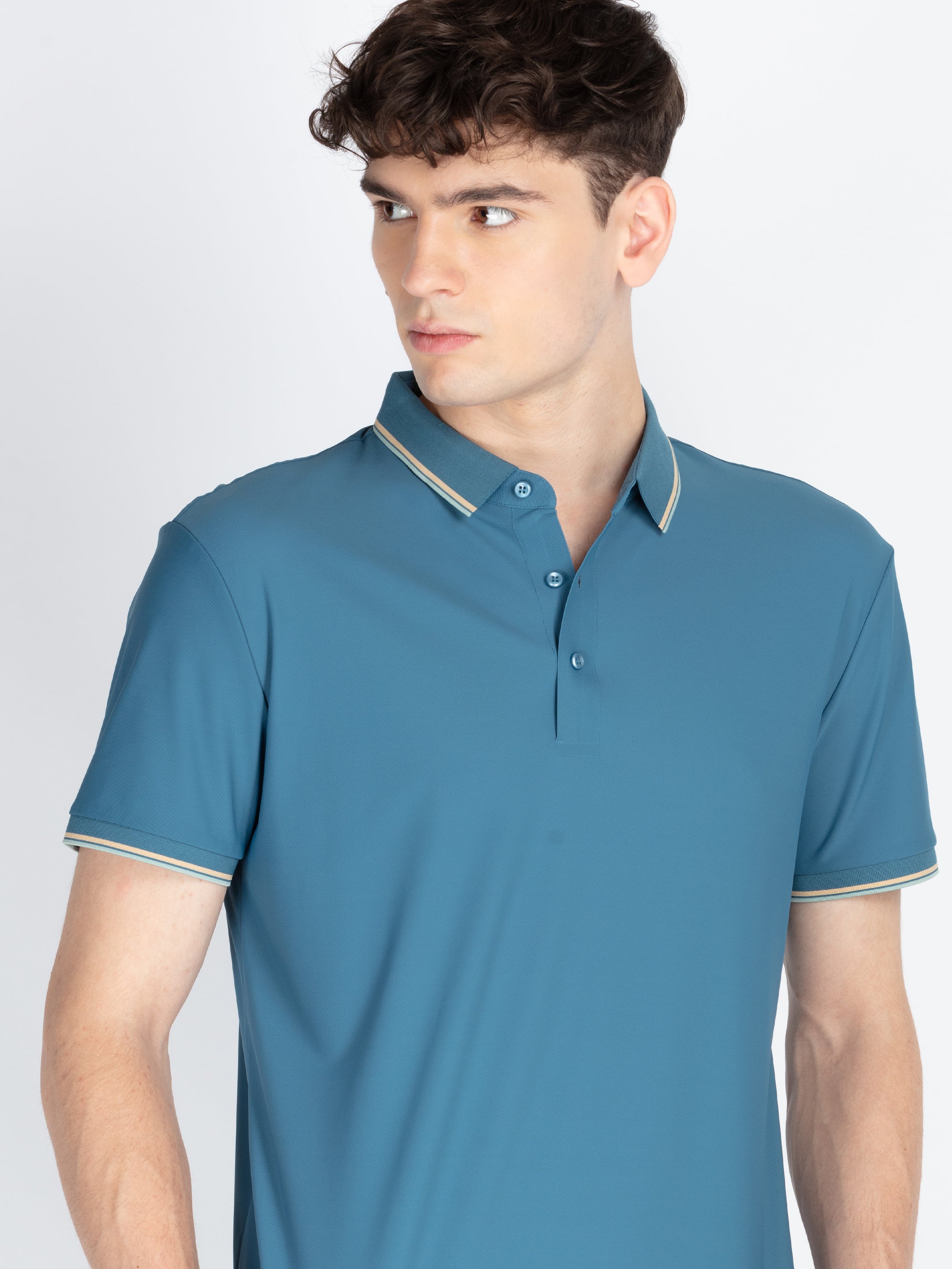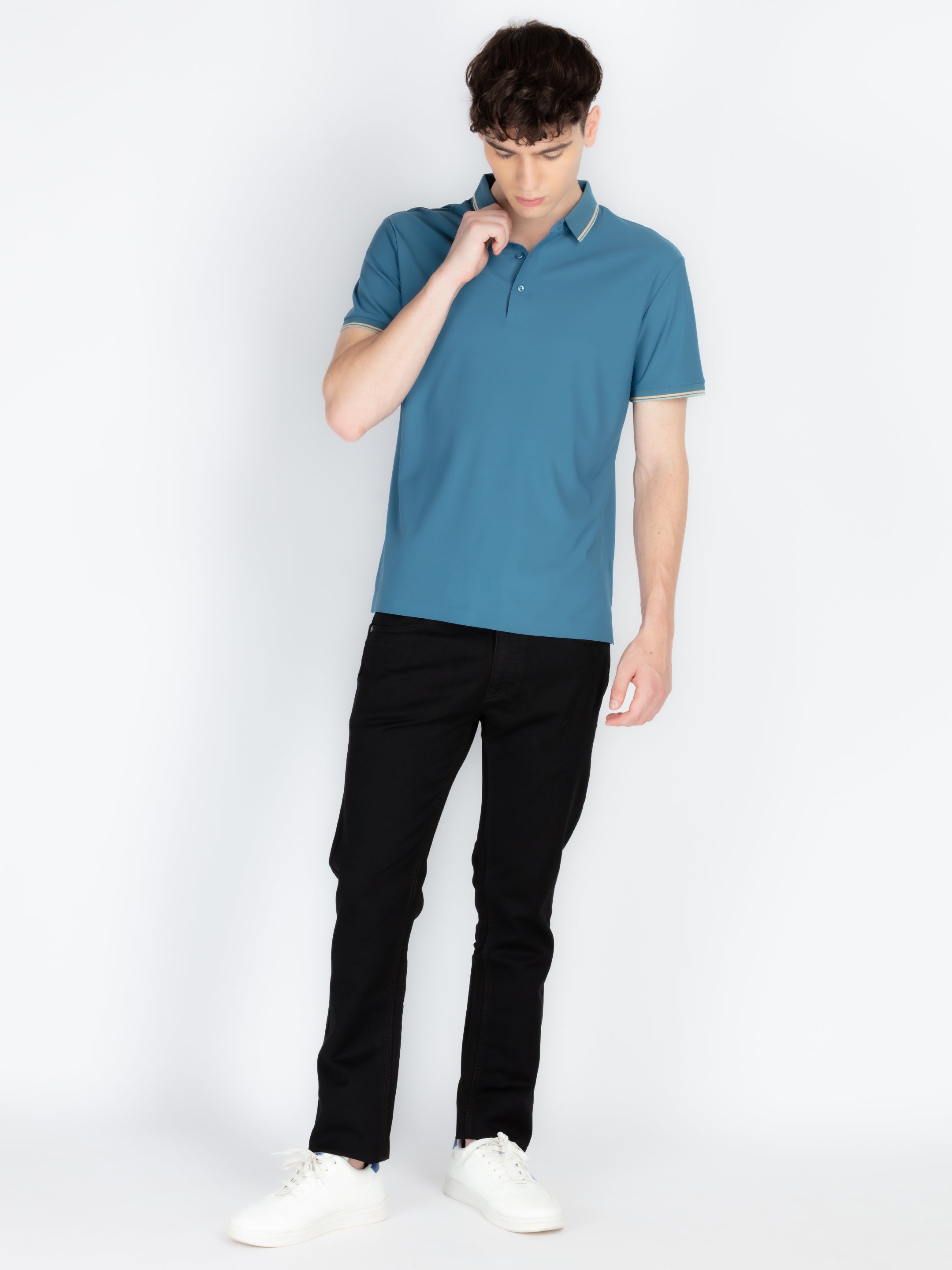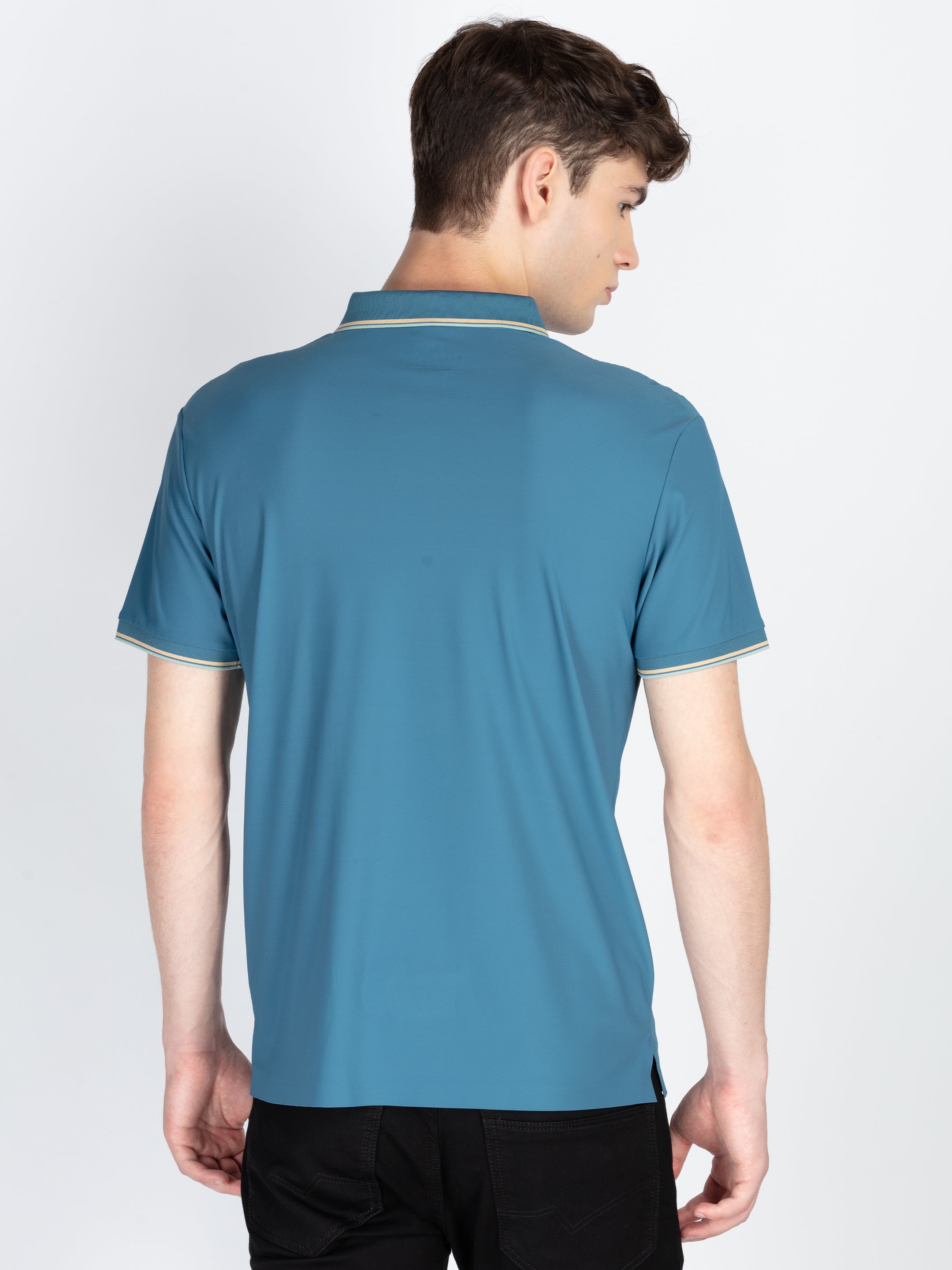 Petrol Mens Solid Polo Collar T-Shirt With Half Sleeves