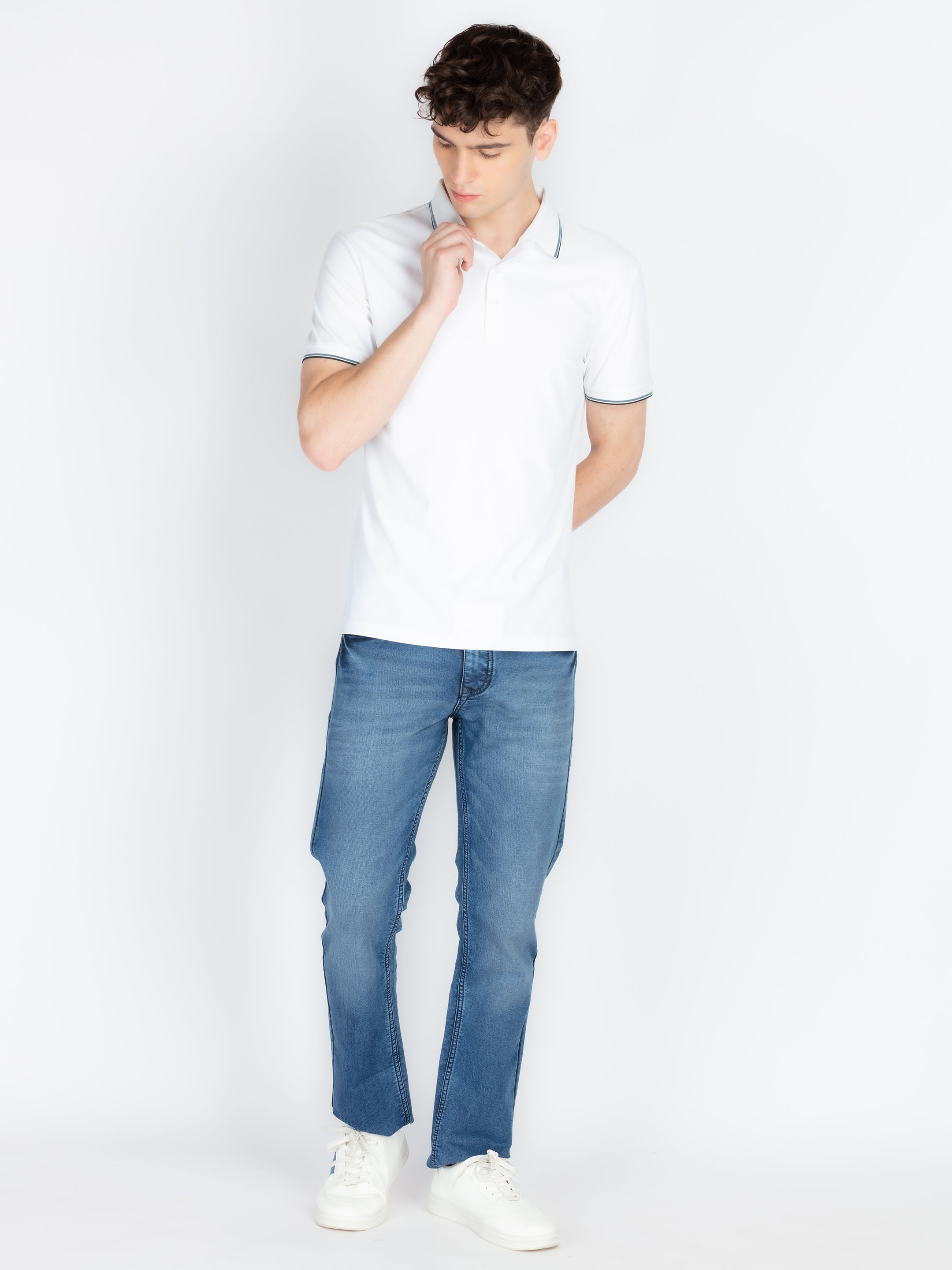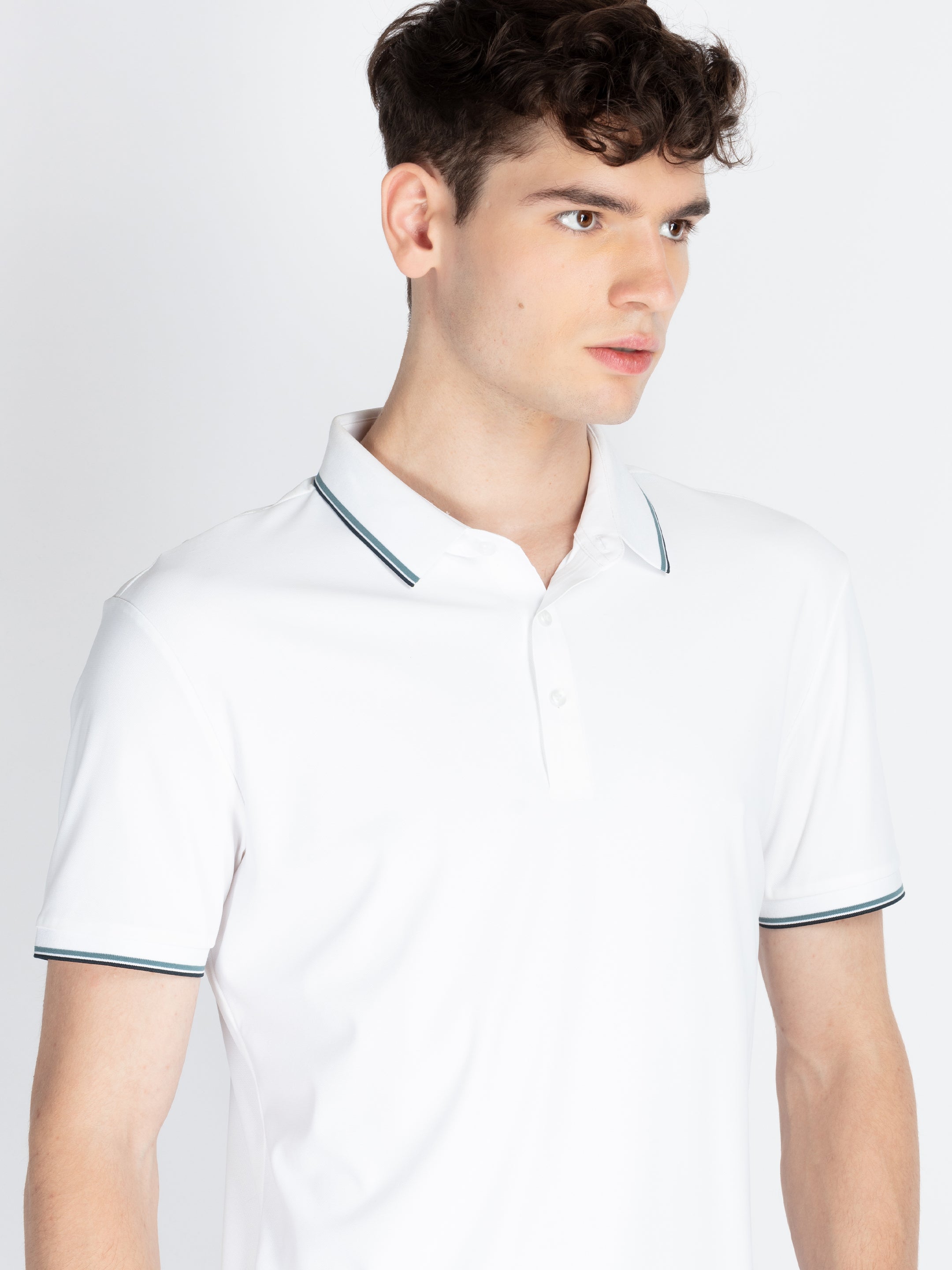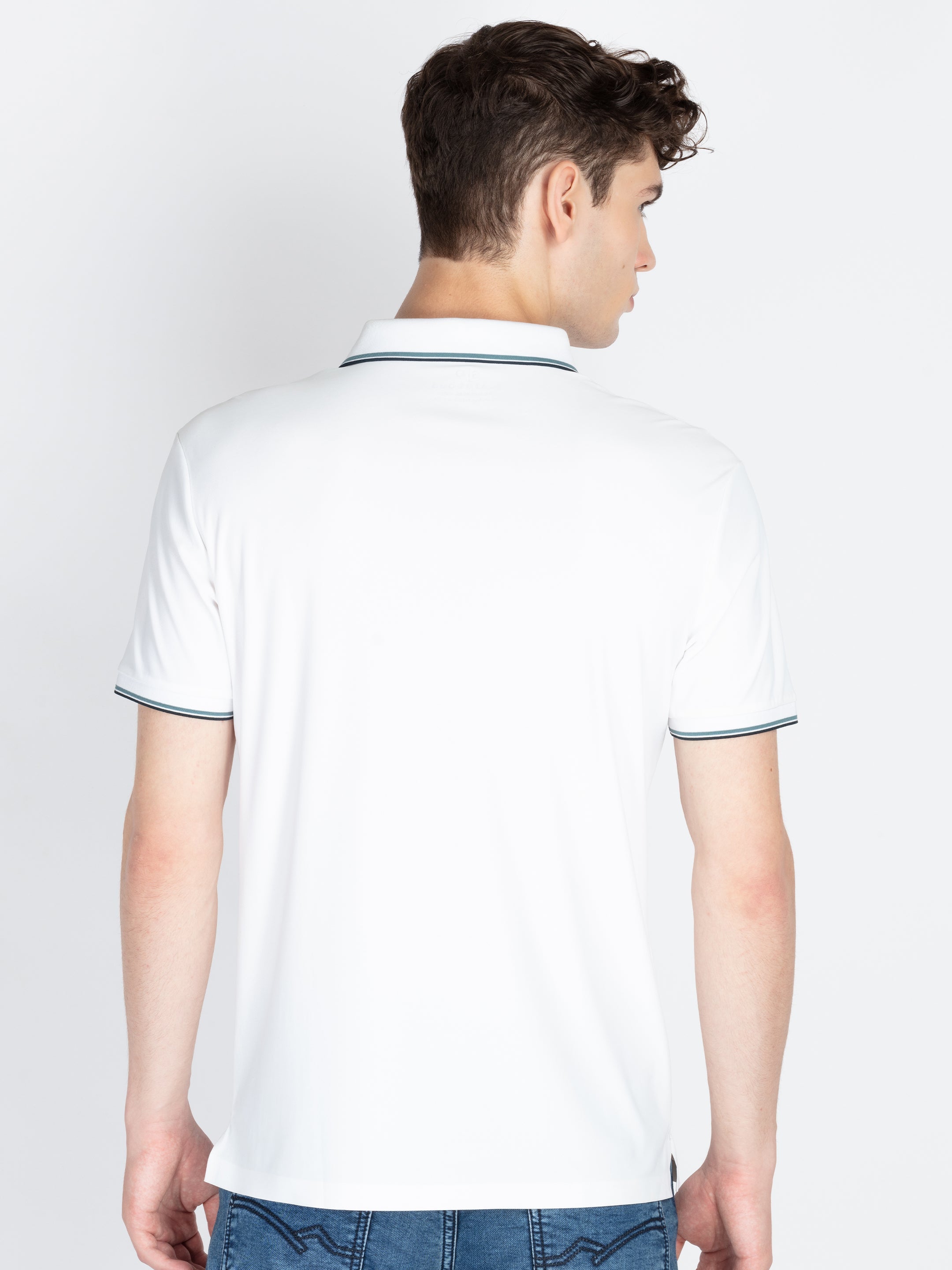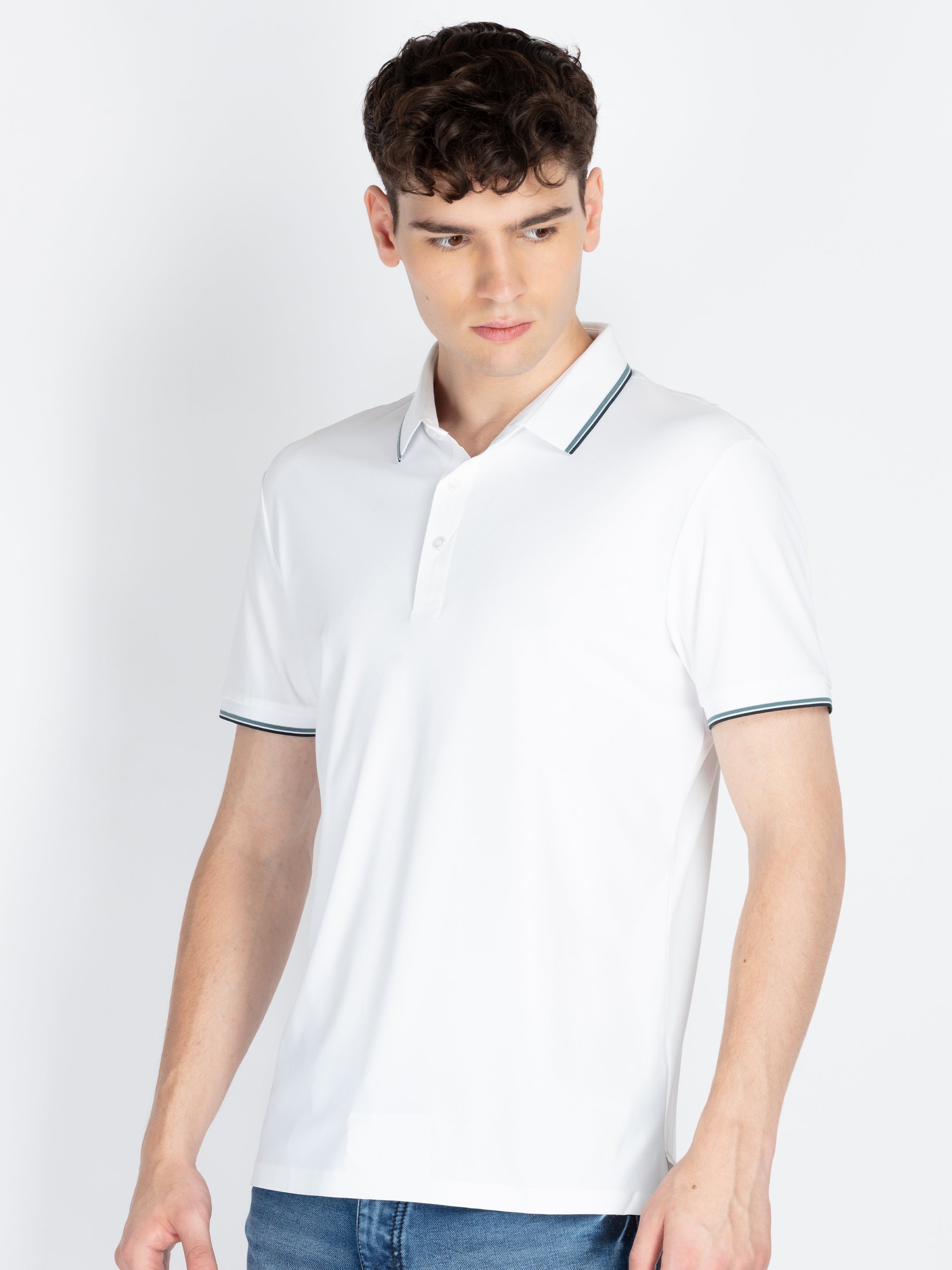 White Mens Solid Polo Collar T-Shirt With Half Sleeves