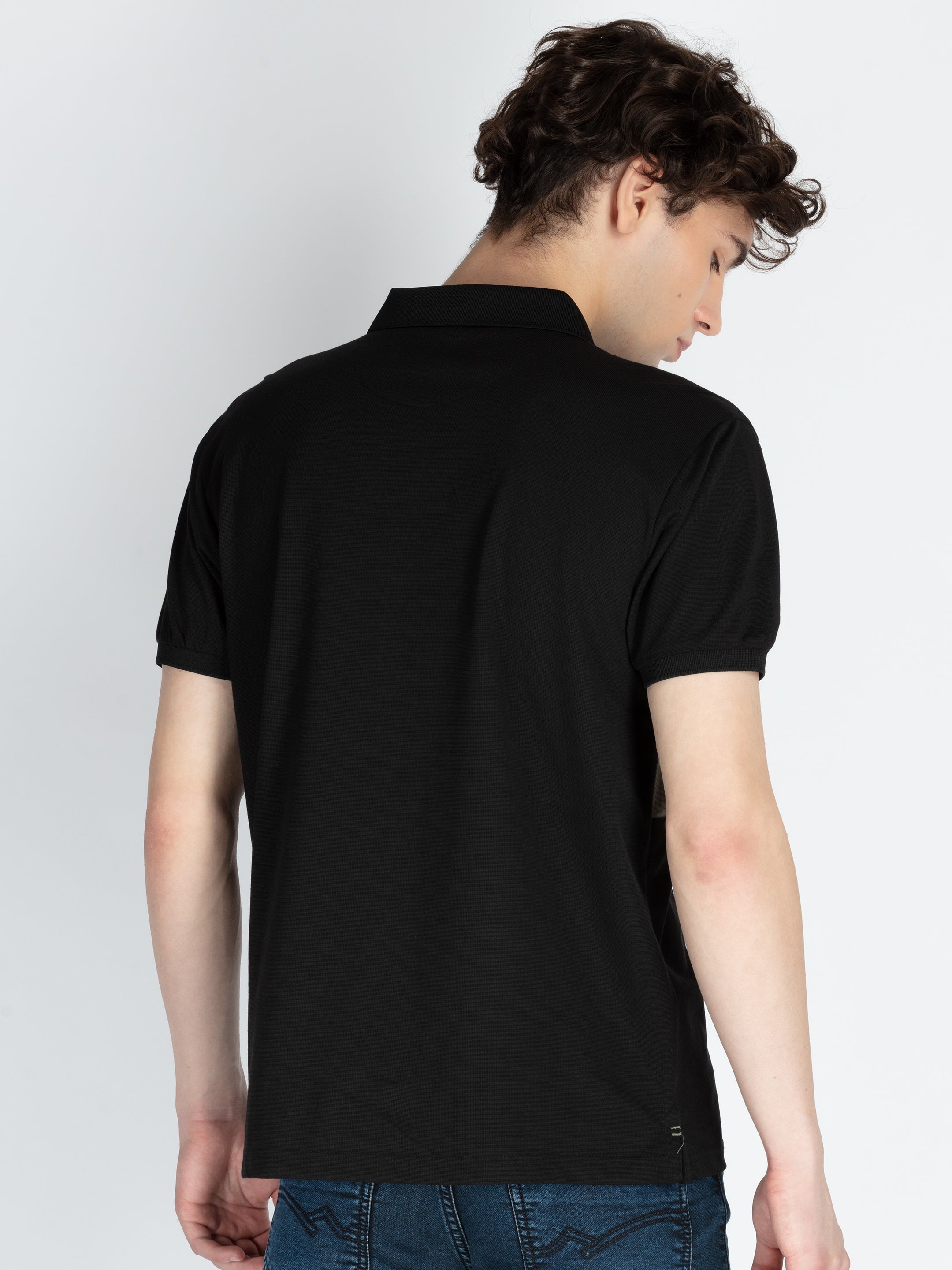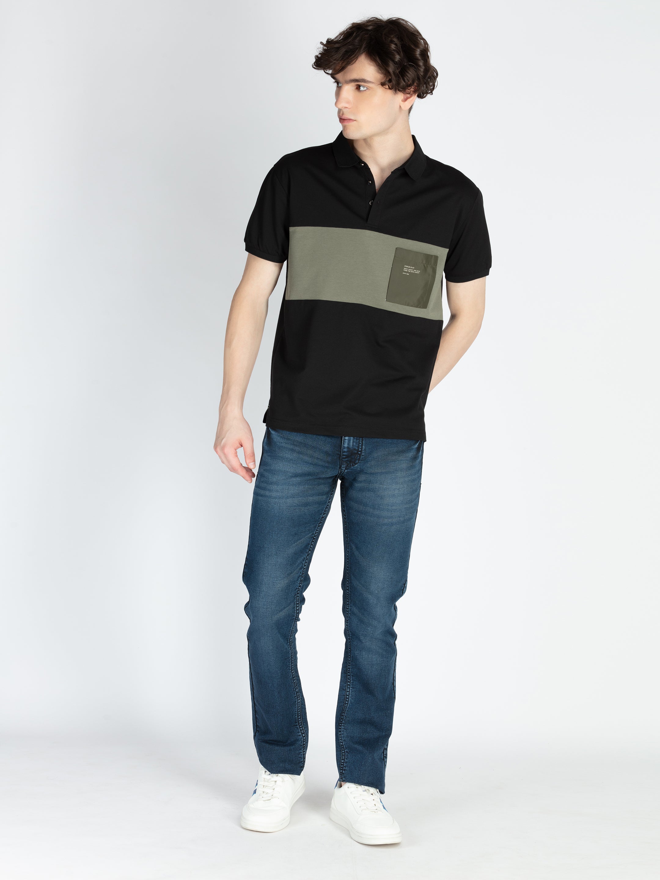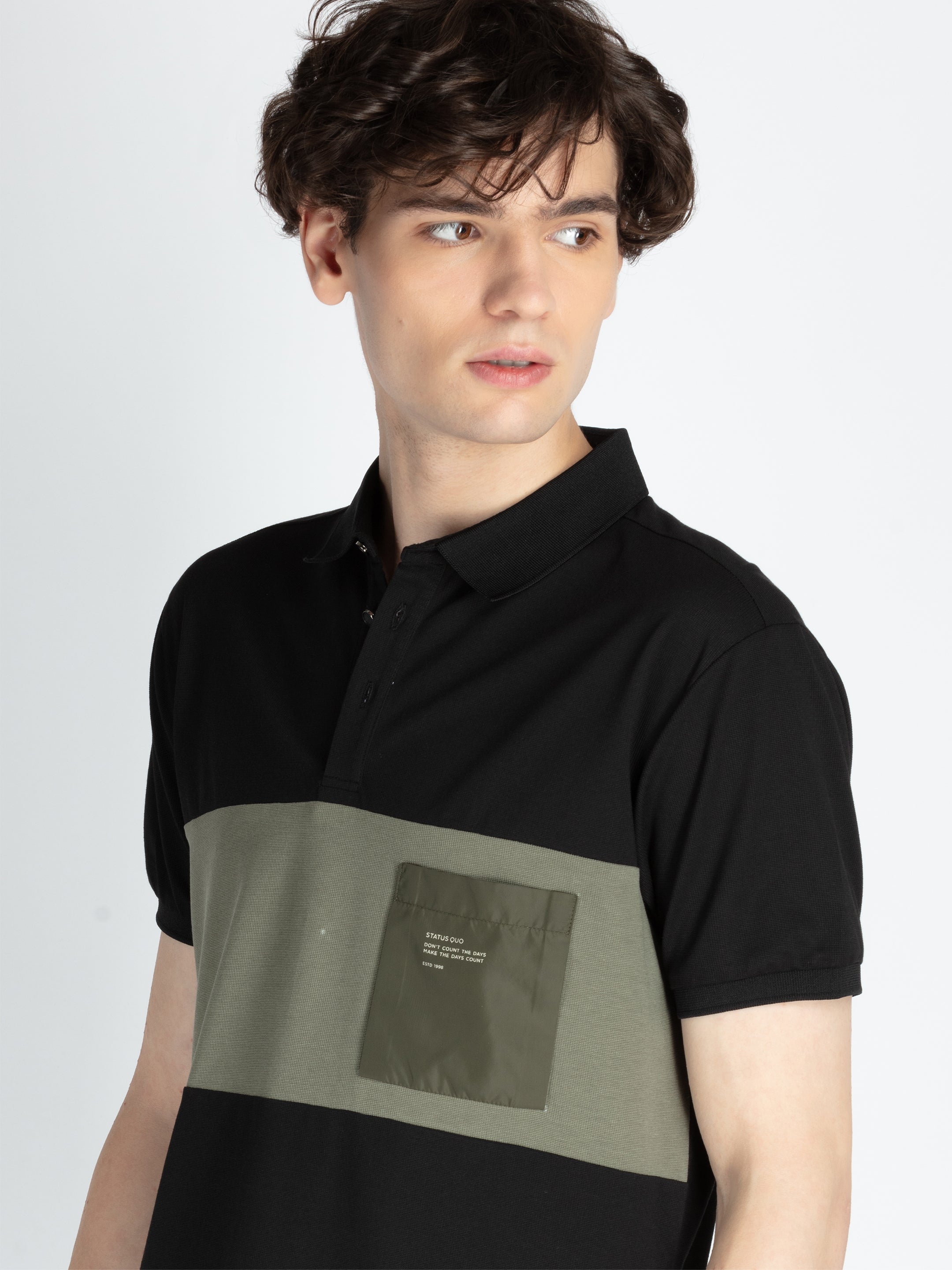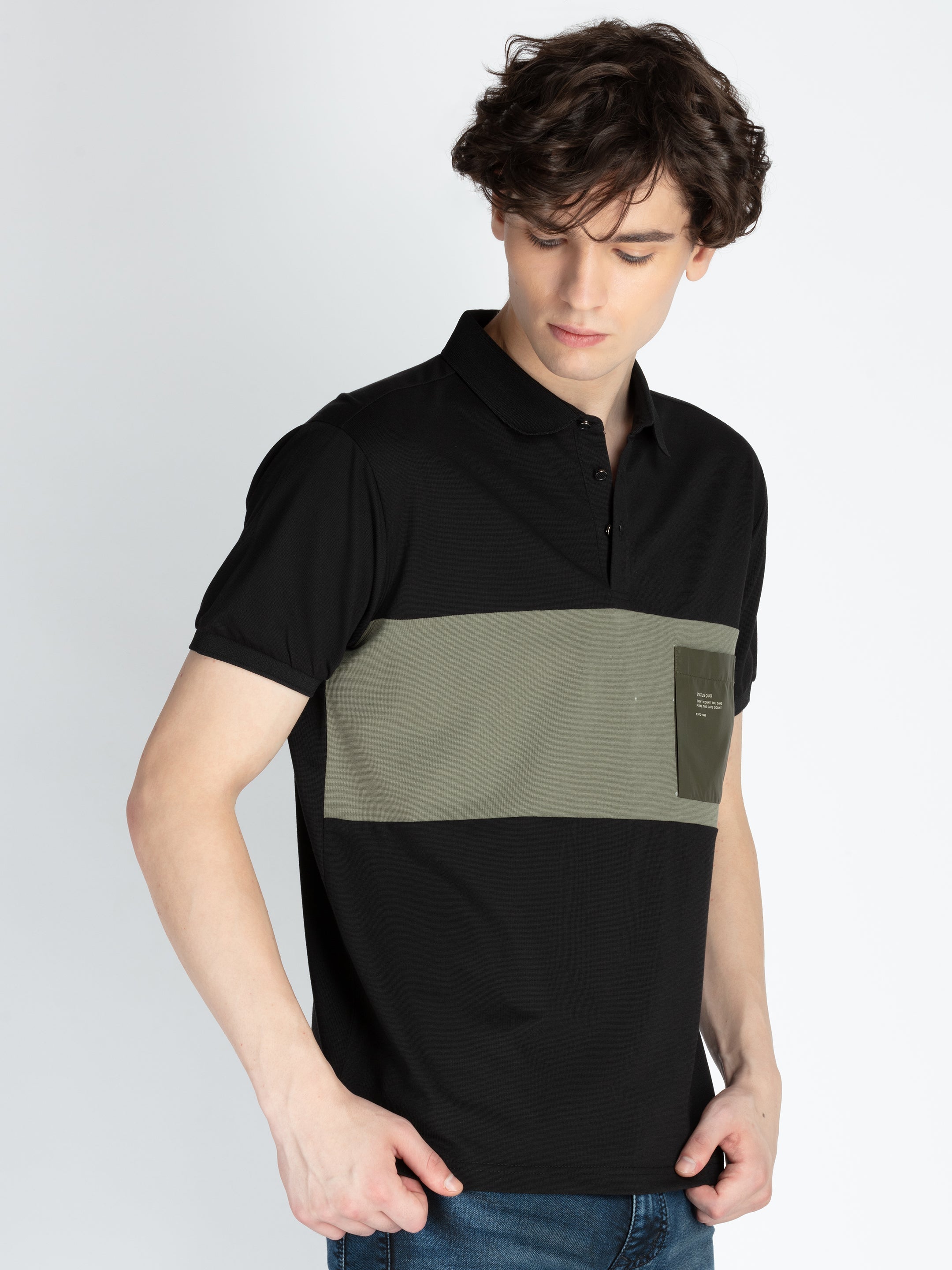 BLACK/LT.OLIVE Printed T-Shirt Has Polo Neck & Half Sleeves