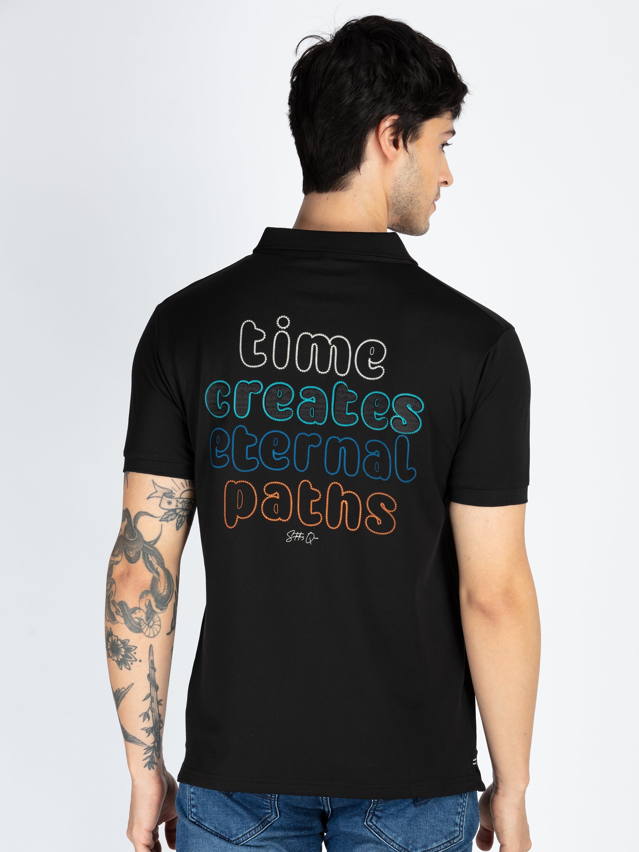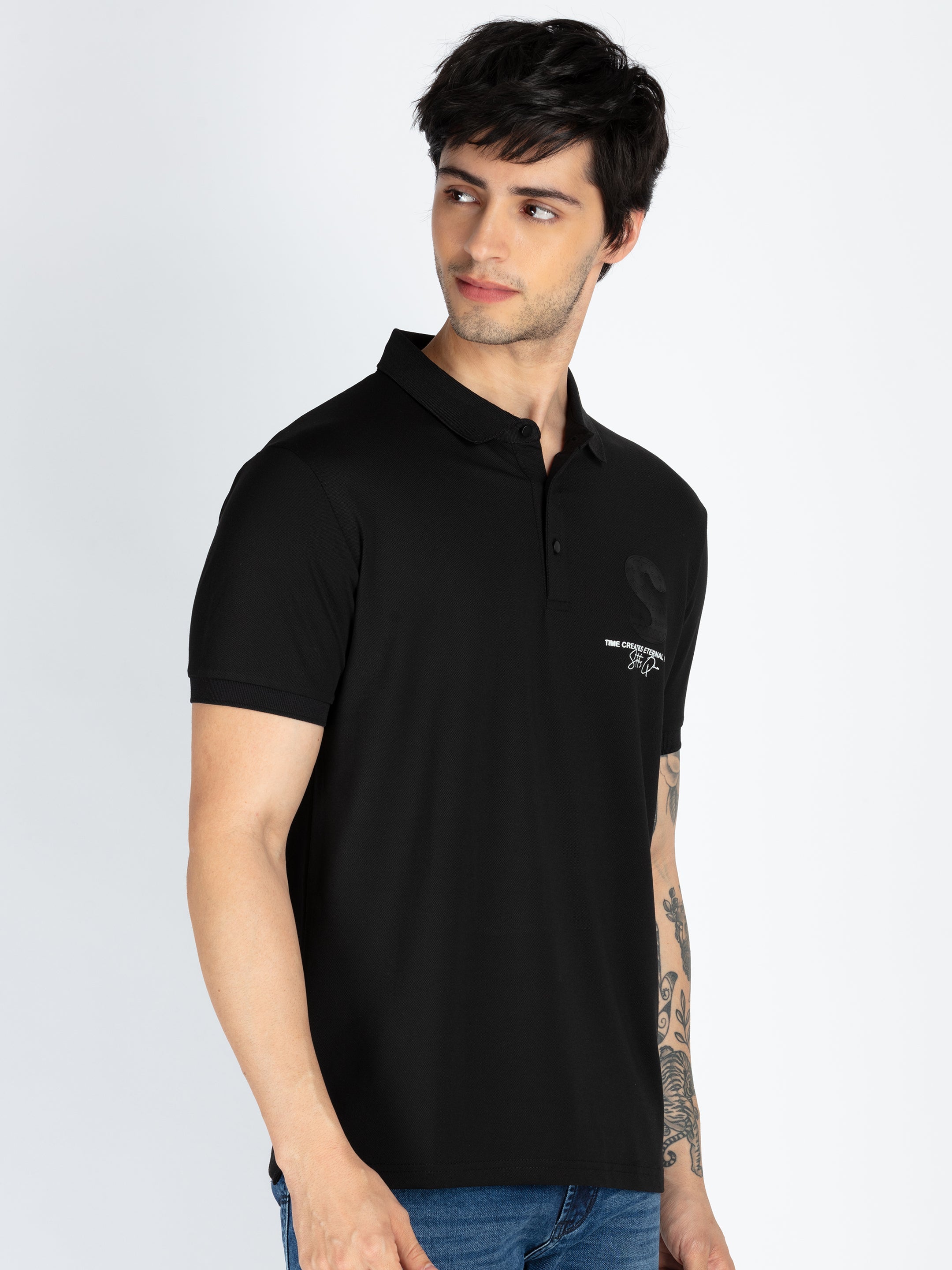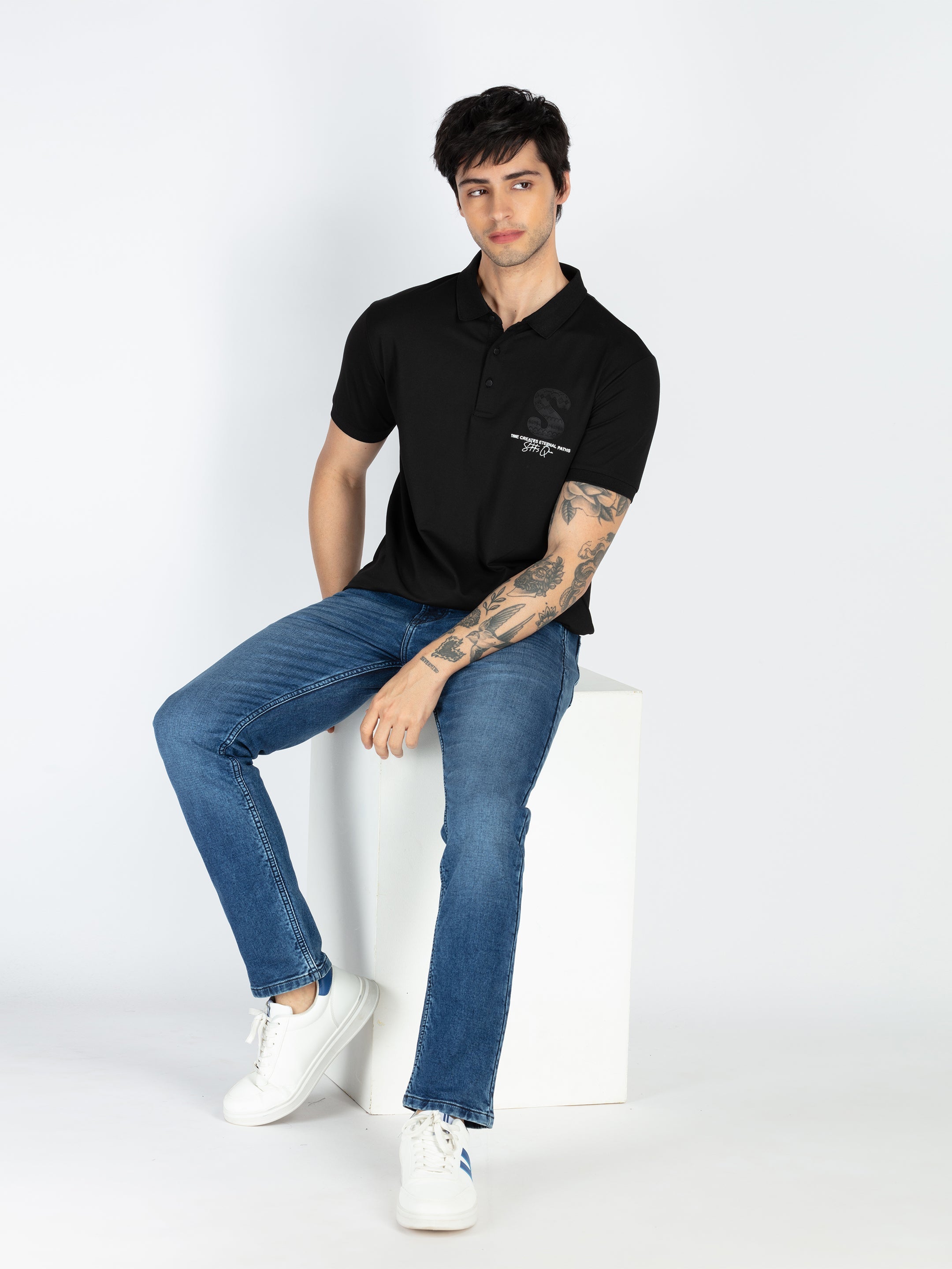 Black Mens Front & Back Printed Polo T-Shirt With Half Sleeves