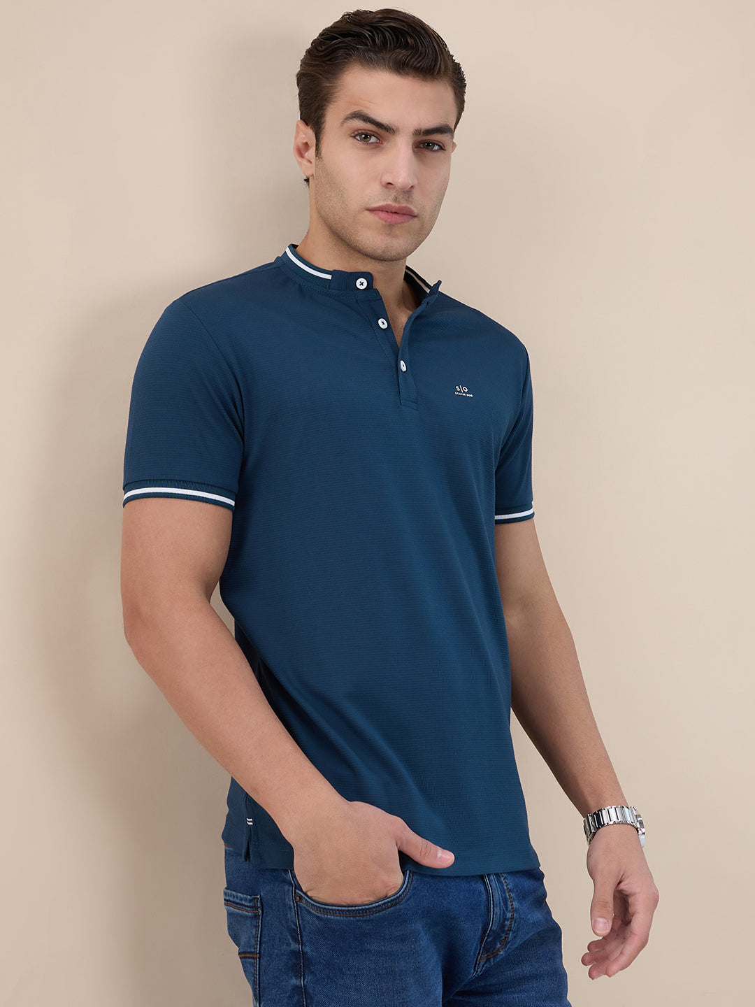 DK.TEAL Men's Solid Henley Neck Half Sleeves Regular Fit T-shirt