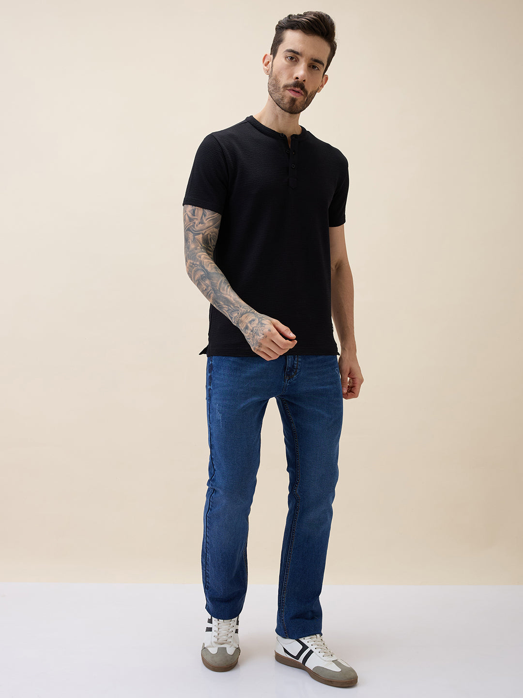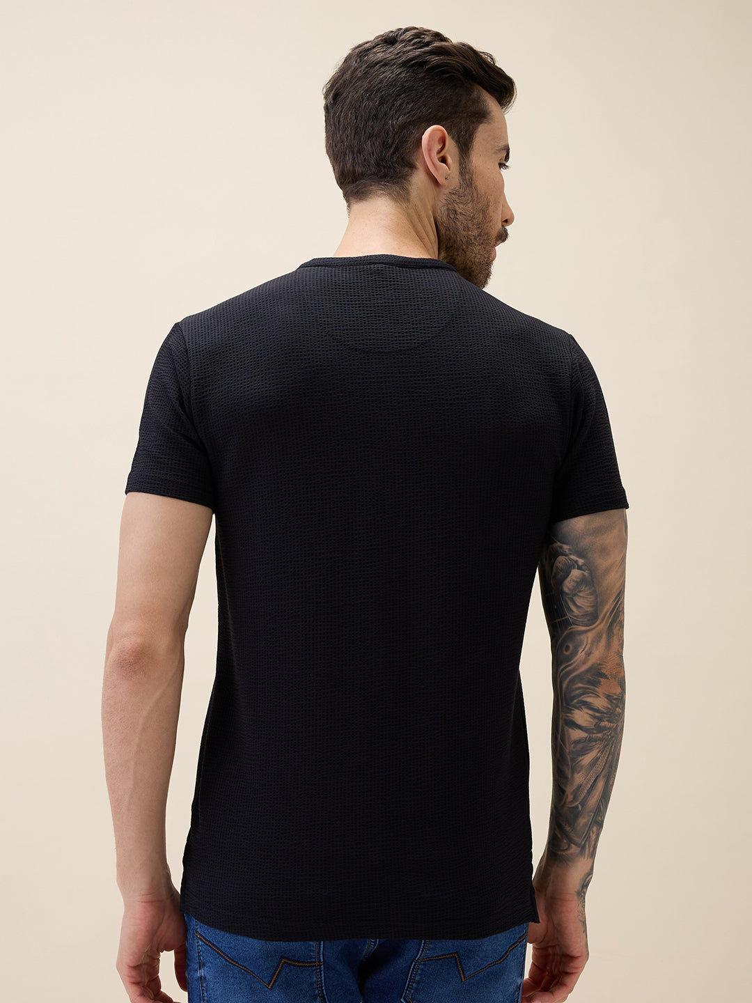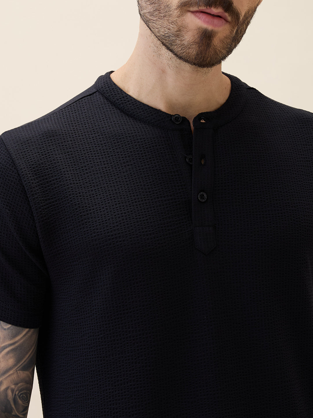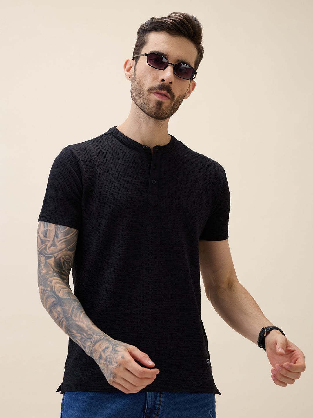 BLACK Men's Solid Henley Neck Half Sleeves Regular Fit Tshirt