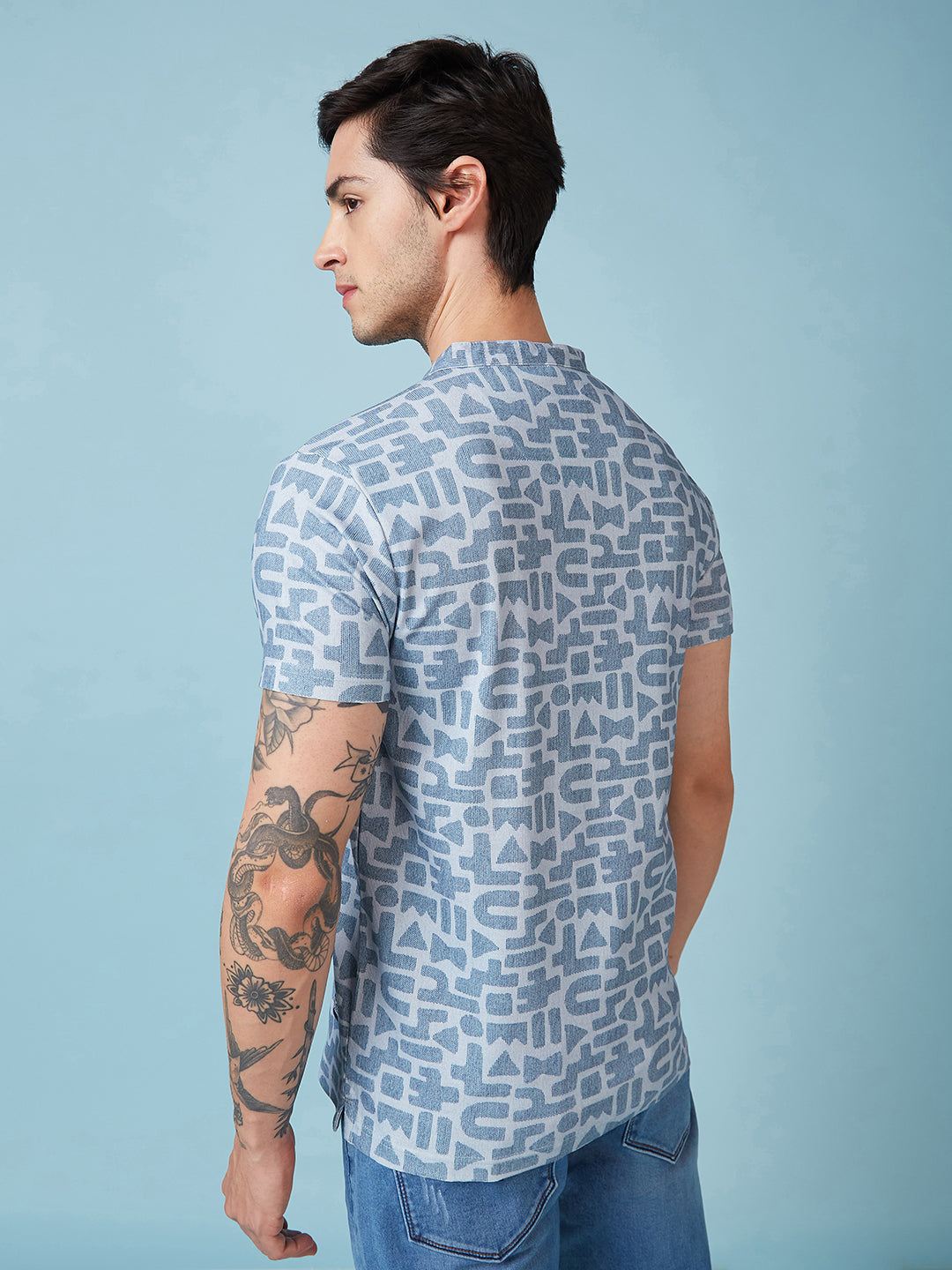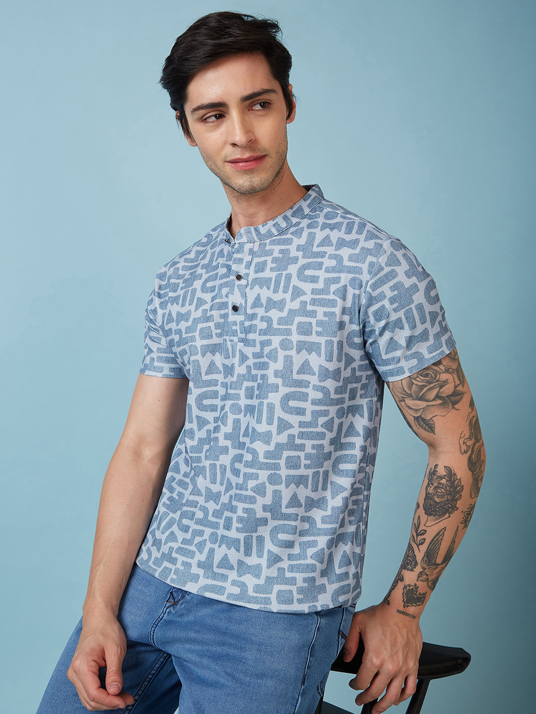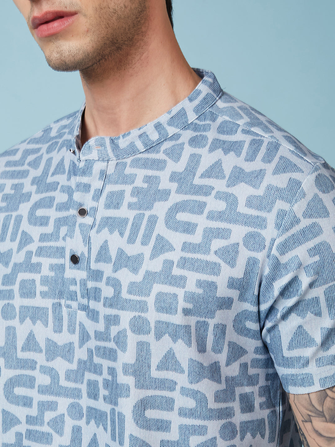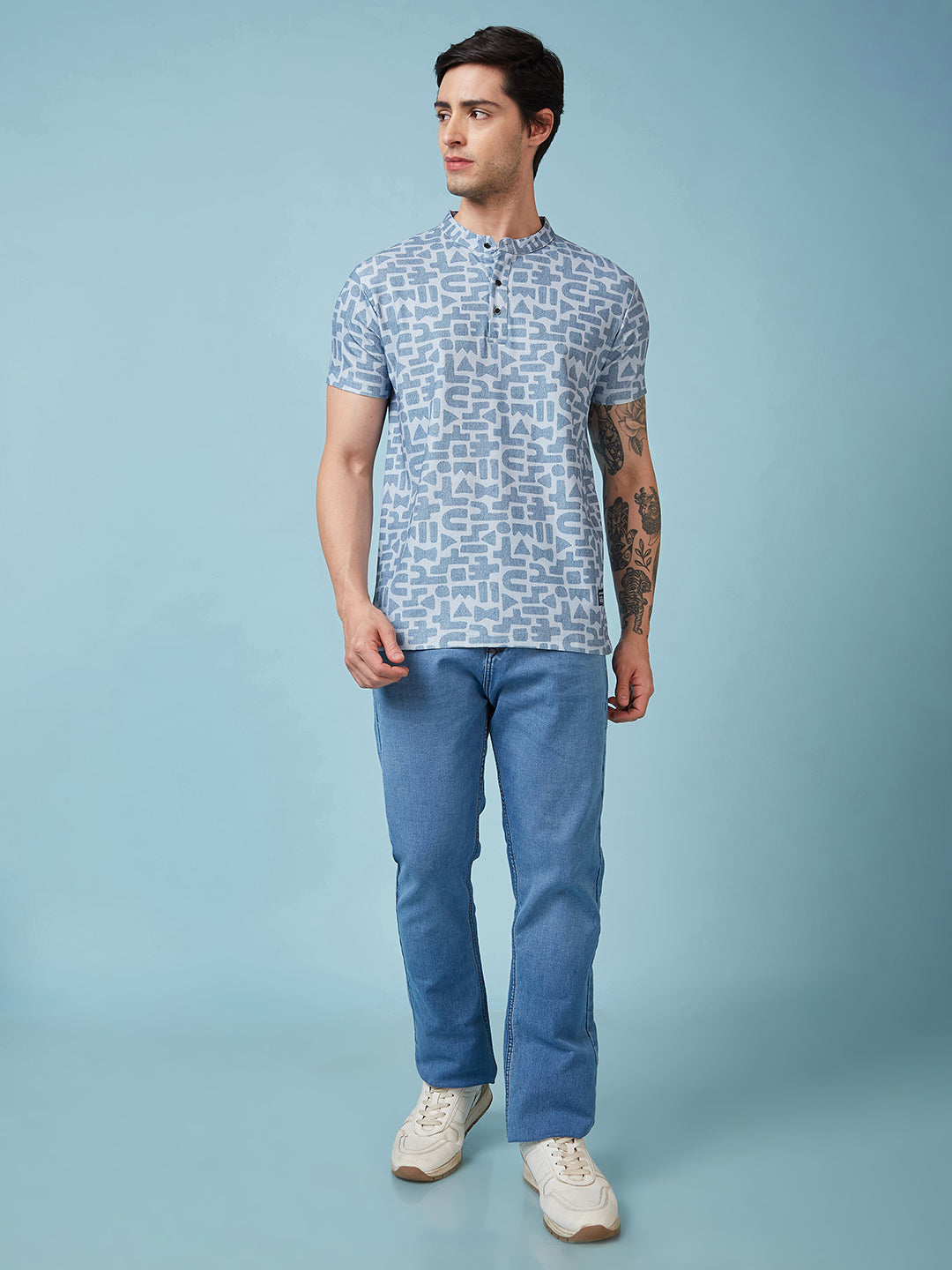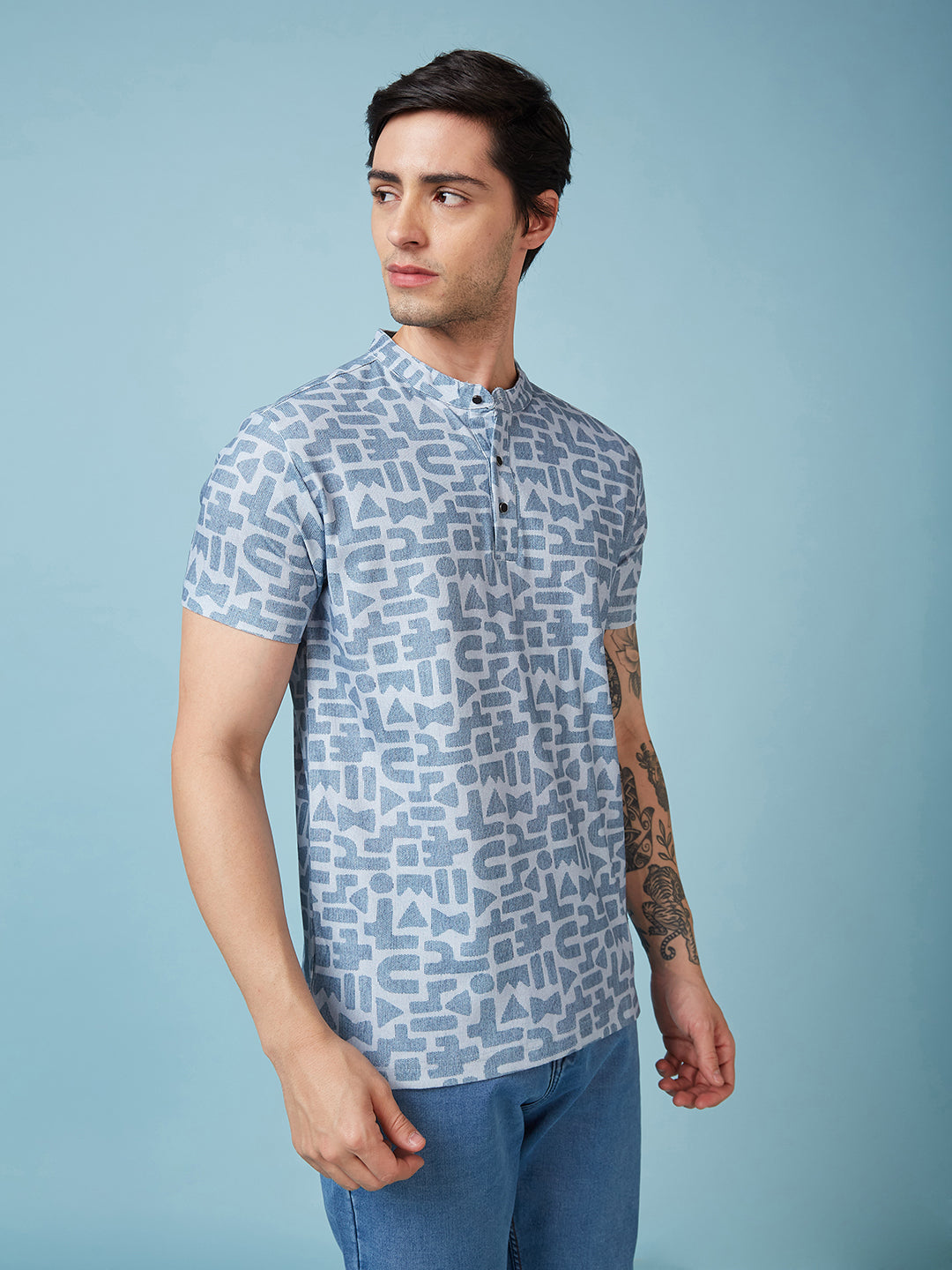 BLUE Mens Printed Henley Neck Half Sleeves T-shirt