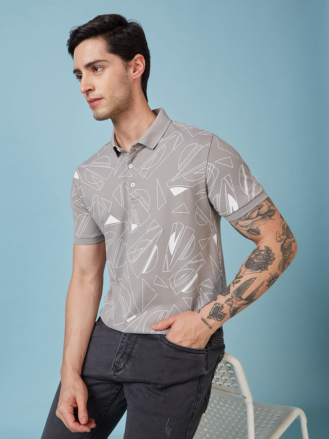 GREY Mens Printed Polo Neck Half Sleeves T-shirt
