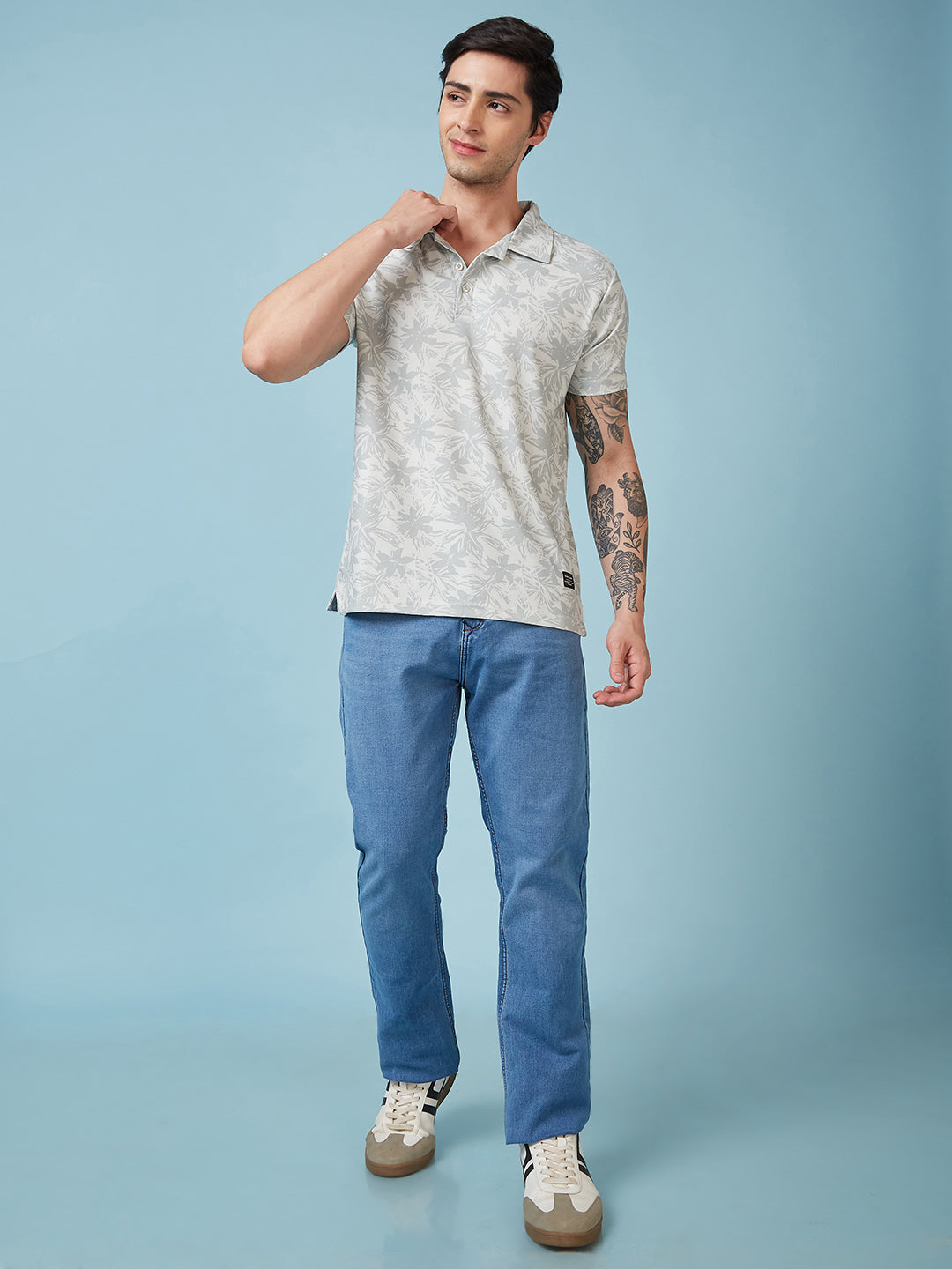 SAGE Mens Printed Henley Neck Half Sleeves T-shirt