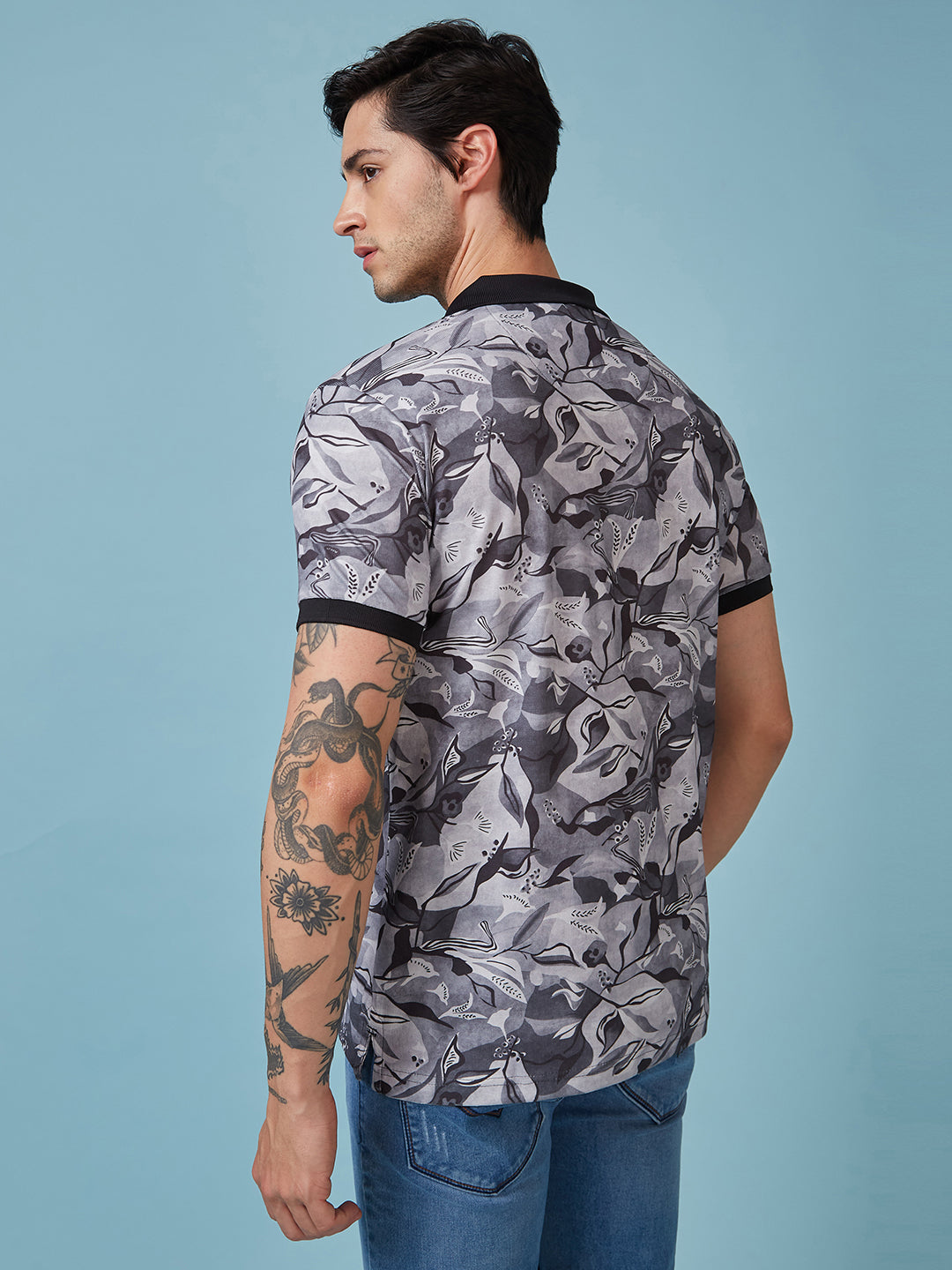 DK.GREY Mens Printed Polo Neck Half Sleeves T-shirt