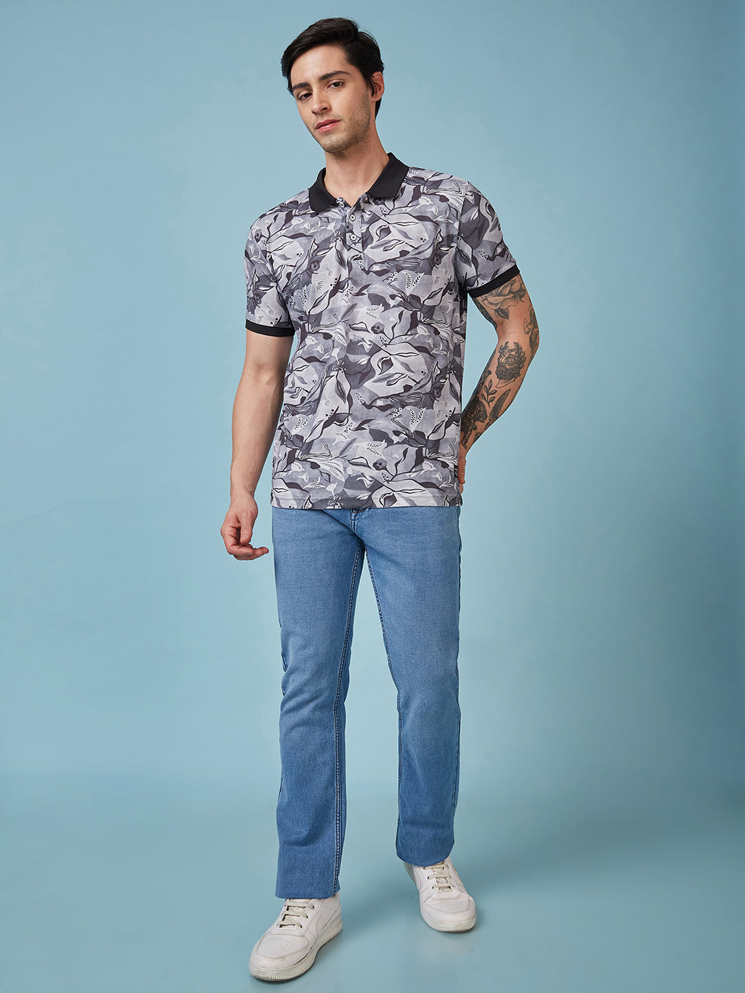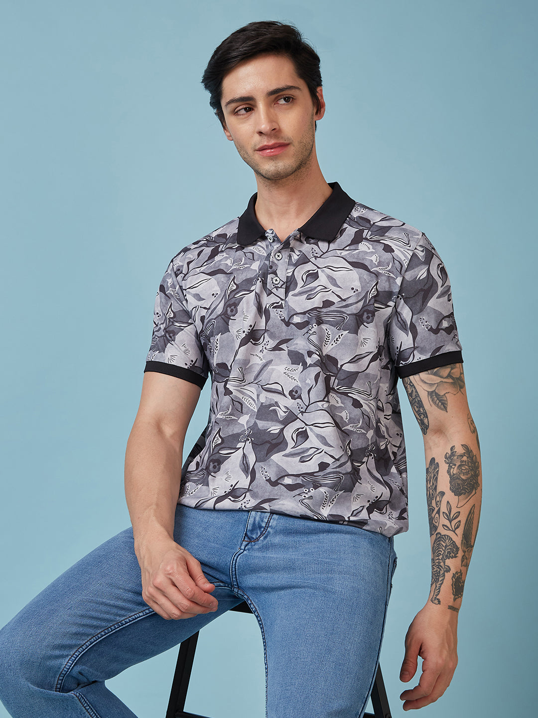 DK.GREY Mens Printed Polo Neck Half Sleeves T-shirt