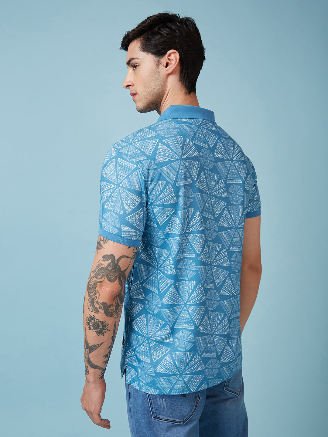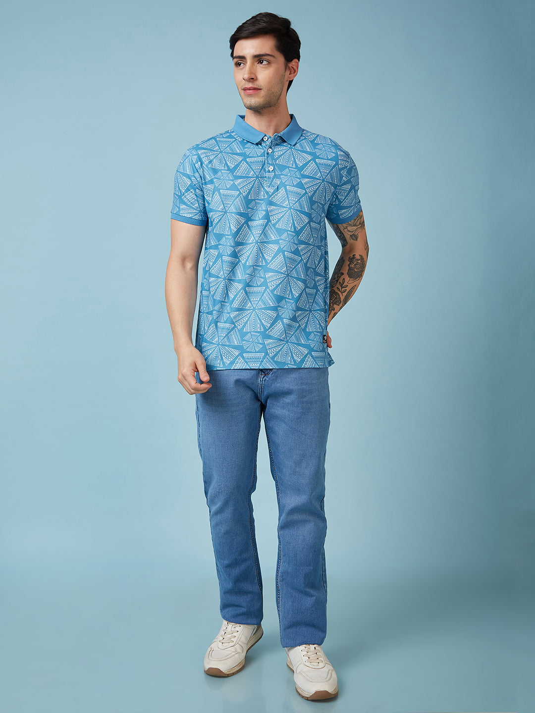 BLUE Mens Printed Polo Neck Half Sleeves T-shirt