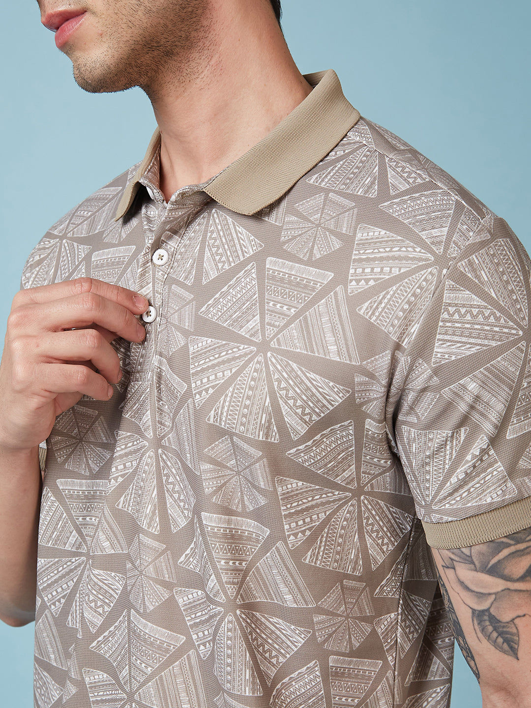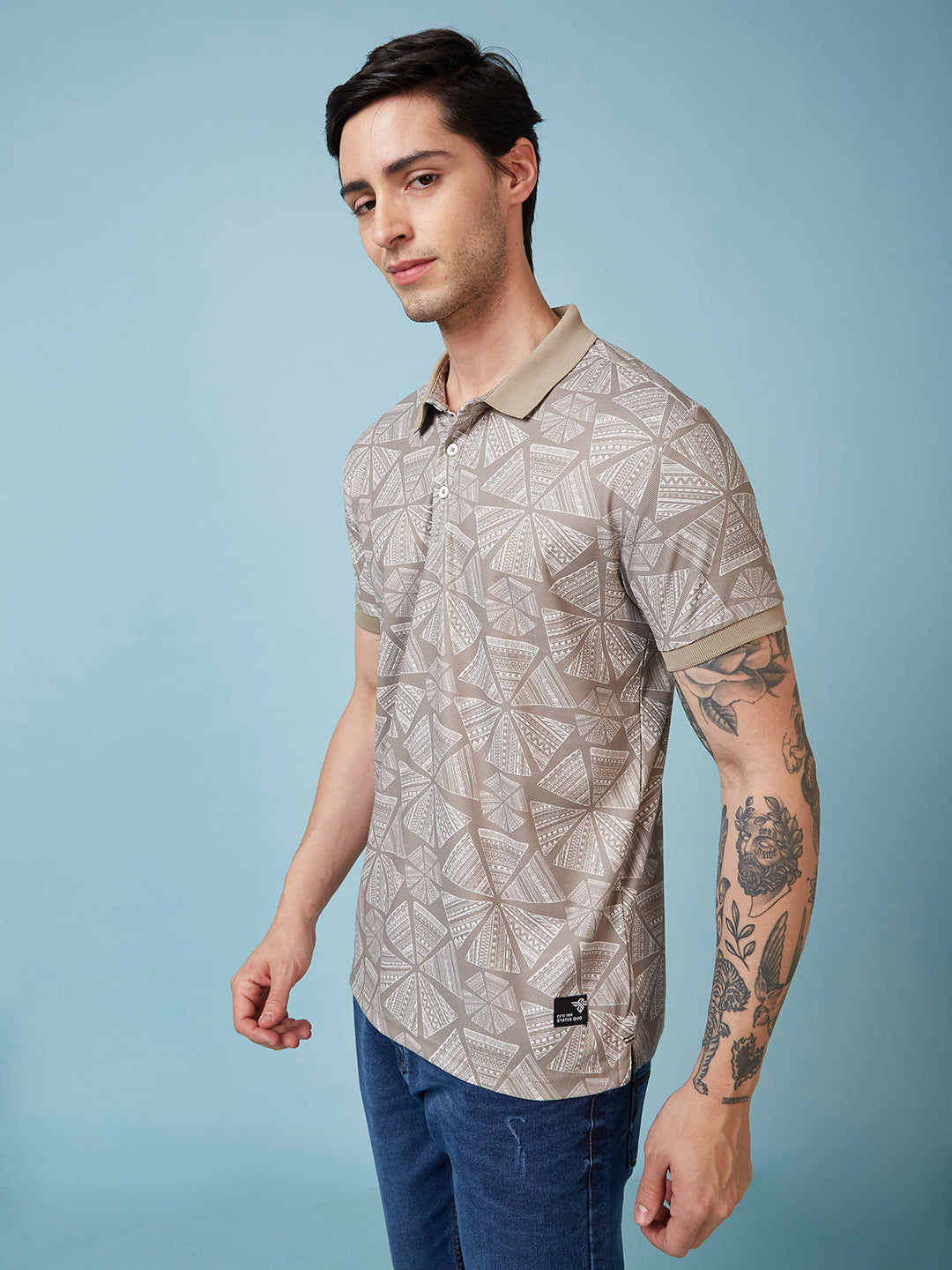 KHAKI Mens Printed Polo Neck Half Sleeves T-shirt