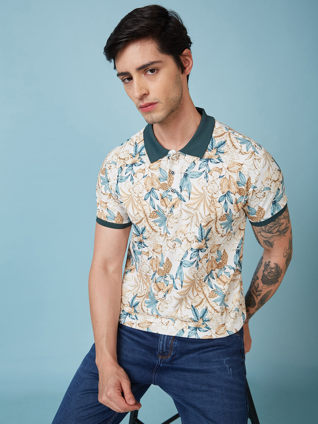 MUSTARD Mens Printed Cuban Collar Half Sleeves T-shirt