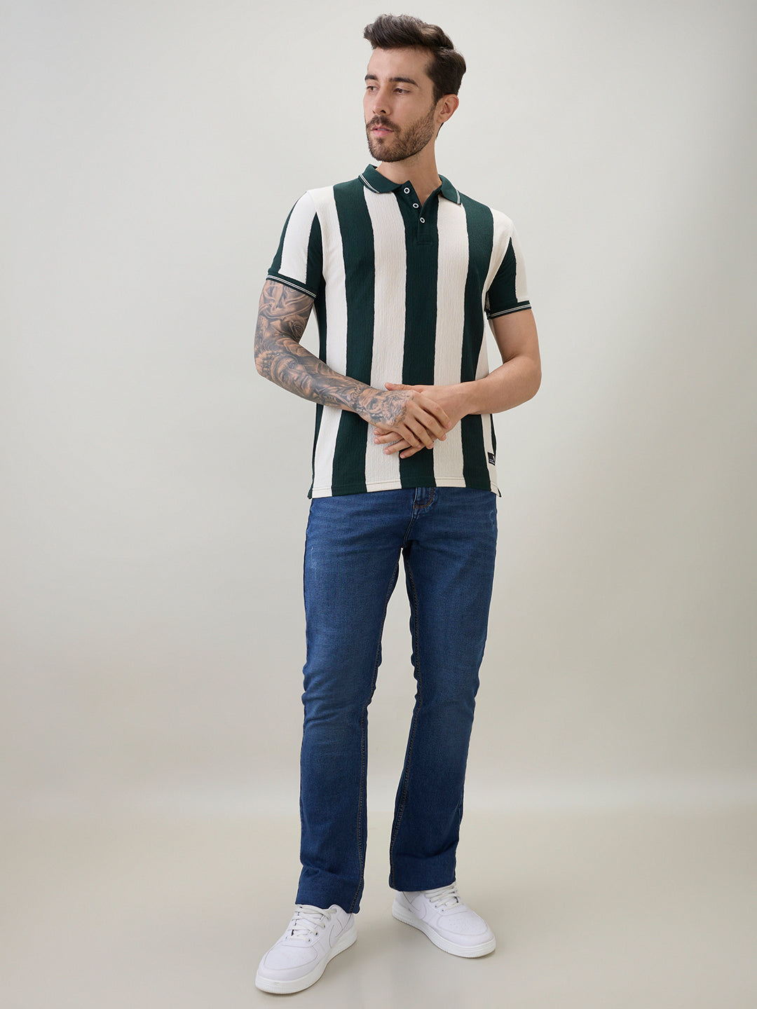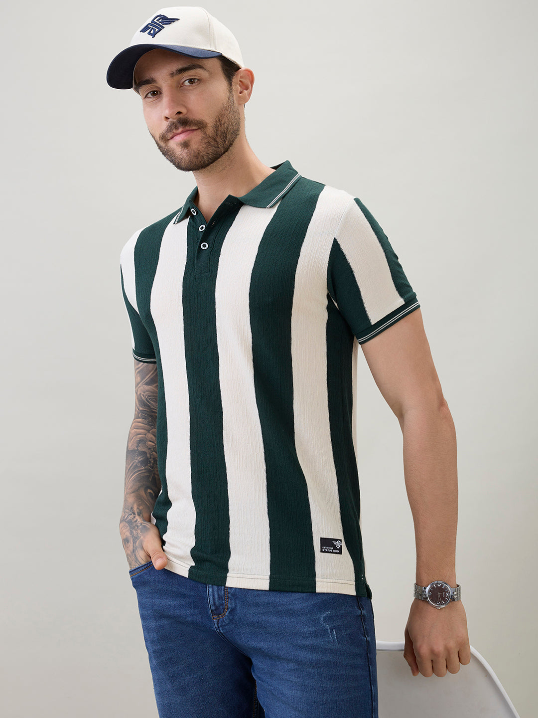 B.GREEN Men's Striped Regular Fit Polo T-Shirt with Tipping Detail and Half Sleeves
