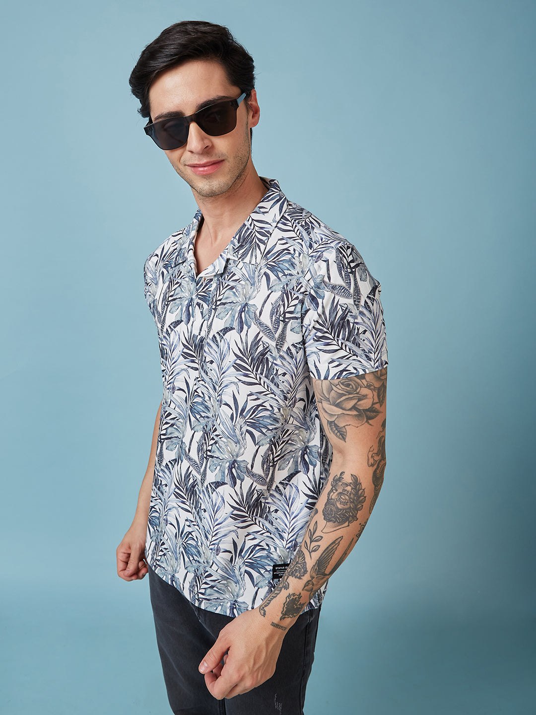 DK.GREY Mens Printed Cuban Collar Half Sleeves T-shirt