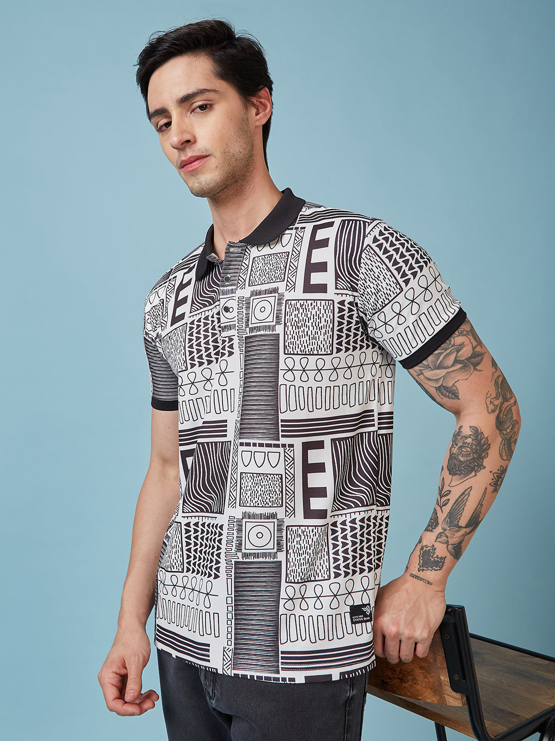 BLACK Mens Printed Polo Neck Half Sleeves T-shirt