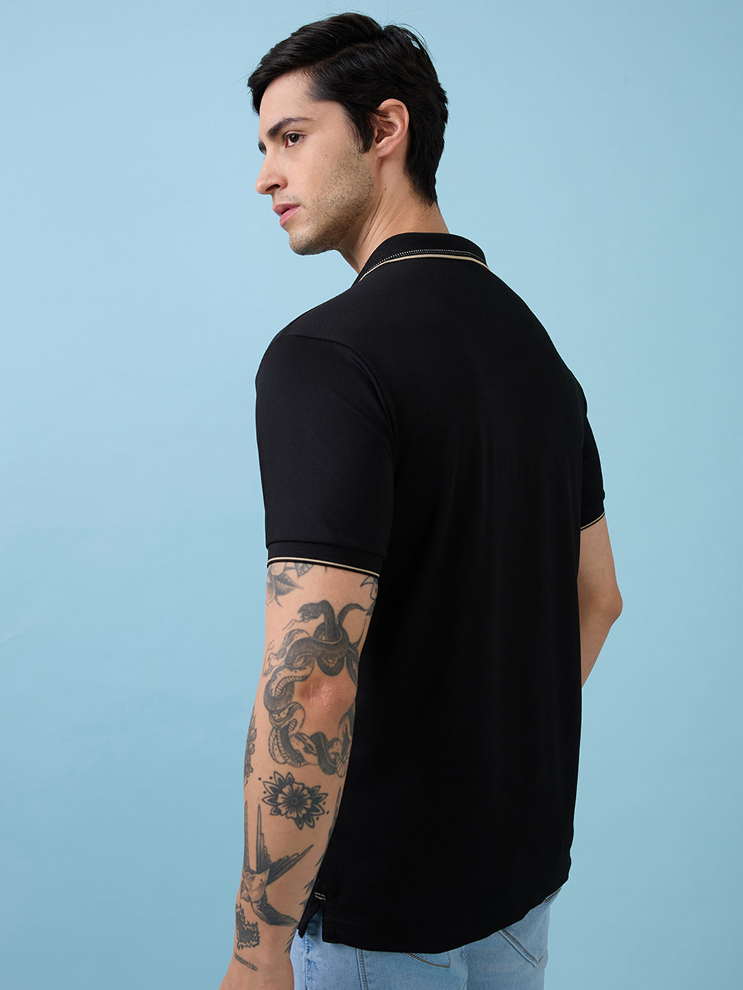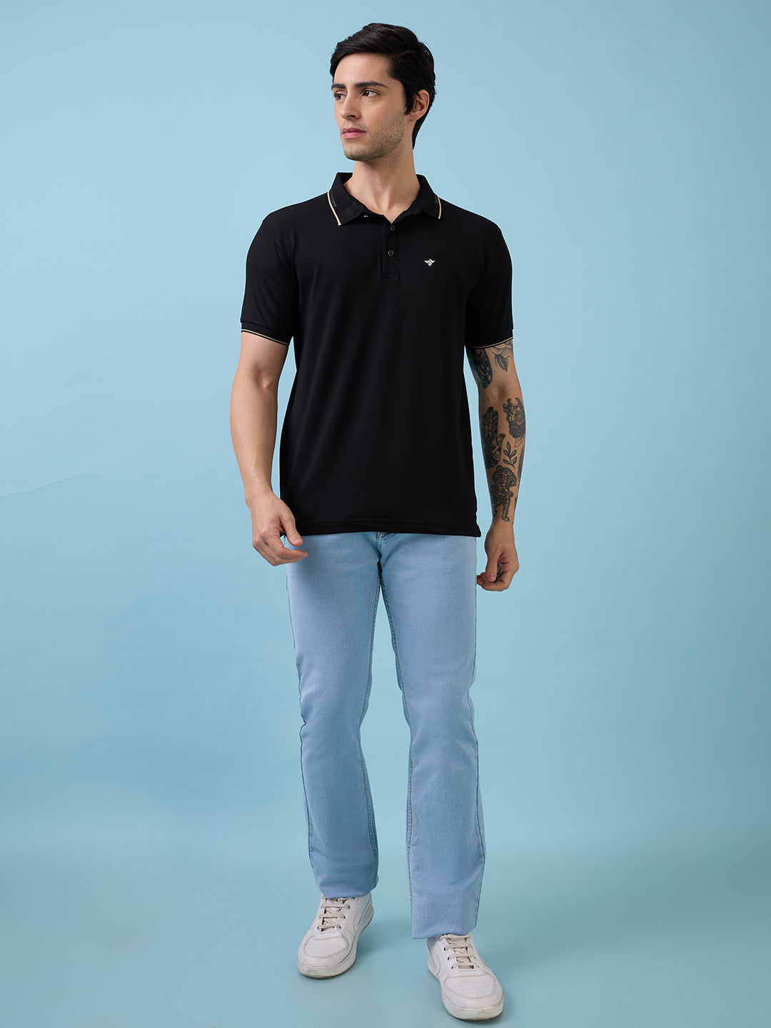 BLACK Mens Solid Polo Neck Half Sleeves T-shirt