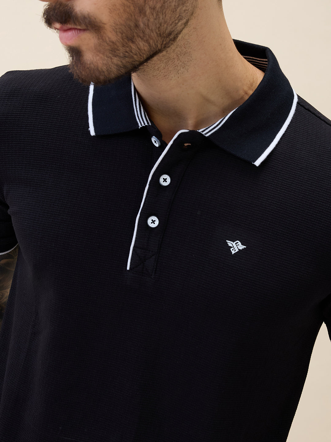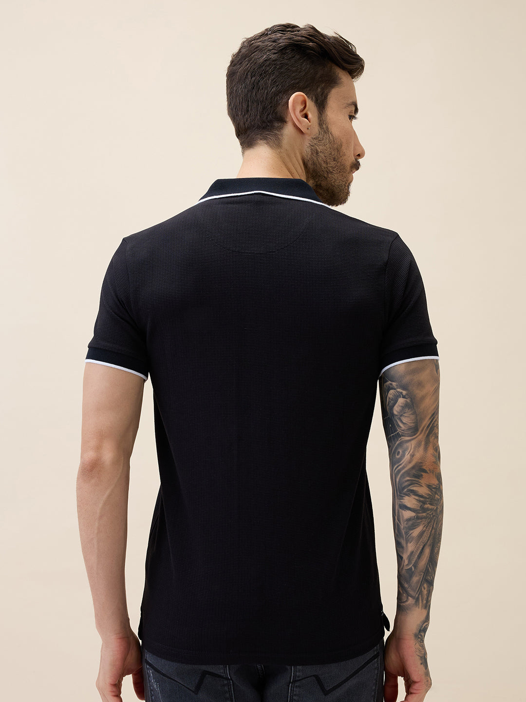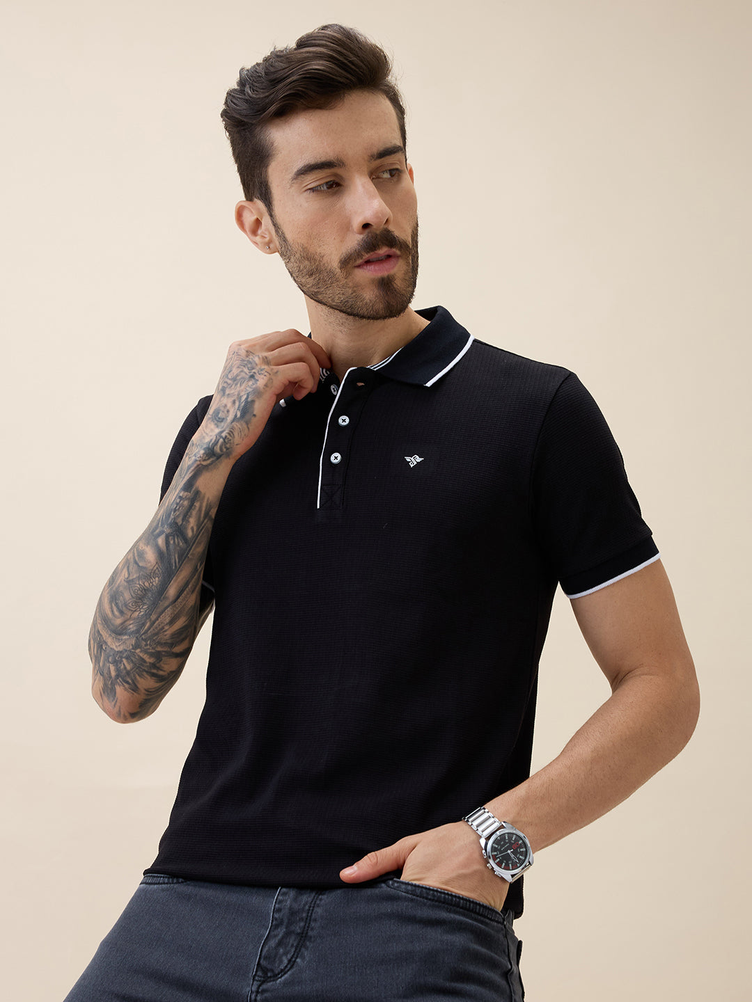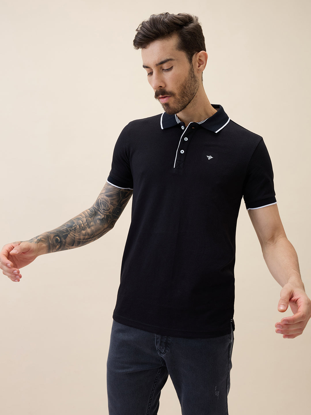 BLACK Men's Solid Polo Collar Half Sleeves Regular Fit Tshirt
