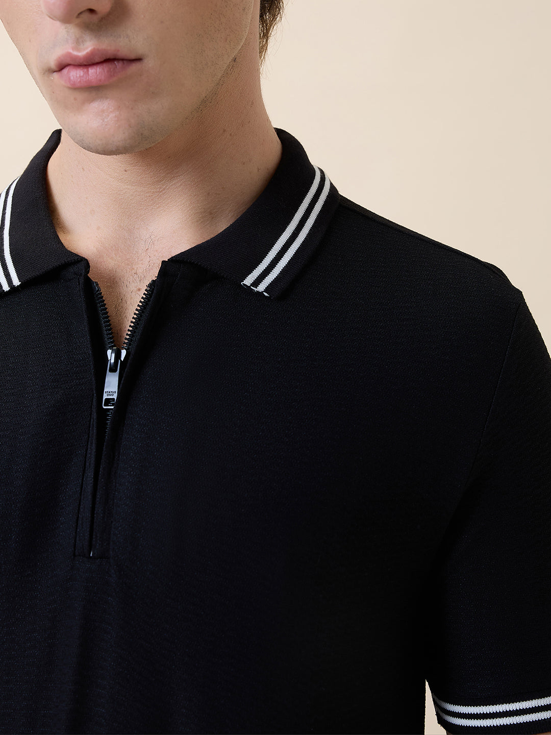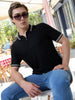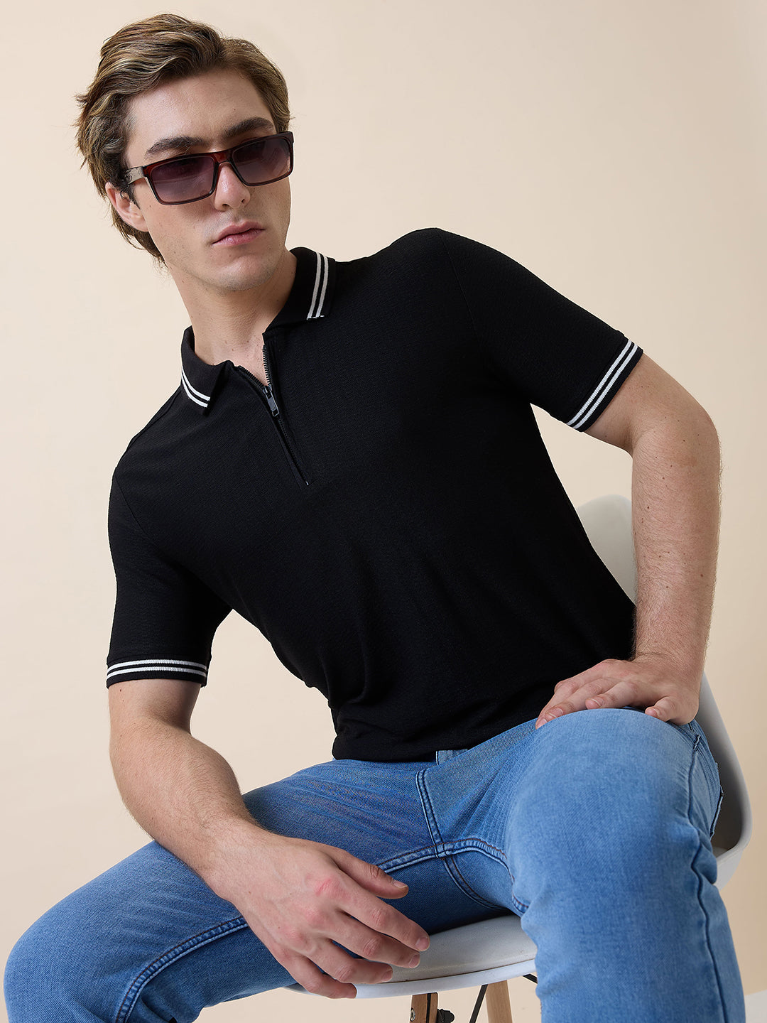 BLACK Status Quo Men's Solid Polo Collar Half Sleeves Regular Fit T-shirt