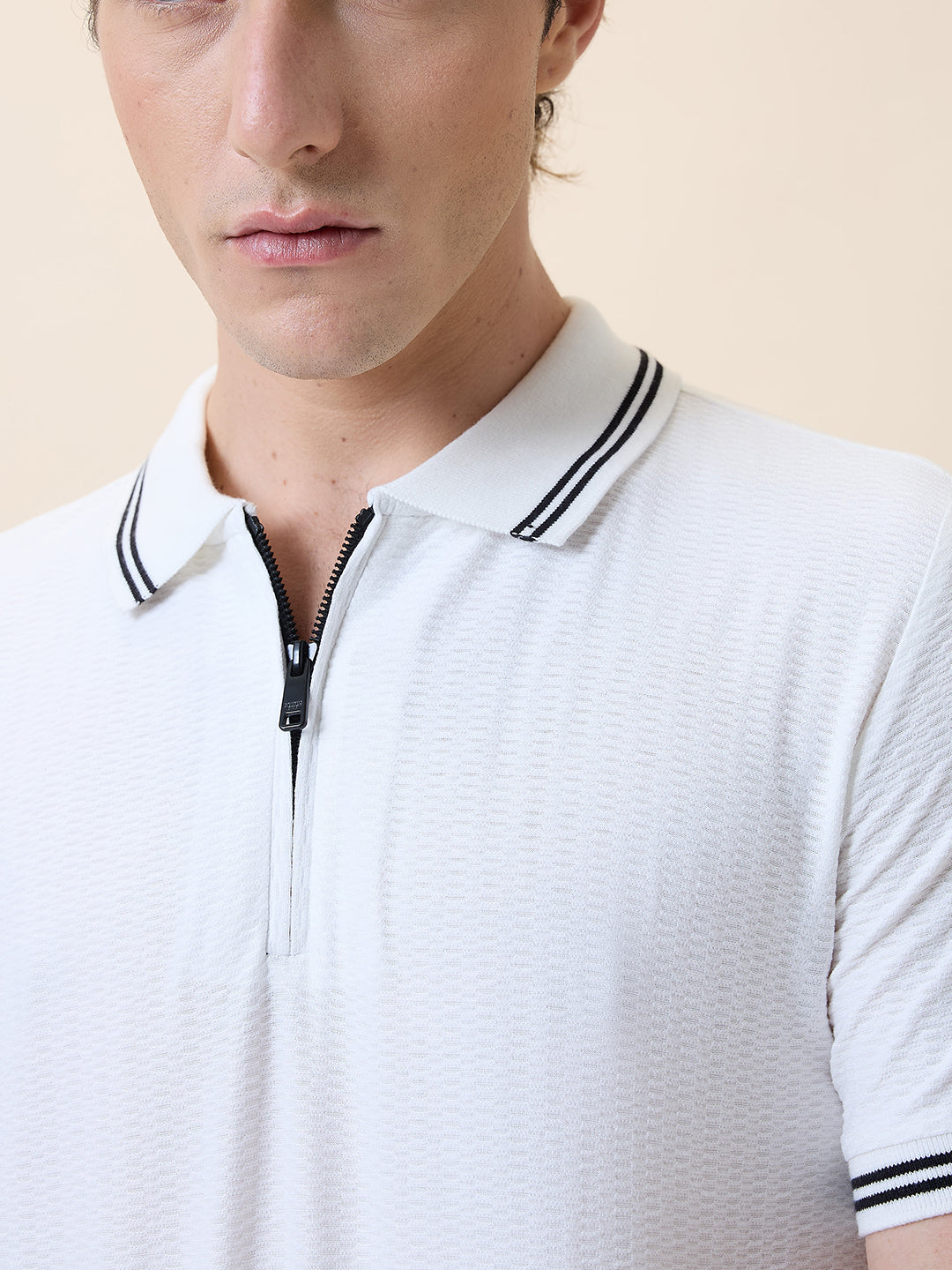 WHITE Status Quo Men's Solid Polo Collar Half Sleeves Regular Fit T-shirt