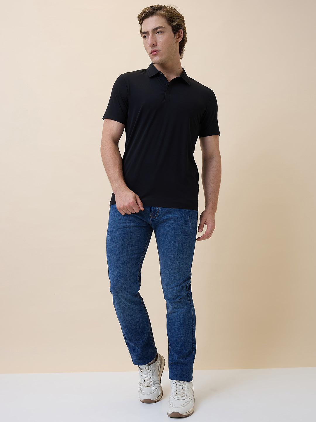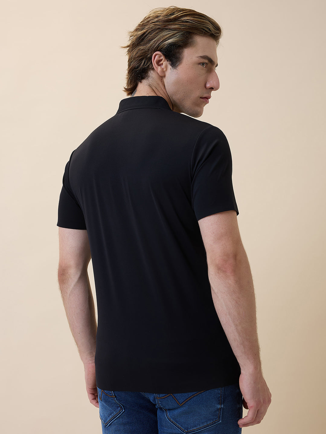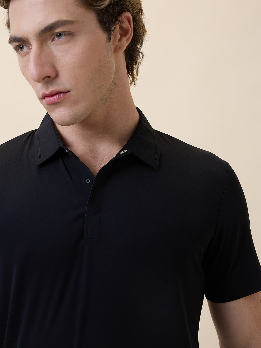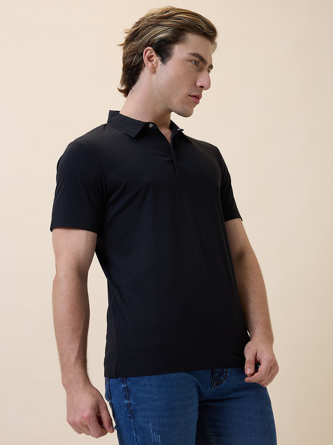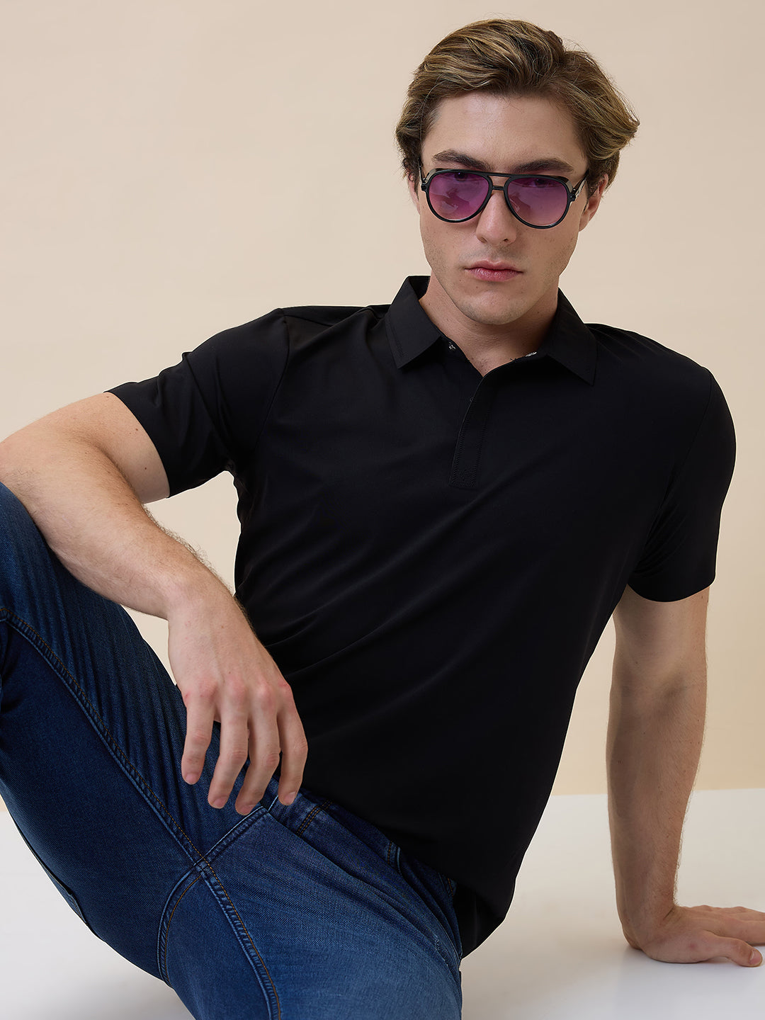 BLACK Men's Premium Solid Polo Collar Half Sleeves Regular Fit T-shirt