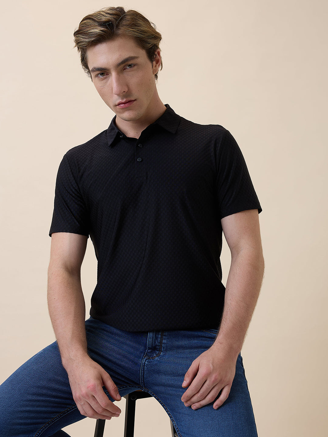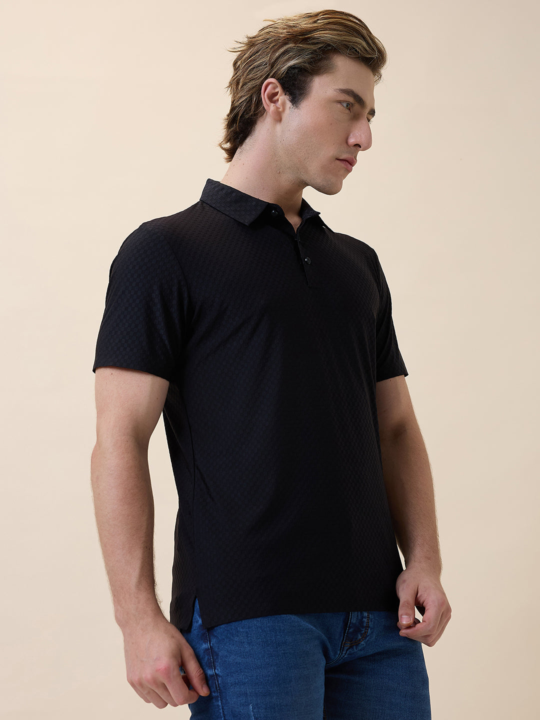BLACK Men's Premium Solid Polo Collar Half Sleeves Regular Fit T-shirt