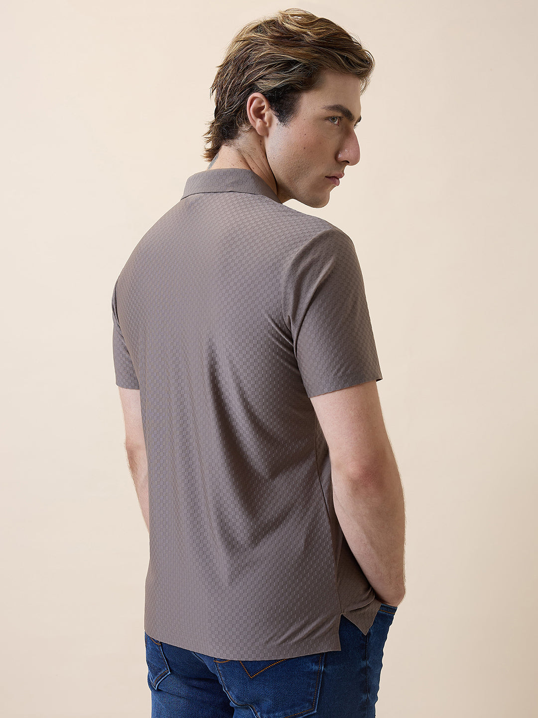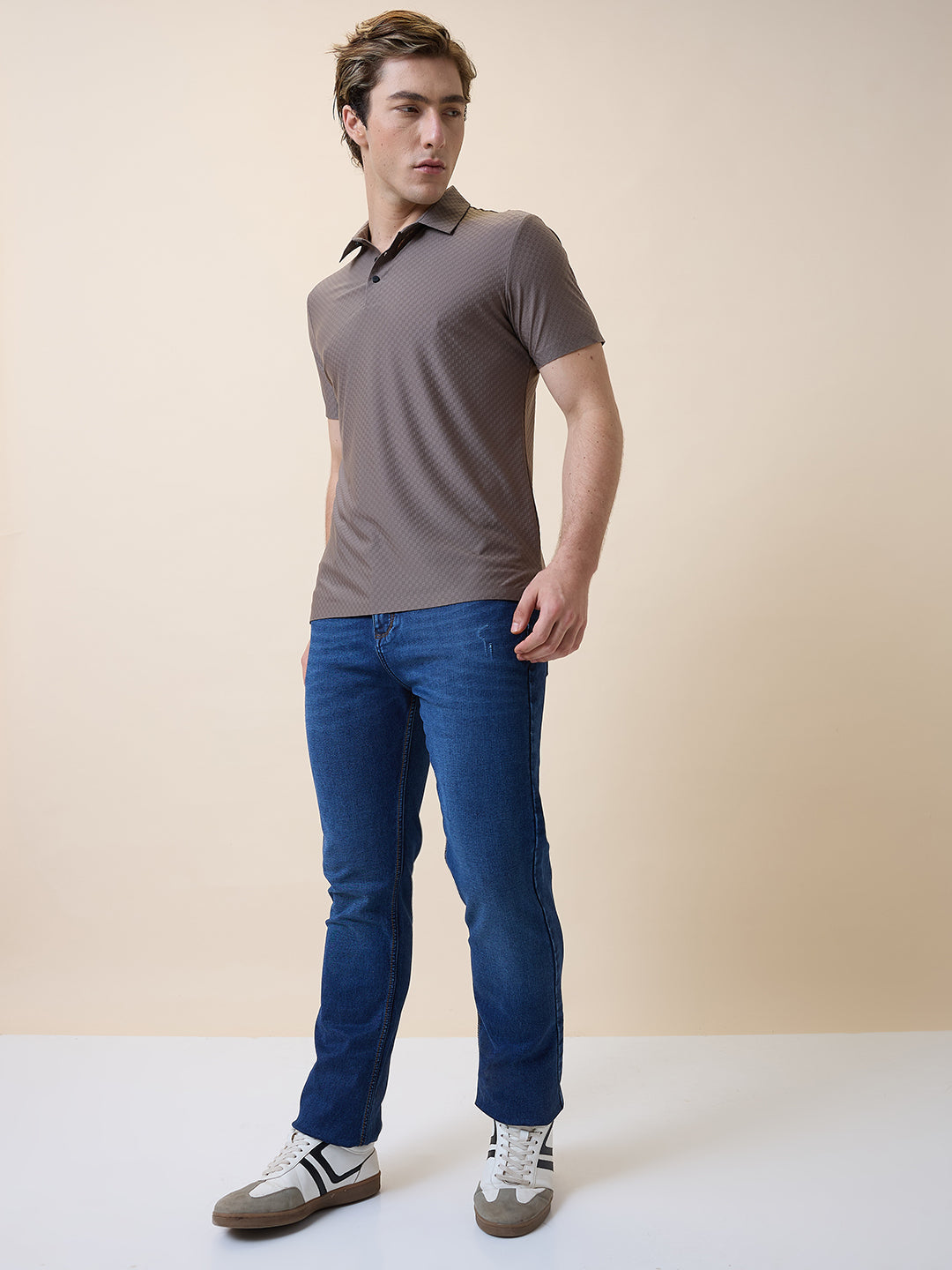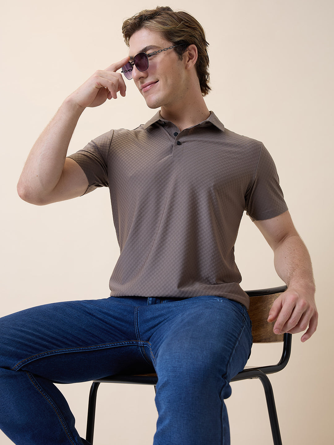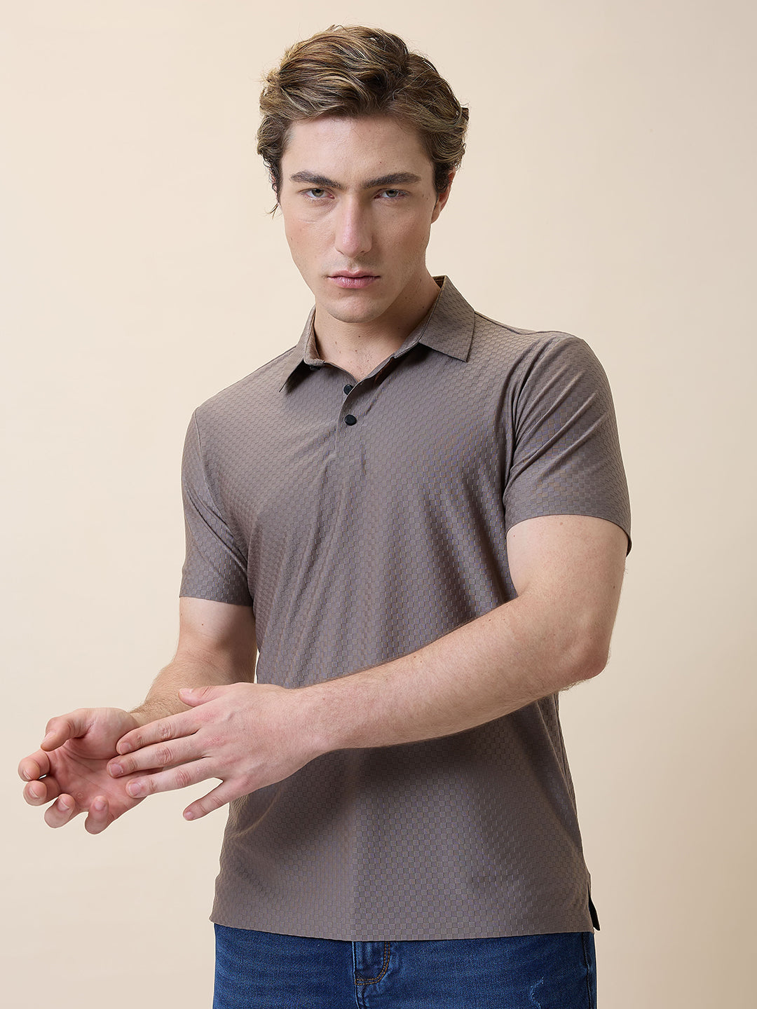 KHAKI Men's Premium Solid Polo Collar Half Sleeves Regular Fit T-shirt