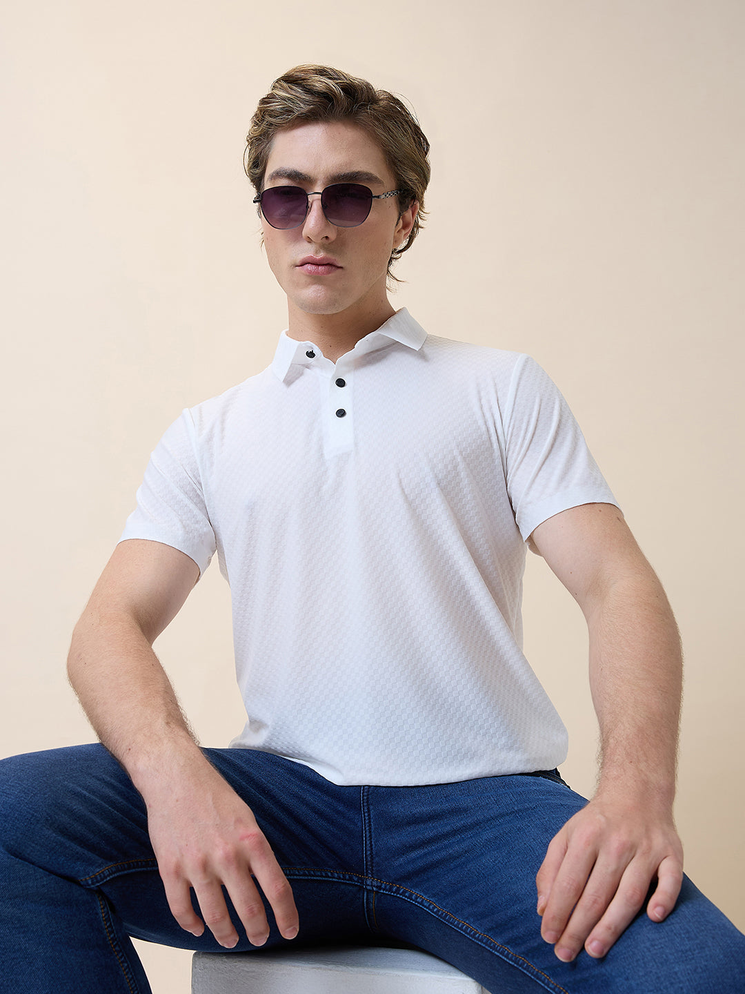 OFF WHITE Men's Premium Solid Polo Collar Half Sleeves Regular Fit T-shirt