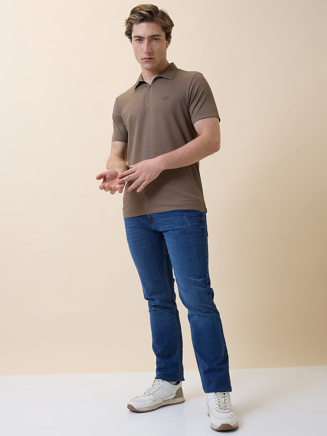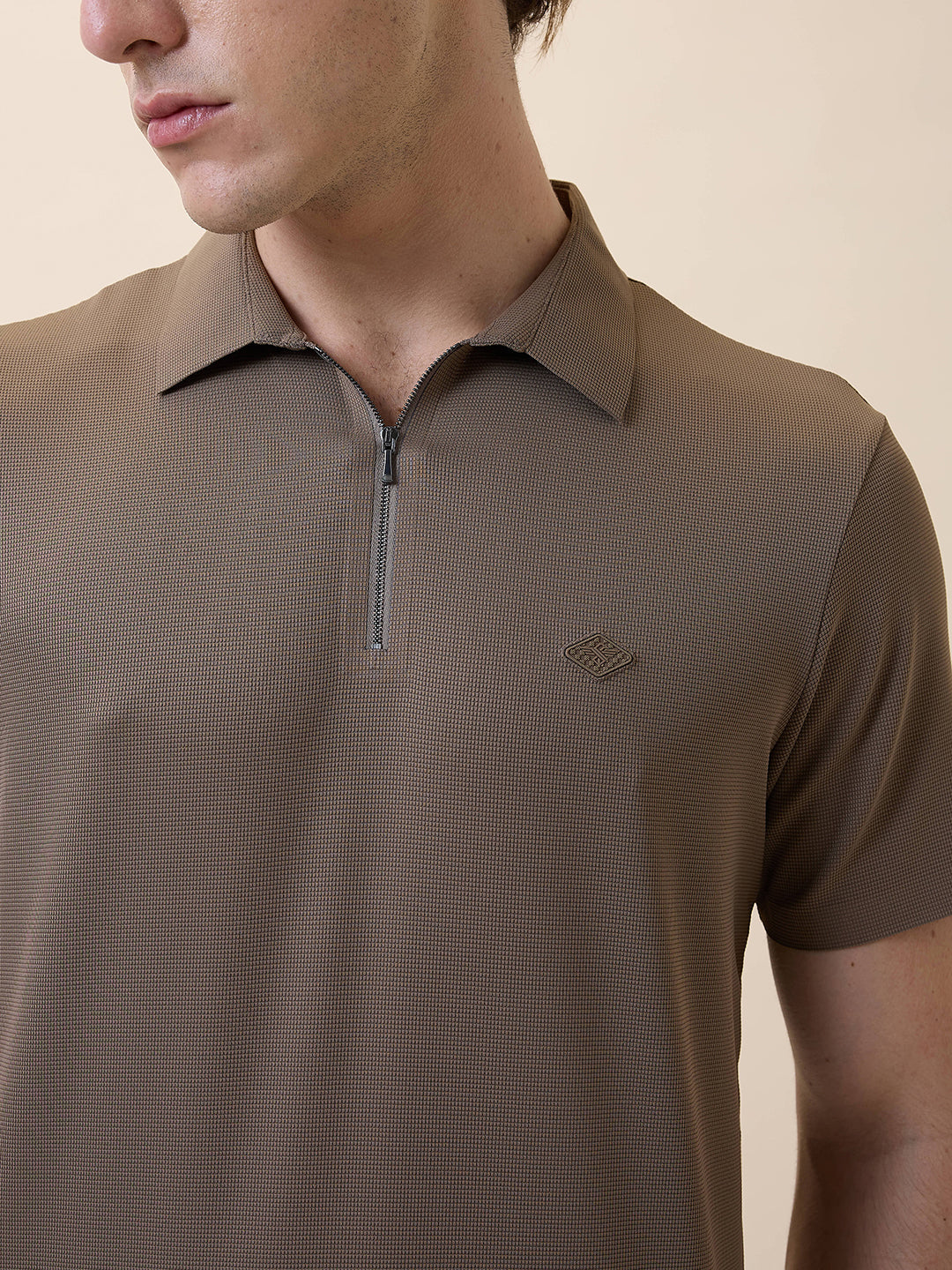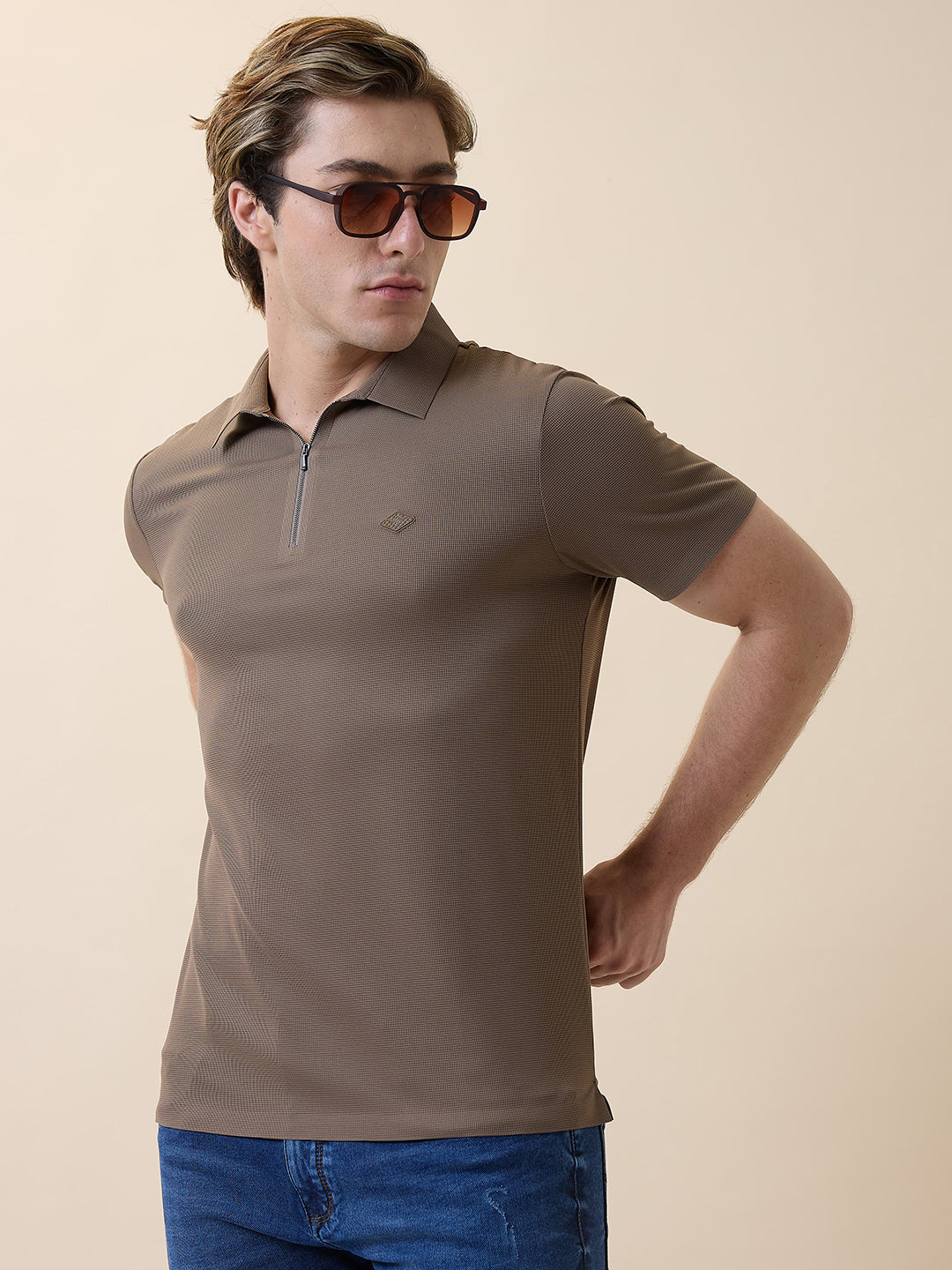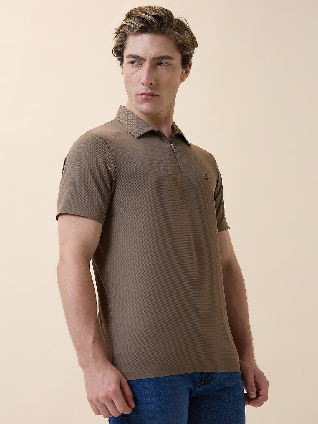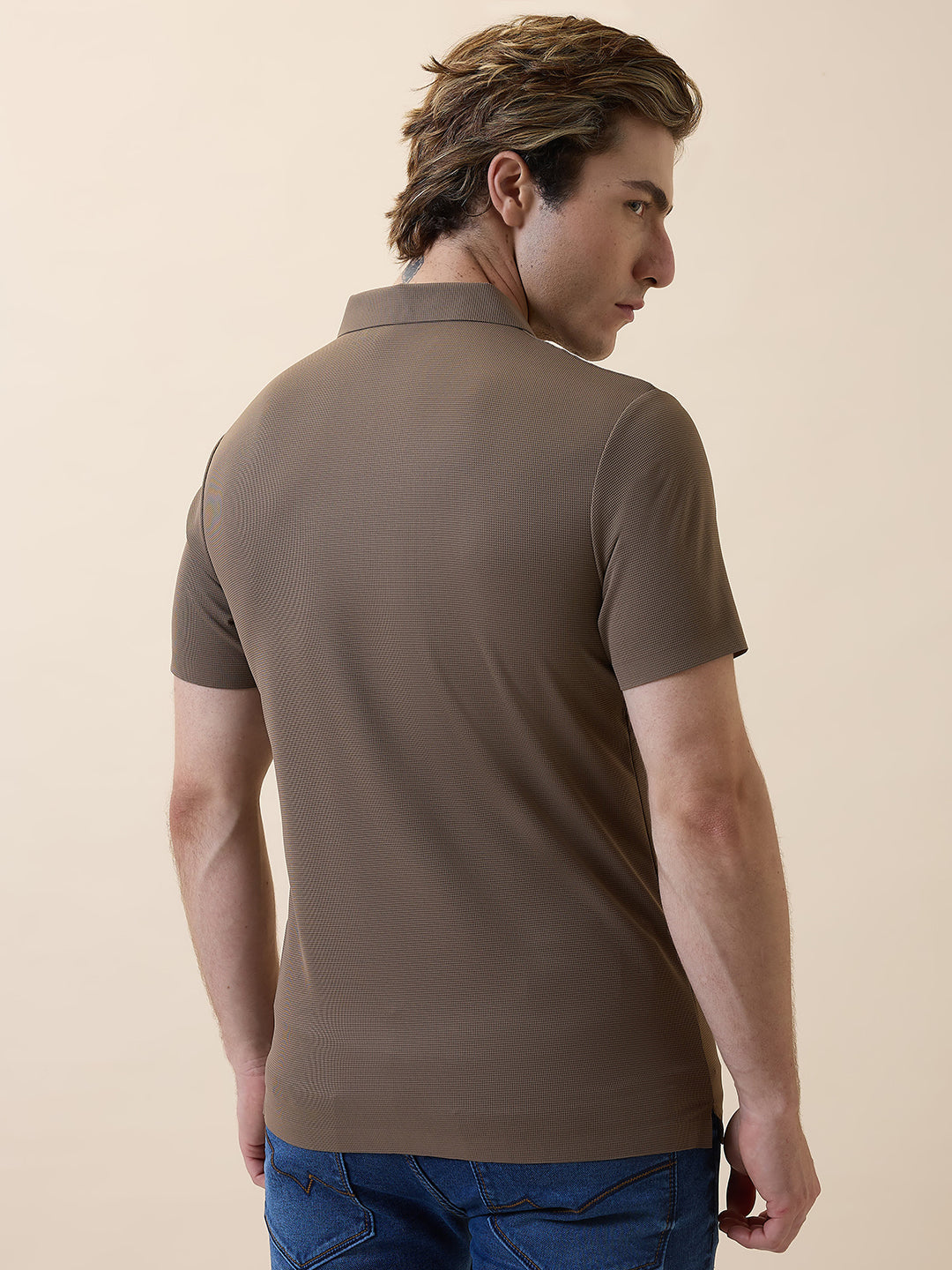 BROWN Men's Premium Solid Polo Collar Half Sleeves Regular Fit T-shirt