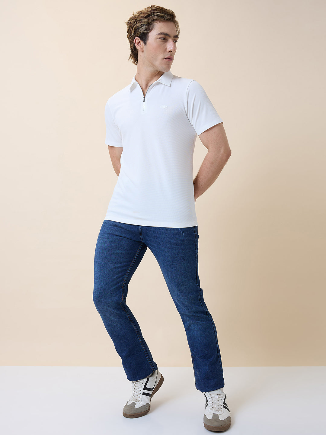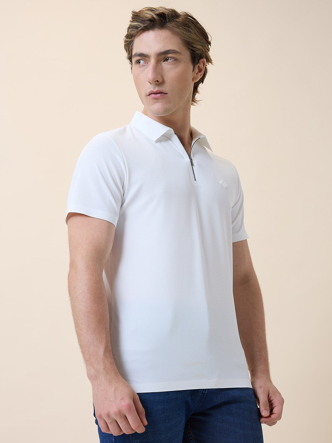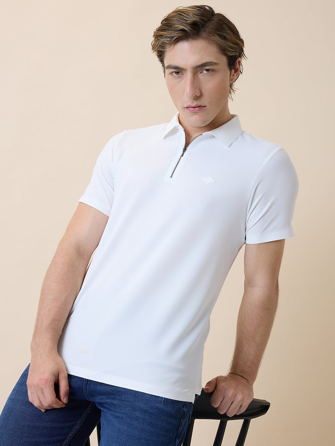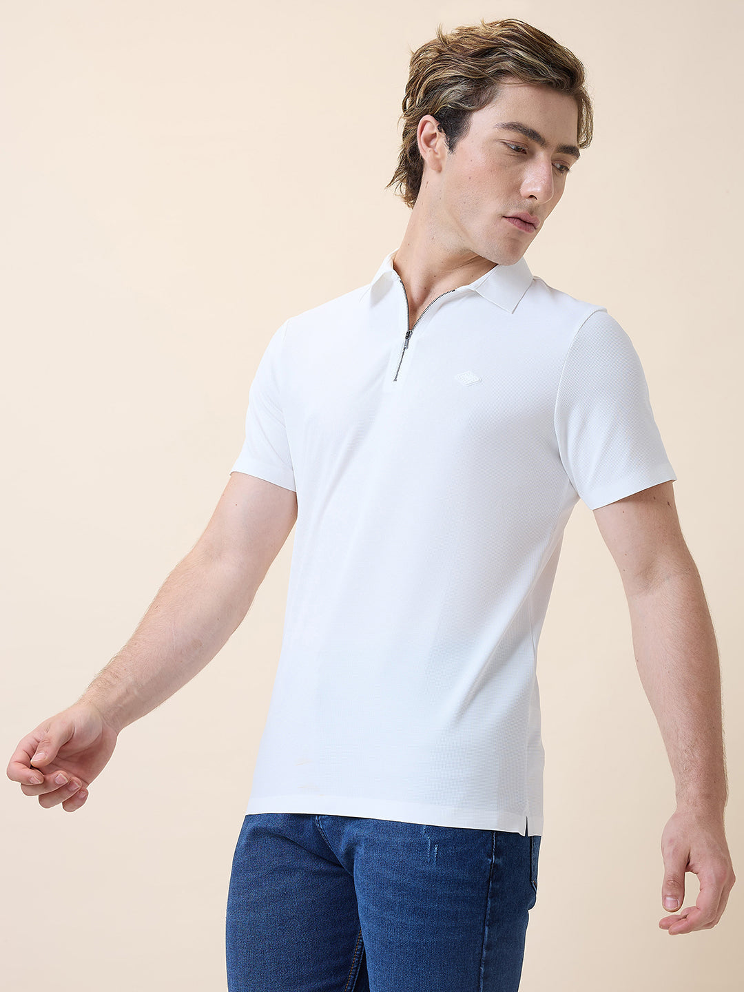 WHITE Men's Premium Solid Polo Collar Half Sleeves Regular Fit T-shirt