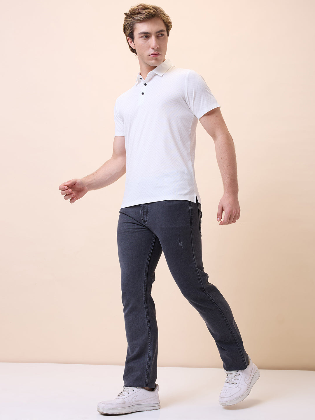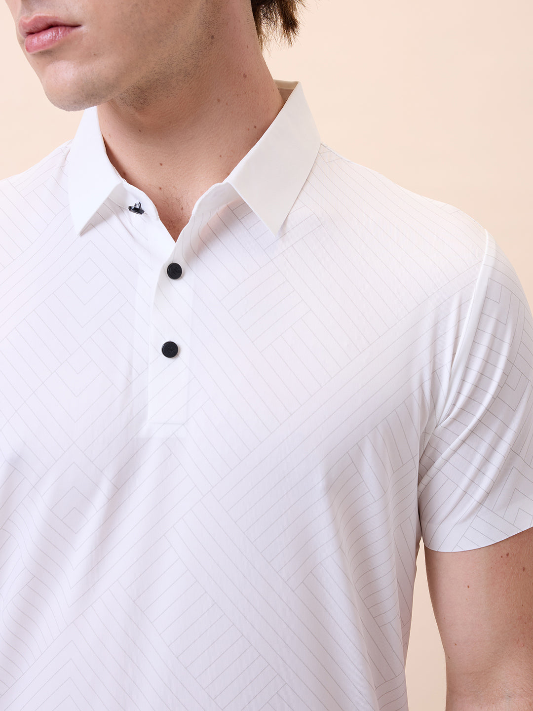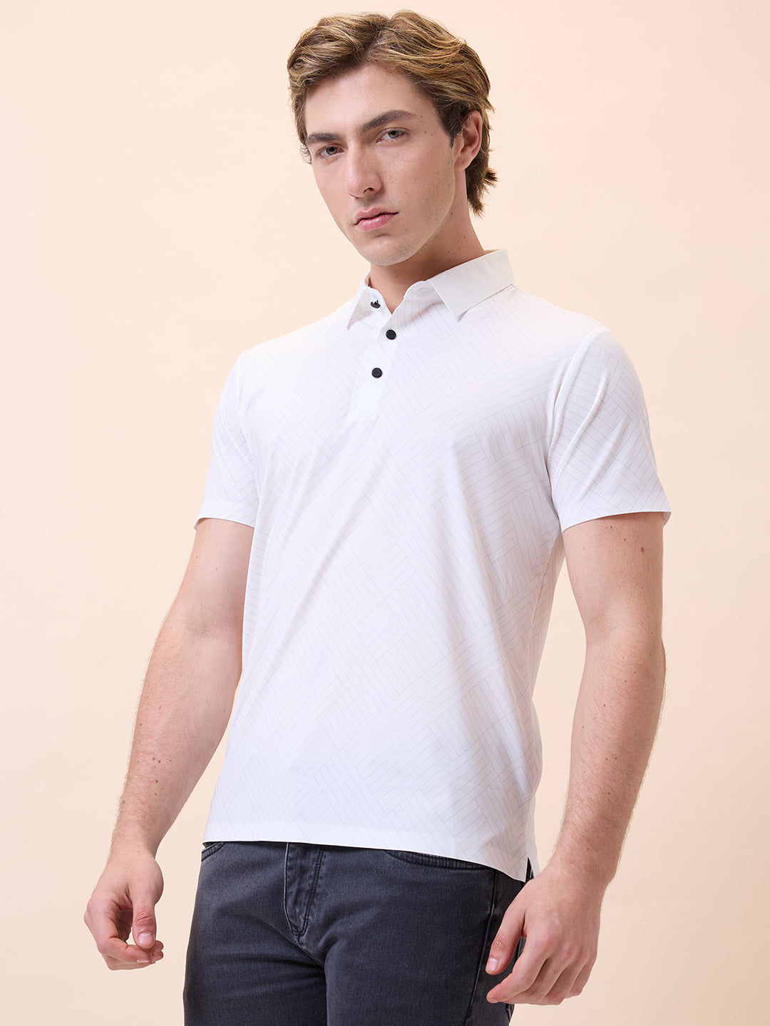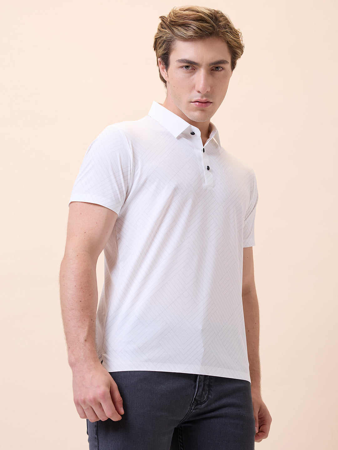 WHITE Men's Premium Printed Polo Collar Half Sleeves Regular Fit T-shirt