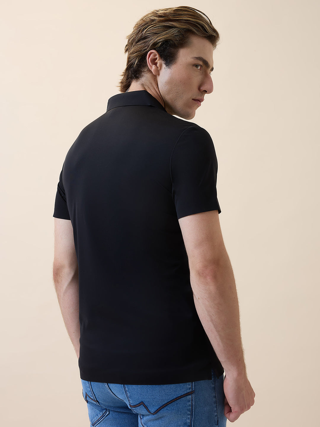 BLACK Men's Premium Printed Polo Collar Half Sleeves Regular Fit T-shirt