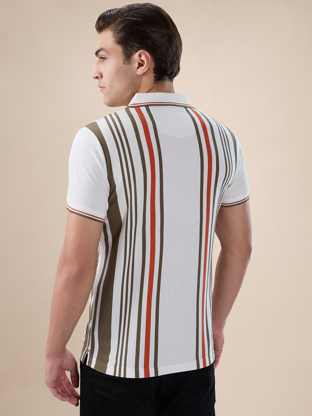 OFF WHITE Men's Striped Half Sleeve Regular Fit Polo T-shirt with Button Closure and Tipped Details