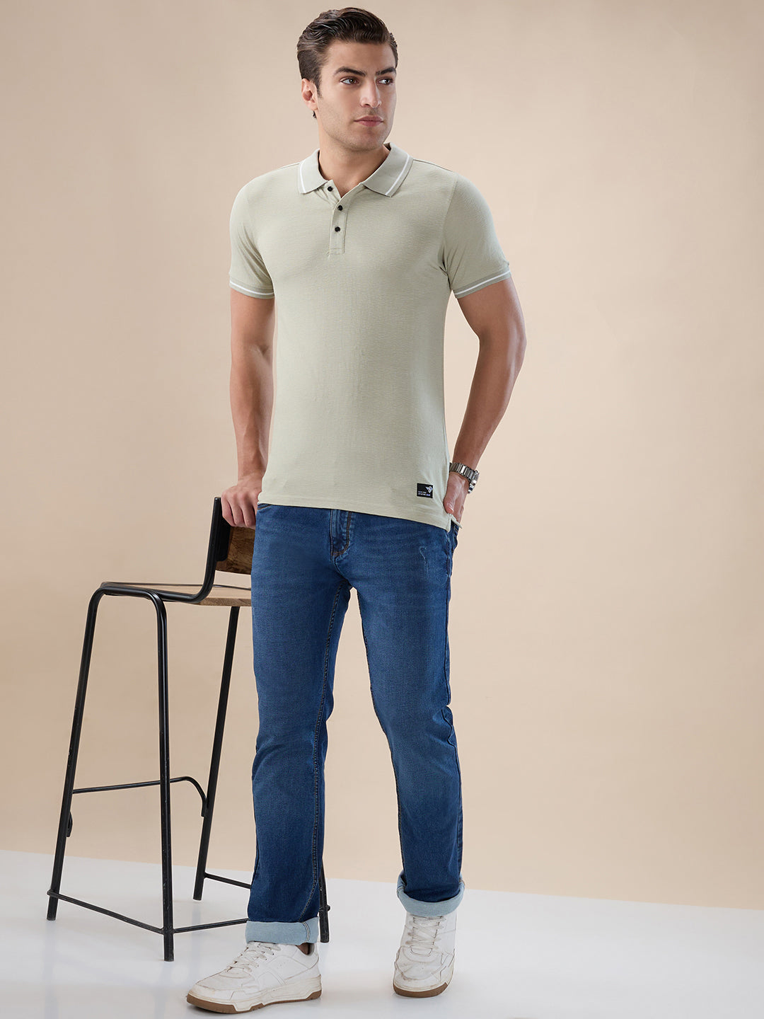 SAGE Men's Solid Textured Regular Fit Polo T-shirt with Button Closure and Tipped Details