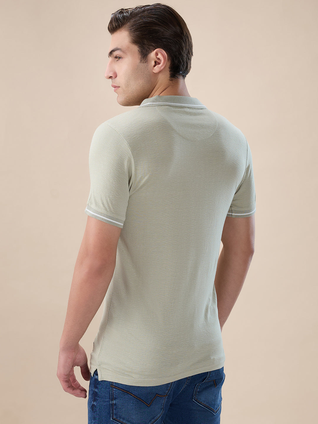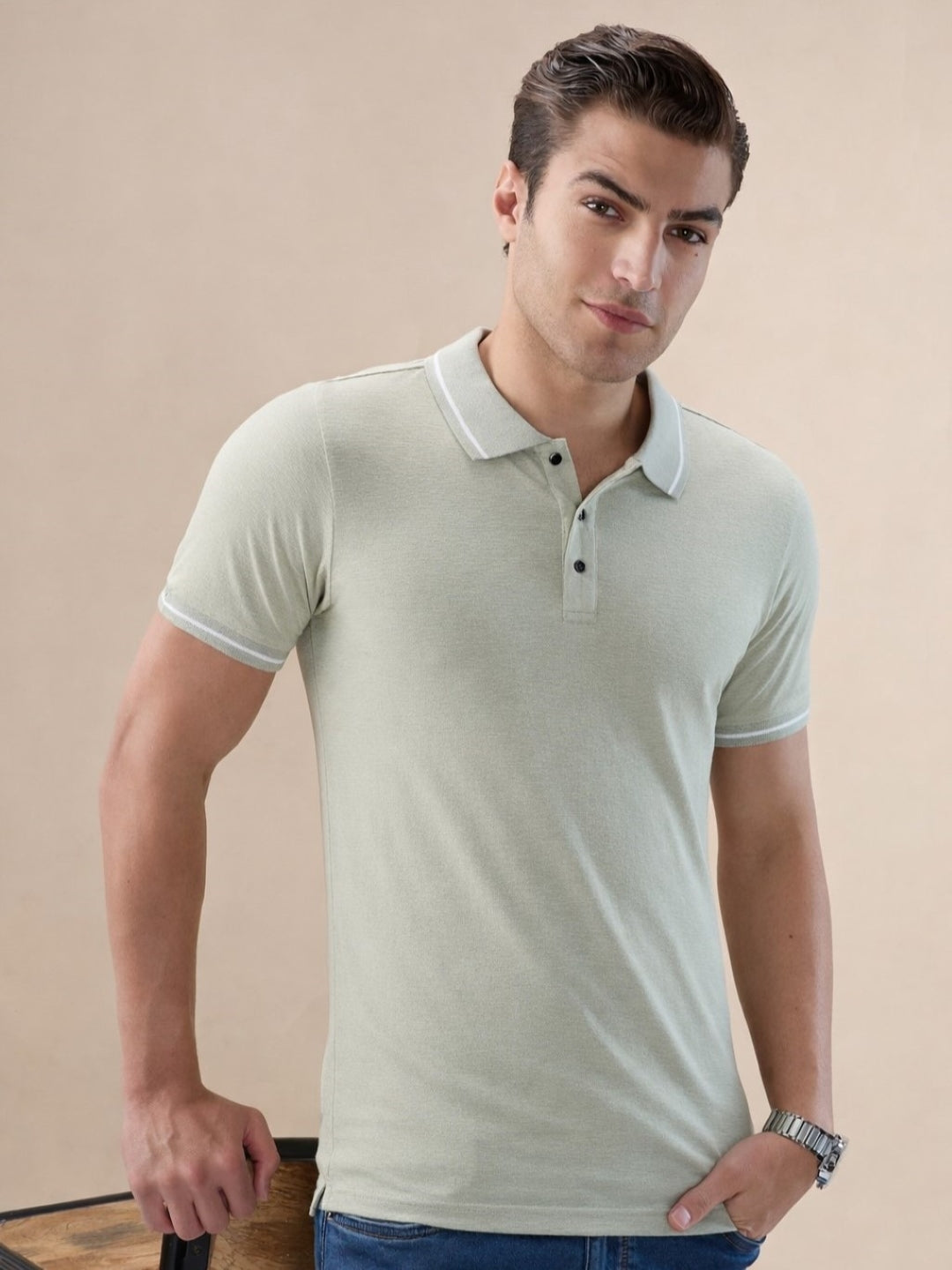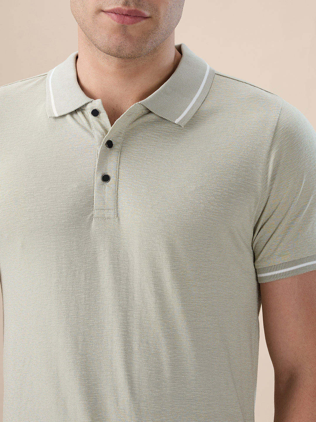 SAGE Men's Solid Textured Regular Fit Polo T-shirt with Button Closure and Tipped Details