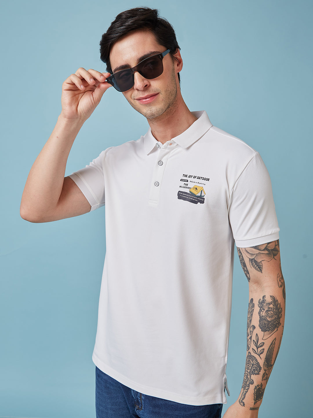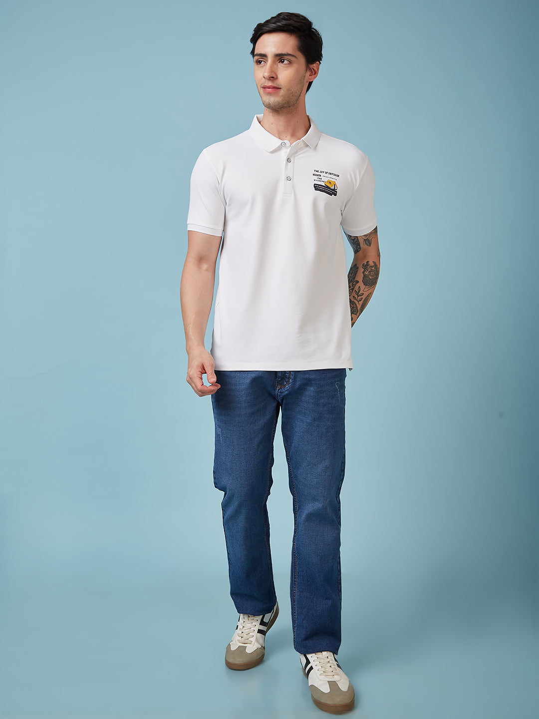WHITE Mens Printed Polo Neck Half Sleeves T-shirt