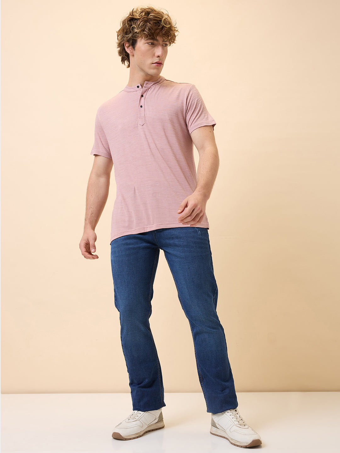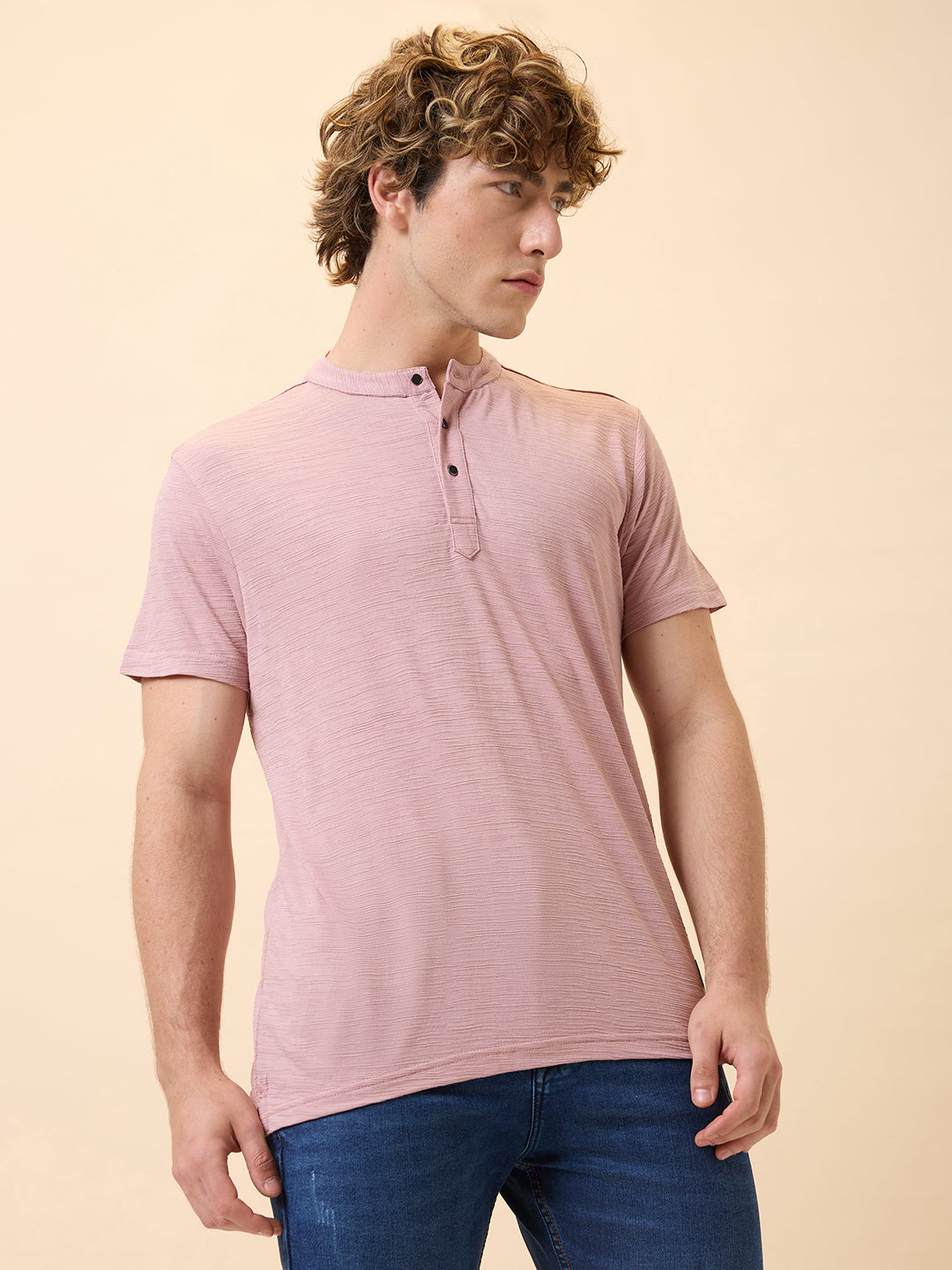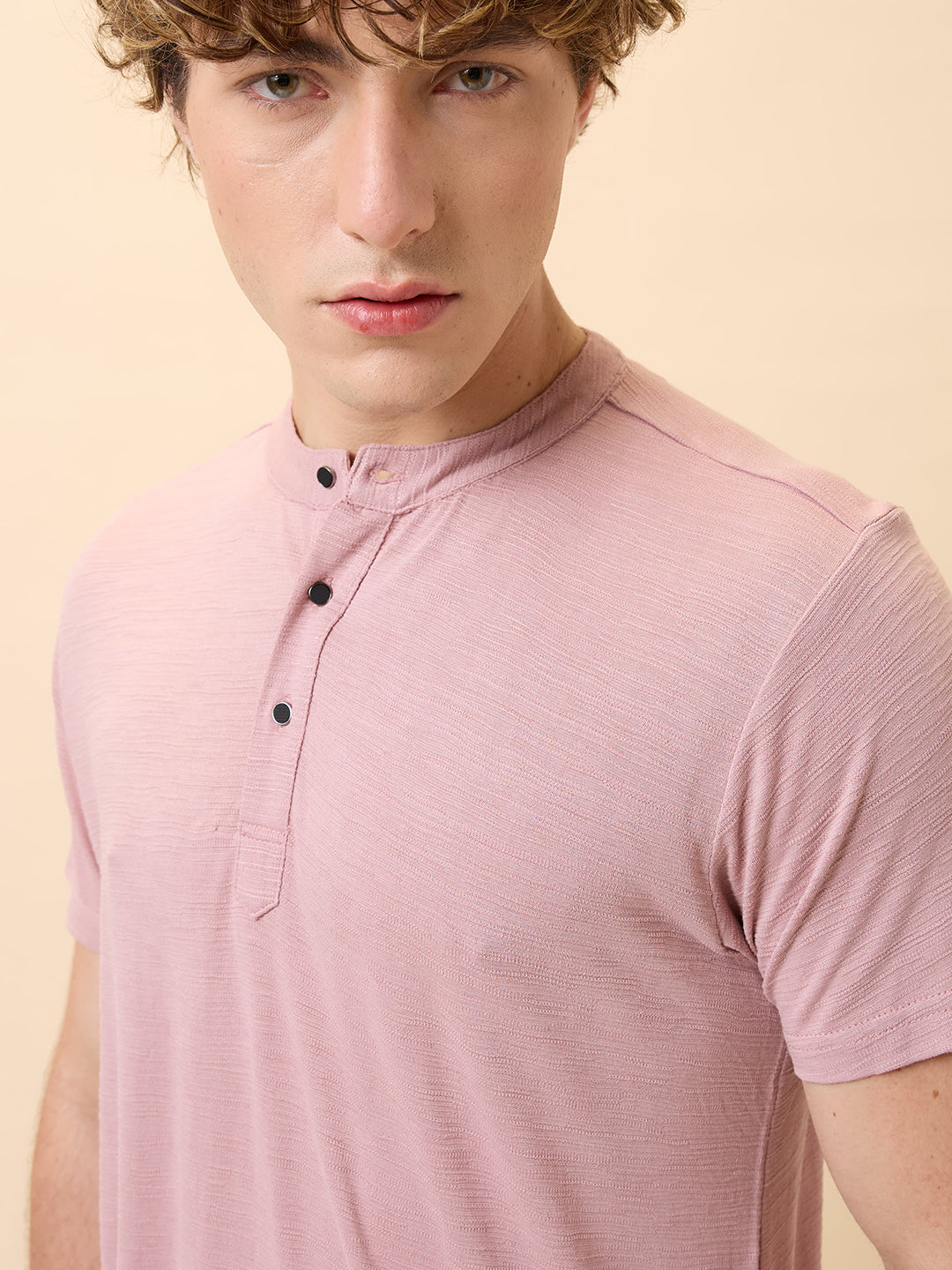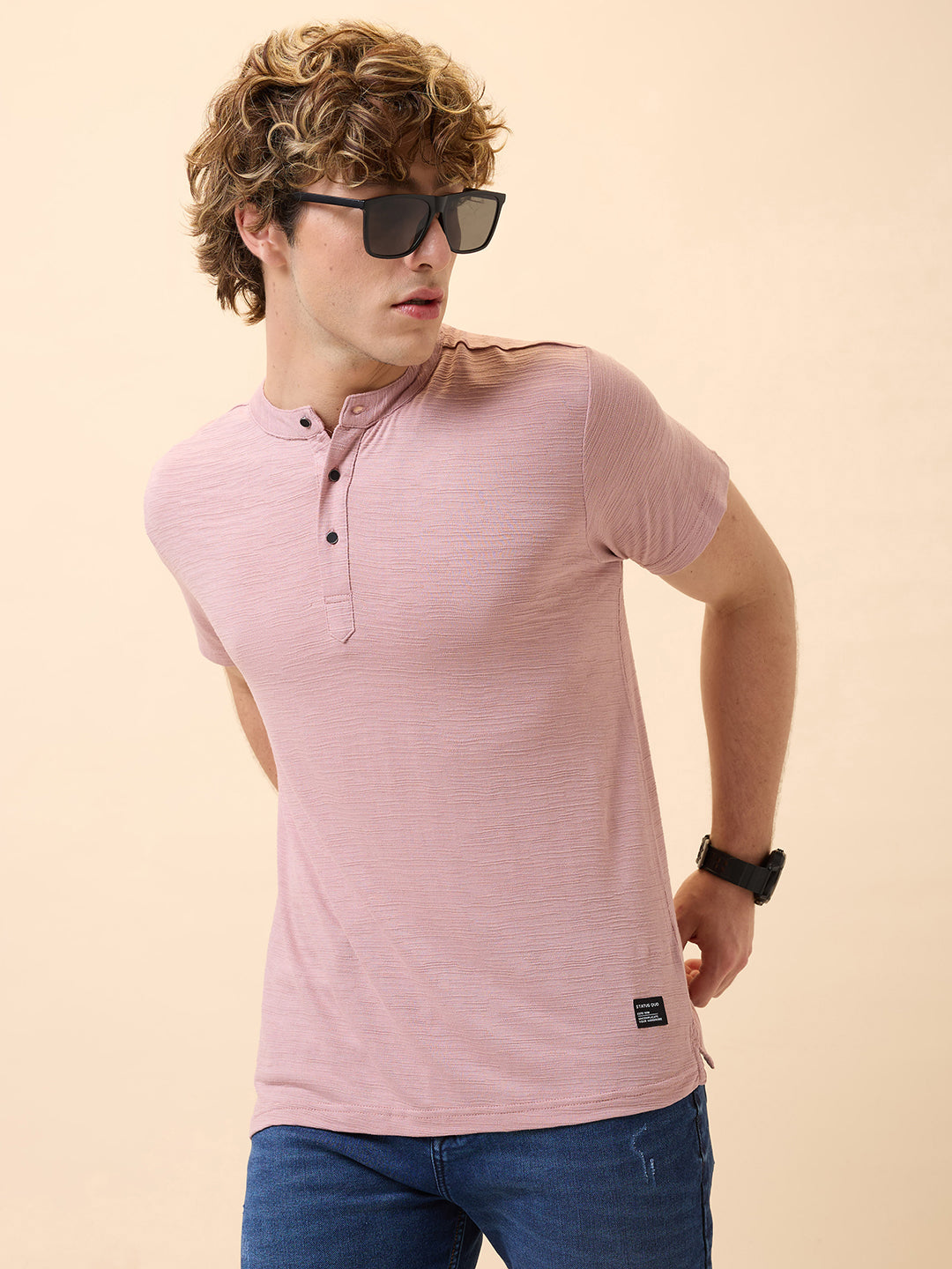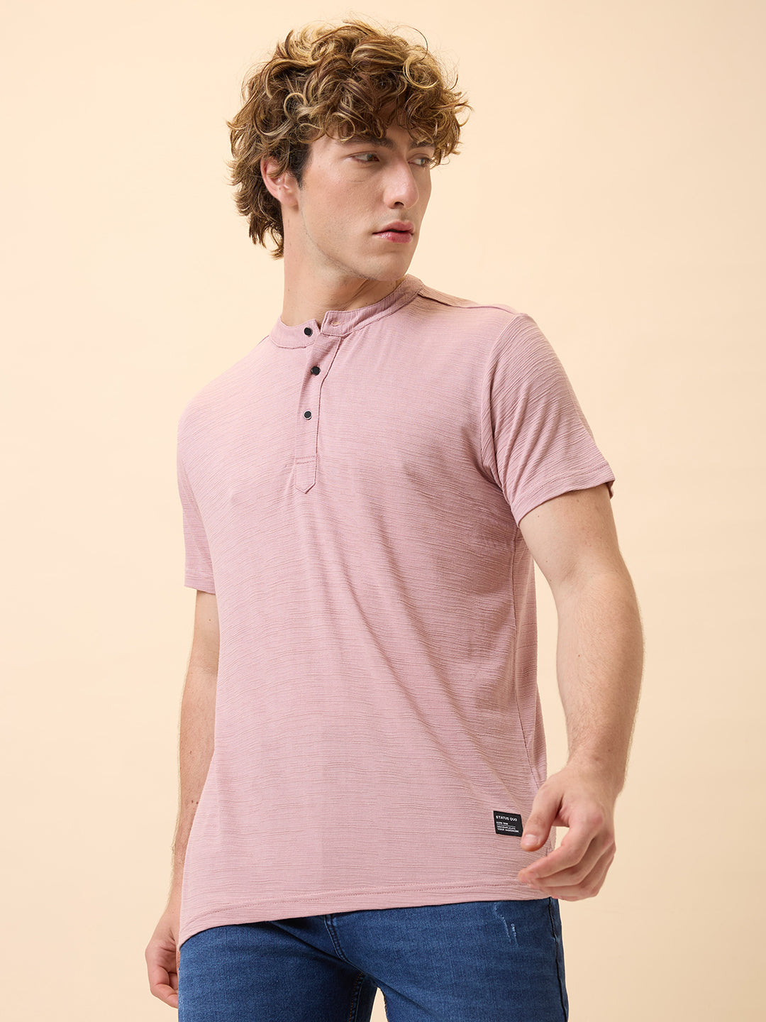 MISTY ROSE Status Quo Men's Solid Henley Neck Half Sleeves Regular Fit T-shirt