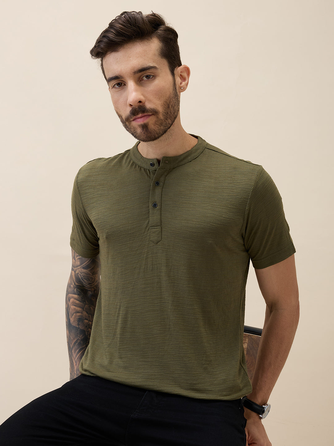 OLIVE Men's Solid Henley Neck Half Sleeves Regular Fit Tshirt